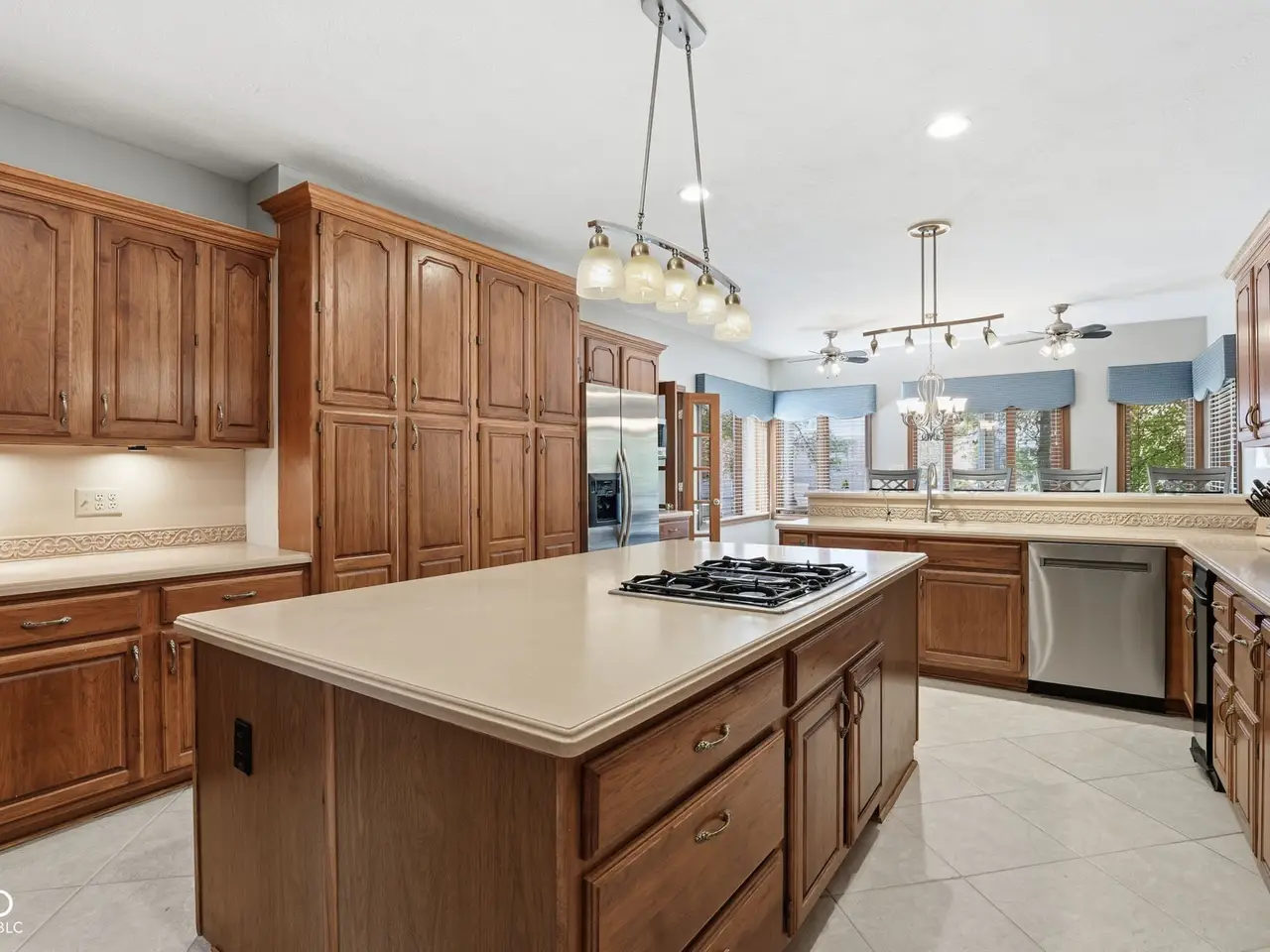 Welcome to this gracious and elegant retreat in one of Carmel's most desirable east-side neighborhoods. Perfectly positioned on a quiet cul-de-sac, this 5-bedroom, 5-full-bath residence offers refined living with exceptional functionality. Featuring a sophisticated living room, comfortable family room, and formal dining room, this home is ideal for anyone seeking generous space, comfort, and timeless style. Enjoy expansive main-level living with soaring ceilings and a chef's kitchen boasting abundant cabinetry, extensive counter space, and impressive storage throughout. Each room is thoughtfully designed to provide elegance, privacy, and ease of living, with brand new carpet throughout. Every bedroom is paired with its own full bath. The spacious finished lower level includes a second kitchenette, large living area, bedrooms, and full baths - an ideal setup for guests, extended family, or private workspace. This home is equipped with a geo-thermal heating and cooling system, offering exceptional energy efficiency, year-round comfort, and lower utility costs. Plus brand new high efficiency furnace backup. Located close to trails, parks, downtown Carmel, restaurants, and boutique shops, this property blends convenience with tranquility. With two complete levels of living, beautifully maintained and thoughtfully designed, it's truly two homes in one - offering flexibility, comfort, and enduring appeal.