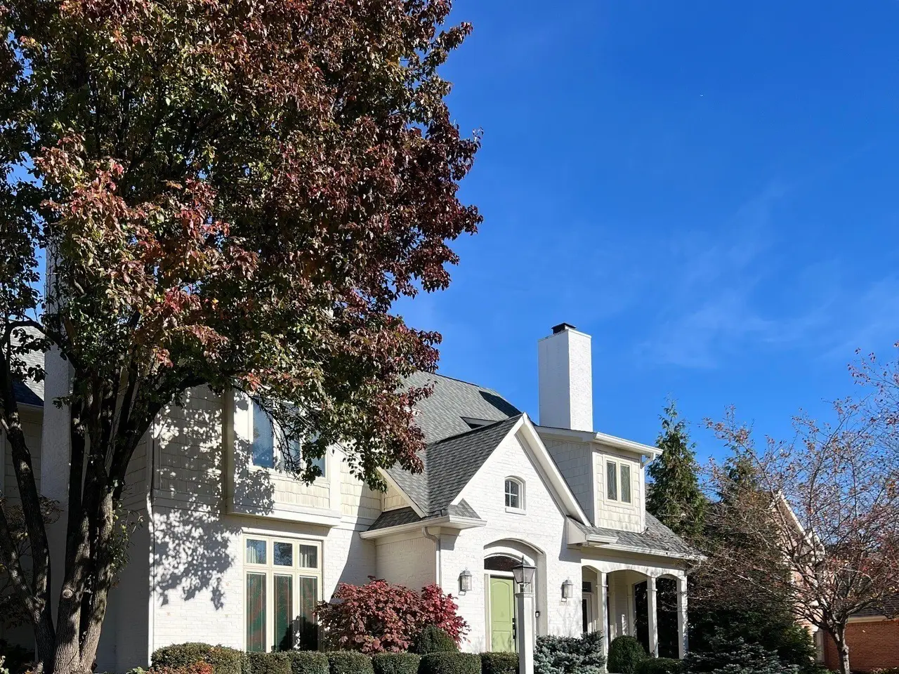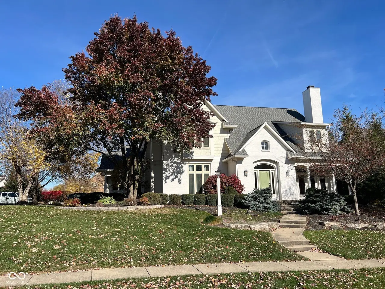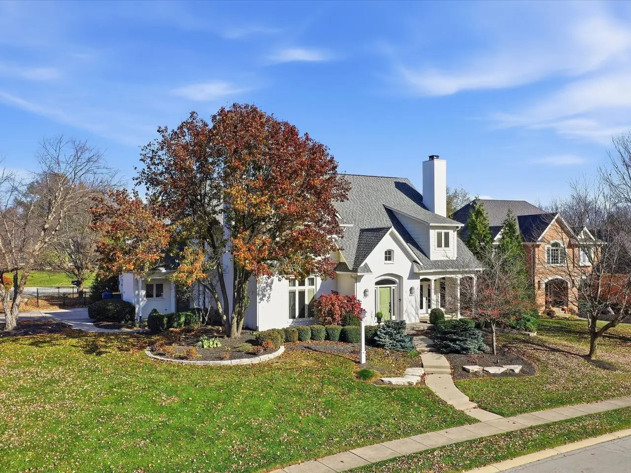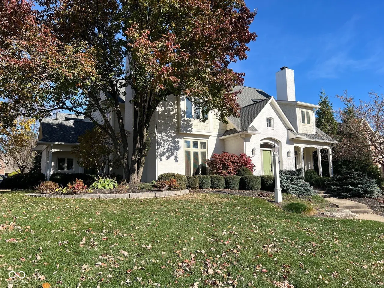 Highly sought after Luxury living in Carmel's Bayhill at Waterstone. Minutes to down town Carmel. This charming Tudor style exterior with front porch and dual entrances gives way to spacious rooms with Elegant and comfortable layout. Your new home is located on a corner with a cul-de-sac beside you. The home delights with two fire places and renovated kitchen with gorgeous Quartzite as well. Notice the new built in wall Wine rack... Hardwood floors add warmth to the main level, and new Pet Protect Carpet with a 25 year Warranty upstairs . Don't miss the formal dining area for entertaining leading out to the sun room. The primary suite awaits upstairs, complete with extra storage and luxury bath. Additional space unfolds in the finished basement. Plenty of storage throughout home. Outside, the fully fenced yard encompasses a screened porch and new Timber Tech decking (2024) paver patio with fire pit (2024), custom outdoor bar seating with luxurious Sueded stone counter. Peaceful private back yard. Fabulous recent updates include a new roof (2020), kitchen cabinets, quartzite, appliances and more (2025). Amazing maintenance free Turfed back yard, new irrigation and so much more. see full list attached .Finished Basement adds sophisticated whimsy. 5 beds, 3 full and 2 half baths, this home has charm, comfort and luxury, making it the perfect home. Neighborhood offers a community pool, club house, tennis courts, & trails. Minutes to shopping and entertainment. Carmel Schools. Immediate possession available! You can be "Home for the Holidays"