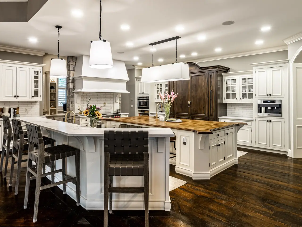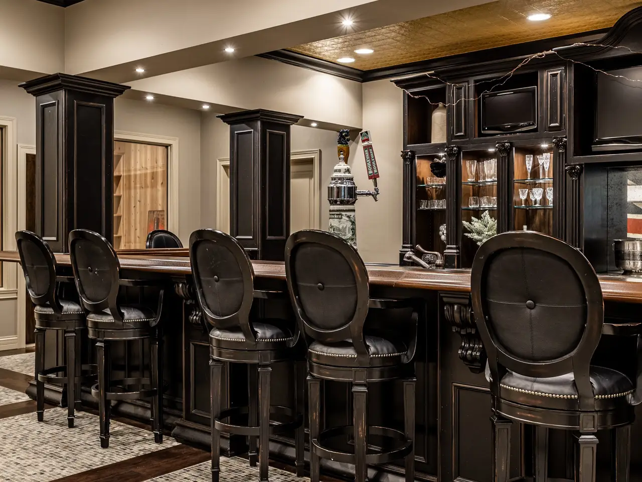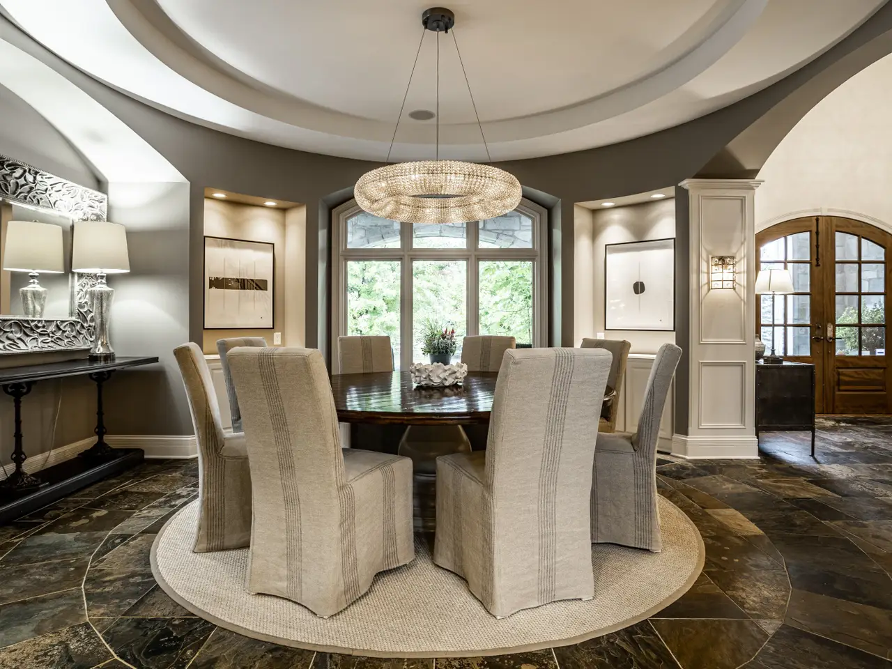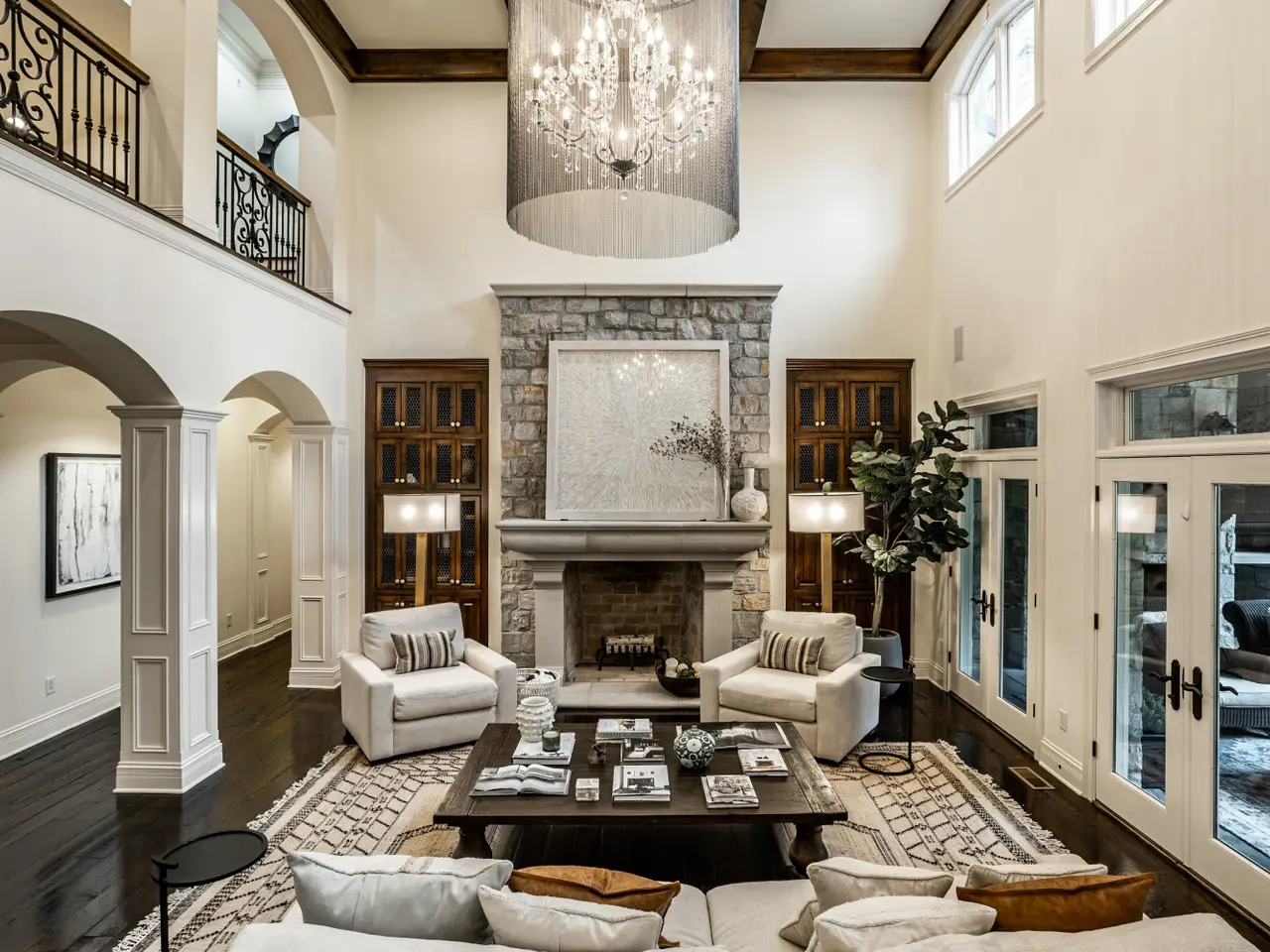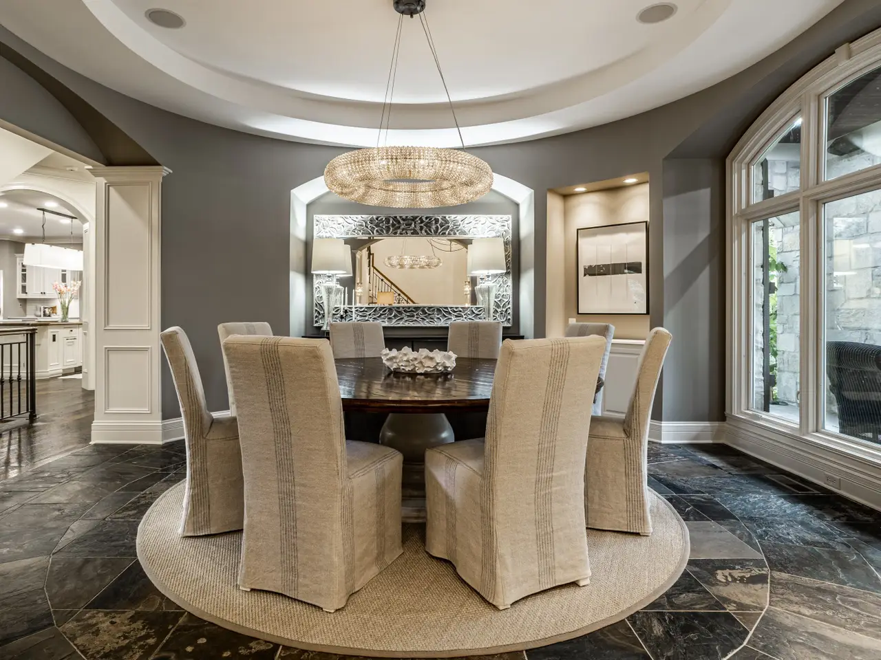 Beautifully situated on a private, lush, 2-acre fenced lot, this stunning estate offers an unparalleled lifestyle. Outdoor living is a true retreat with a 40x20 gunite pool, hot tub, and expansive veranda with fireplace and grilling center, perfect for entertaining or relaxing in privacy. Inside, guests are greeted by a soaring great room with 20-foot ceiling and a stone fireplace flanked by built-ins. The world-class chef's kitchen is a true centerpiece, featuring Wolf and Sub-Zero appliances, a pizza oven, a Miele coffee center, and an office nook conveniently tucked away behind the kitchen. The adjoining family room showcases an exposed truss ceiling and beautiful stone fireplace, as well as direct access to the outdoor living spaces. The main-floor primary suite is an elegant retreat with a spa-inspired bathroom and veranda access, creating a luxurious and serene sanctuary. Upstairs hosts five spacious bedrooms with four beautifully remodeled bathrooms. The walk-out lower level is an entertainer's paradise offering every amenity imaginable including a theatre area, 24x20 built-in bar with beverage cooler and beer tap, billiard area, wine cellar, double-sided fireplace, exercise room, and home office. Completing this impressive residence is a generous 4-car garage with raised ceiling for half-court basketball.