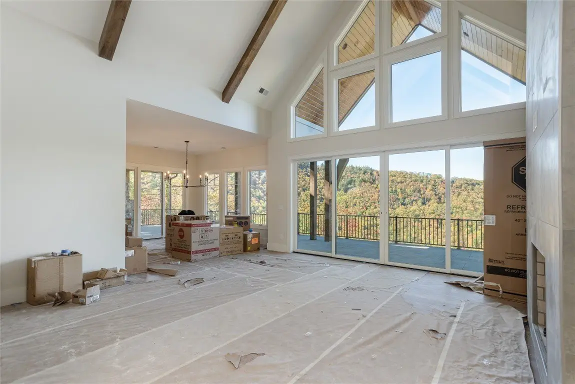 This newly constructed, custom designed residence is nearing completion in Cedar Hill, one of the Highlands Cashiers Plateau’s most desirable gated communities. Perfectly situated just minutes from both Cashiers and Sapphire, this thoughtfully crafted home offers a fresh architectural approach and a seamless floor plan designed for luxurious yet comfortable mountain living. As you arrive, curated landscaping, clean architectural lines, and a welcoming presence set the tone. Expansive windows and glass doors fill the interior with natural light and frame sweeping views across the valley, with Big Sheepcliff mountain rising as a dramatic backdrop. The main level features an open living area with soaring vaulted ceilings and a striking stone fireplace, seamlessly connected to the chef’s kitchen and adjacent gathering spaces—ideal for both entertaining and everyday living. Two distinct outdoor living areas extend the main level. A screened covered porch with a wood burning fireplace allows for year round enjoyment, while a separate covered veranda deck offers a serene space to relax and take in the cool mountain breeze. The primary suite on the main level is spacious and elegantly appointed, offering privacy, comfort, and convenience. On the lower level, a generous family room with a wet bar opens to two additional covered decks—one featuring another wood burning fireplace—creating the perfect setting for guests to gather and unwind. This level also includes three guest bedrooms and a dedicated bunk room, providing ample accommodations for extended family and friends. A two car garage adds architectural character and everyday functionality. For those seeking a brand new mountain retreat in a well established and private community, this home offers timeless design, panoramic views, and the best of life on the Highlands Cashiers Plateau.