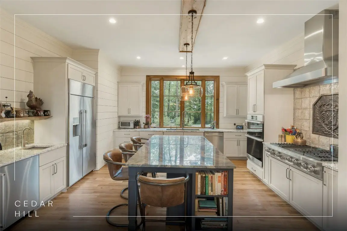This spacious, thoughtfully designed home in the desirable, gated Cedar Hill community offers plenty of room to roam. Built just four years ago by noted Cashiers architect Allen Brown as his personal residence, the property reflects attention to detail throughout. A bountiful gourmet kitchen with a large island and high-end Dacor appliances opens to the dining and living areas. The living room features a wood-burning masonry fireplace, while an inviting “pub room” off the kitchen evokes the charm of an English countryside inn, complete with its own wood-burning masonry fireplace. The spacious, main-level primary suite includes a spa-like bathroom with a gas fireplace and a large walk-in closet. Upstairs are two additional bedrooms and bathrooms, as well as two expansive bonus rooms that can serve as a playroom, office, or exercise space. A fourth bedroom and bathroom above the two-car garage provide a private retreat for visitors. The property’s large, flat circular driveway offers easy access to both the front door and garage, with plenty of room for guest parking. An expansive, flat fenced area between the garage and the house provides a secure space for children or pets. Outdoor living is equally well-appointed, with a partially covered back deck that wraps around to a side patio featuring another wood-burning masonry fireplace, perfect for cool evenings spent relaxing, roasting marshmallows, or enjoying a beverage after dinner. This private property has so many special touches, including a workshop, outdoor storage space, a central vacuum system, and an encapsulated basement, that it is truly a “must-see.” Cedar Hill’s ideal location offers privacy and convenience, just minutes from the center of Cashiers and close to Cedar Creek Club, Lonesome Valley, and the Country Club of Sapphire Valley.