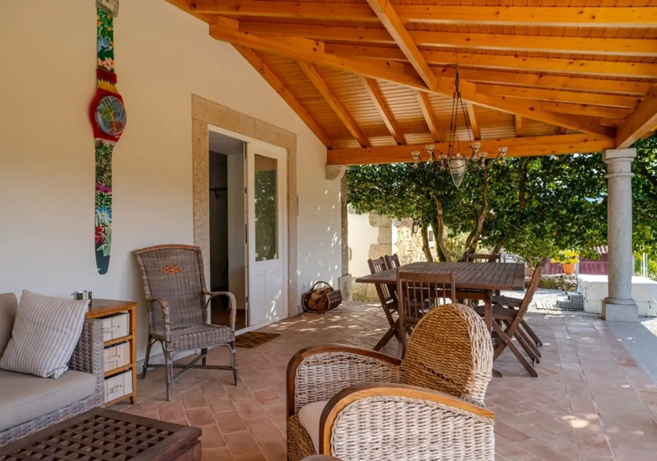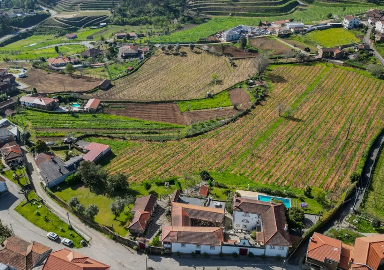 Beautifully renovated country house, part of a wine estate, for sale in Castelo de Paiva, in the Vinho Verde demarced region. A peaceful location in a 100% bucolic setting with panoramic views over 15,770m2 of vineyards and orchards. Rustic architecture typical of this area, very well suited to its surroundings and with all the modern comforts that privilege well-being. The materials used and the well-structured layout provide all the interior comfort for daily living. In addition to the main house with three bedrooms, there is also a studio, a one-bedroom house and a two-bedroom house that are independent and separate from each other, making a total of 7 bedrooms. It benefits from beautiful gardens and an outdoor swimming pool. The property is located 5 minutes from the center of Castelo de Paiva, 40 km from Porto and 50 km from Francisco Sá Carneiro airport. A great business opportunity for those looking for a peaceful environment or as an investment for tourism. CHARACTERISTICS: Plot Area: 17 041 m2 | 183 422 sq ft Building Area: 710 m2 | 7 642 sq ft Bedrooms: 7 Bathrooms: 6 Garage: 6 Energy efficiency: C