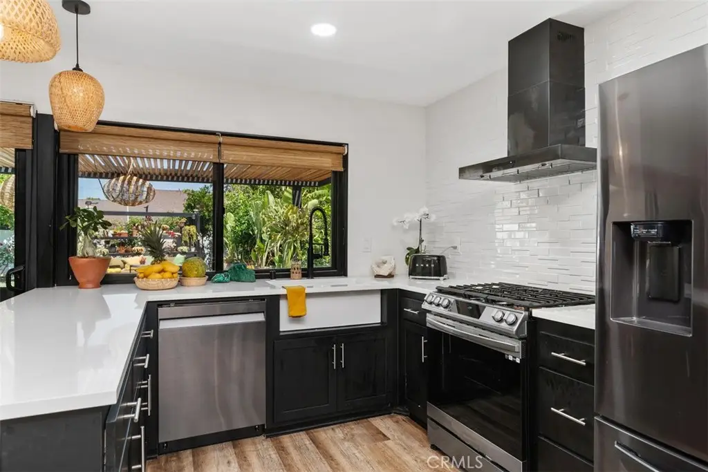 Welcome to 17630 Mapes Ave! This beautifully renovated single-story home with stunning curb appeal offers 3 bedrooms, 2 bathrooms, and 1,565 square feet of refined living space. Nestled in a quiet, well-maintained neighborhood, this turnkey property boasts a newer roof, an upgraded whole-house soft water system, a tankless water heater, and newer stainless steel appliances throughout the kitchen. The whole home is cooled with 5 split AC systems - one in each bedroom as well as the kitchen and living room. Inside, you will find an open floor plan with modern finishes throughout. Each bathroom has recess lighting; the primary bathroom has a ceiling mount shower head while the shared bathroom contains a modern tub shower. In one of the secondary bedrooms, you will have a door granting you access to the garden as well as a walk in closet. A brilliant skylight in the kitchen area allows natural light to fill the room. The home also has new plumbing, replaced the copper pipes with PEX. The backyard is a peaceful retreat featuring a lush garden, including a garden light, with mature fruit trees and a spacious grass area perfect for entertaining as well as lounging. Located in the heart of Cerritos, you are close to the Cerritos mall, a community park, Cerritos library, the City Plaza and so much more. Don't forget, you'll have quick and easy access to the 605, 91, and 405 freeways. You won't want to miss out on this opportunity!