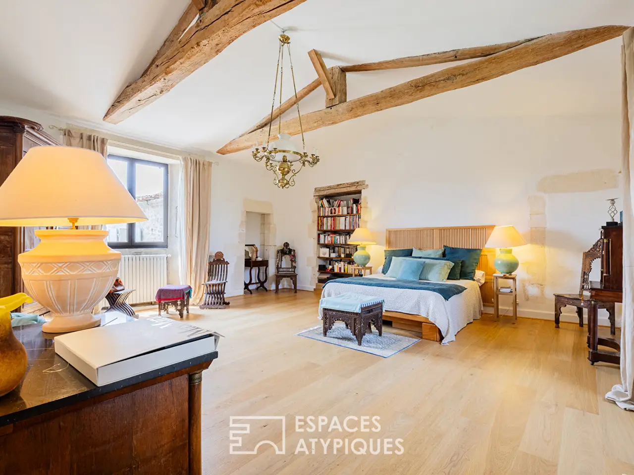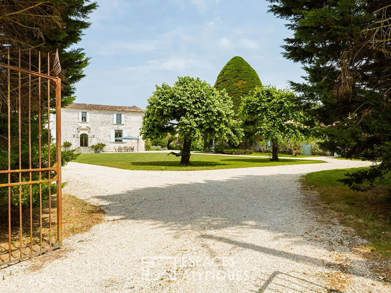 Just ten minutes from the beaches and twenty minutes from Royan, nestled between Chaillevette and La Tremblade, this 14th-century residence is nestled in a preserved natural environment, surrounded by peaceful, verdant countryside.Built around an elegant main courtyard, this historic estate flourishes amidst a vast landscaped park, featuring a fruit orchard, private terraces, a semi-covered swimming pool, a spa, a sauna, and numerous carefully designed outbuildings.This exceptional property, rare for sale, offers great potential for a gite business or a charming residence.Inside, the historic soul of the property is revealed through remarkable architectural features: a stone staircase, exposed beams, generous volumes, and a unique mural illustrating the myth of Pyramus and Thisbe.The main house, bathed in light, offers spacious and refined living spaces.Upon entering, the eye is drawn to the vast living room adorned with an imposing fireplace, the warm heart of the home. Adjacent to it, the authentic kitchen and the dining/living room create a warm and welcoming space, ideal for entertaining.Upstairs, two generously sized bedrooms, a dressing room, a living room, an elegant bathroom, and a shower/linen room complete the amenities of this unique living space.The right wing houses three independent apartments with private terraces and gardens, perfect for hosting family and friends, or developing a tourist accommodation business.The left wing is dedicated to well-being and relaxation, with a semi-covered swimming pool under a Mediterranean-style canopy, a spa/sauna area, a games room, a garage, and a sublime artist's studio bathed in light.The meticulously landscaped garden envelops the home in a peaceful and intimate atmosphere, ideal for enjoying nature. The orchard completes this property's bucolic charm, just minutes from shops, schools, and the renowned La Tremblade market.This unique residence with its timeless charm seduces with the authenticity of its architecture, the generosity of its volumes and the unique atmosphere that emanates from it, as if suspended outside of time.ENERGY CLASS: E / CLIMATE CLASS: C. Estimated average annual energy expenditure for standard use, based on energy prices for 2021, 2022, and 2023: between €13,390 and €18,200.REF. EALR2061Additional information* 32 rooms* 9 bedrooms* 5 shower rooms* Outdoor space : 36830 SQM* Property tax : 3 305 €Energy Performance CertificatePrimary energy consumptione : 274 kWh/m2.yearHigh performance housing*A*B*C*D*274kWh/m2.year23*kg CO2/m2.yearE*F*GExtremely poor housing performance* Of which greenhouse gas emissionsc : 23 kg CO2/m2.yearLow CO2 emissions*A*B*23kg CO2/m2.yearC*D*E*F*GVery high CO2 emissionsEstimated average annual energy costs for standard use, indexed to specific years 2021, 2022, 2023 : between 13390 € and 18200 € Subscription IncludedAgency feesThe fees include VAT and are payable by the vendorMediatorMediation Franchise-Consommateurswww.mediation-franchise.com29 Boulevard de Courcelles 75008 ParisInformation on the risks to which this property is exposed is available on the Geohazards website : www.georisques.gouv.fr