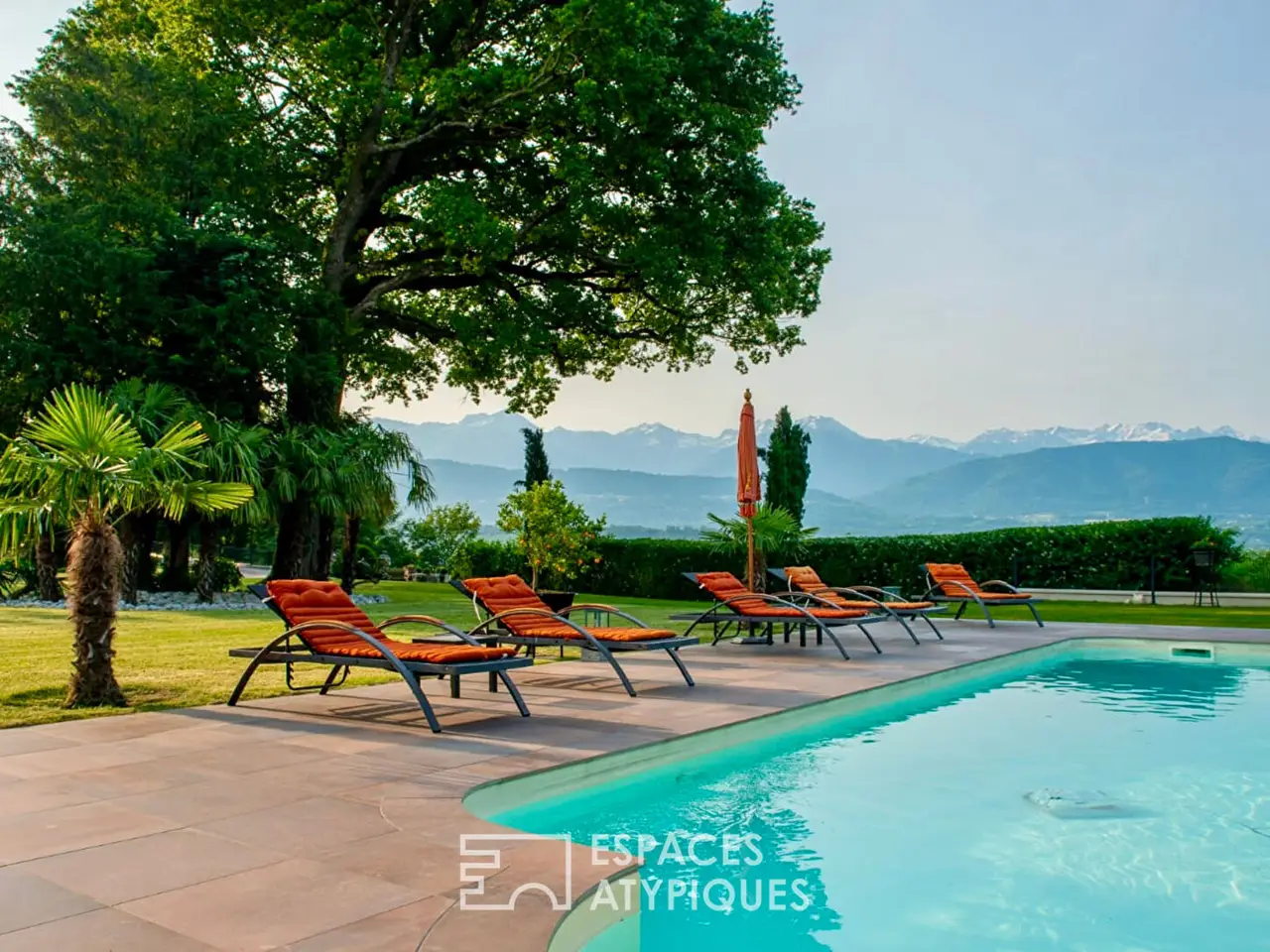 This exceptional property, nestled in the commune of Francin at the gates of Chambery, is a rare and secretly preserved gem. A mansion combining old-world charm with contemporary refinement on 687sqm of usable space, in a sublime green cocoon of 6045sqm. Designed to offer comfort, conviviality, and the art of living, it seduces with its generous volumes, its high-end services, and the rare beauty of its environment.The ground floor reveals magnificent reception areas. Cut around a vast entrance hall: a bright living room with harmonious proportions, an elegant dining room, a warm, fully equipped family kitchen, a comfortable office, and a laundry room.The majestic stone staircase provides access to the different levels with the elegance of a private mansion.The first floor leads first to a large, cozy and enveloping living room, currently designed as a games room and featuring a balcony overlooking the park.This level continues in the master suite of approximately 50sqm, offering a dressing room, a bathroom with bathtub and a bedroom.Opposite, a second bedroom with living room, shower room and laundry room.The second floor, recently renovated, consists of five suites with private shower rooms. These have been skillfully designed to offer neat and luxurious comfort. Meticulously decorated with taste, each is dressed in high-end materials and offers a singular identity.The vaulted basement, accessible from the outside or by elevator, houses a bar, a tasting room, a wine cellar and an indoor swimming pool.Outside, the landscaped park invites relaxation and contemplation facing the mountains. Here again, the services are up to the mark: outdoor swimming pool with sunbathing area, summer kitchen, small golf green, theatrical walkway, carport and parking courtyard.Located a few minutes from the center of Chambery and only one hour from Geneva International Airport, in a sought-after residential area, the property benefits from quick access to amenities, the TGV station, and motorways.Ideal for a private mansion, a guest house, or a family home.ENERGY CLASS: C / CLIMATE CLASS: CEstimated average annual energy expenditure for standard use, based on average energy prices indexed for the years 2021, 2022, 2023: between 5,650 Euros and 7,730 Euros.Information on the risks to which this property is exposed is available on the Georisques website: www.georisques.gouv.fr.REF. 2054EAAdditional information* 13 rooms* 7 bedrooms* 1 bathroom* 6 shower rooms* 3 floors in the building* Outdoor space : 6045 SQM* Parking : 10 parking spaces* Property tax : 3 518 €Energy Performance CertificatePrimary energy consumptionc : 140 kWh/m2.yearHigh performance housing*A*B*140kWh/m2.year17*kg CO2/m2.yearC*D*E*F*GExtremely poor housing performance* Of which greenhouse gas emissionsc : 17 kg CO2/m2.yearLow CO2 emissions*A*B*17kg CO2/m2.yearC*D*E*F*GVery high CO2 emissionsEstimated average annual energy costs for standard use, indexed to specific years 2021, 2022, 2023 : between 5650 € and 7730 € Subscription IncludedAgency feesThe fees include VAT and are payable by the vendorMediatorMediation Franchise-Consommateurswww.mediation-franchise.com29 Boulevard de Courcelles 75008 ParisInformation on the risks to which this property is exposed is available on the Geohazards website : www.georisques.gouv.fr