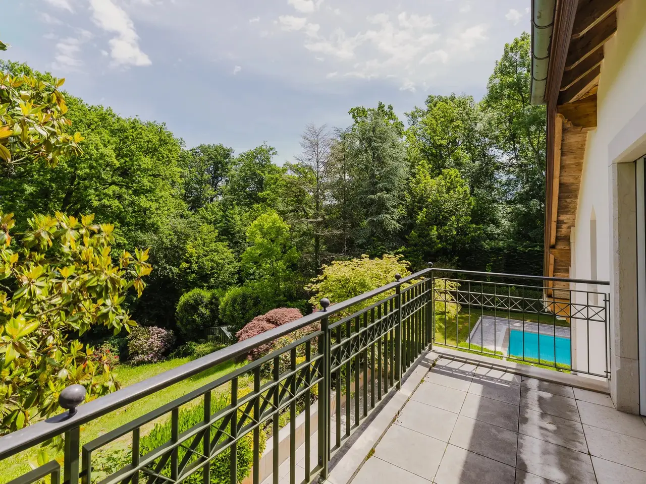 Situated in an unspoilt environment, just a few minutes from the center of Geneva, this remarkable property boasts almost 900 sqm of living space, set in approx. 4,500 sqm of wooded grounds. From the moment you enter, the generous volumes and flowing layout of the reception rooms create a welcoming atmosphere. Several living rooms with fireplaces offer different living spaces, bathed in natural light and opening onto the garden and swimming pool. Upstairs, the sleeping quarters comprise five large suites, some with fireplaces or balconies, offering each guest a comfortable and refined private space. The lower level, also on the garden level, is dedicated to well-being and relaxation. Here you'll find a spa area, gym, massage room, wine cellar and a large garage for several vehicles. Outside, the swimming pool blends harmoniously with the terrace, which can also be accessed from an oriental-style lounge designed to prolong moments of calm and conviviality. Discreet, rare and elegant, this property offers incomparable quality of life in one of Geneva's most sought-after areas on the right bank.