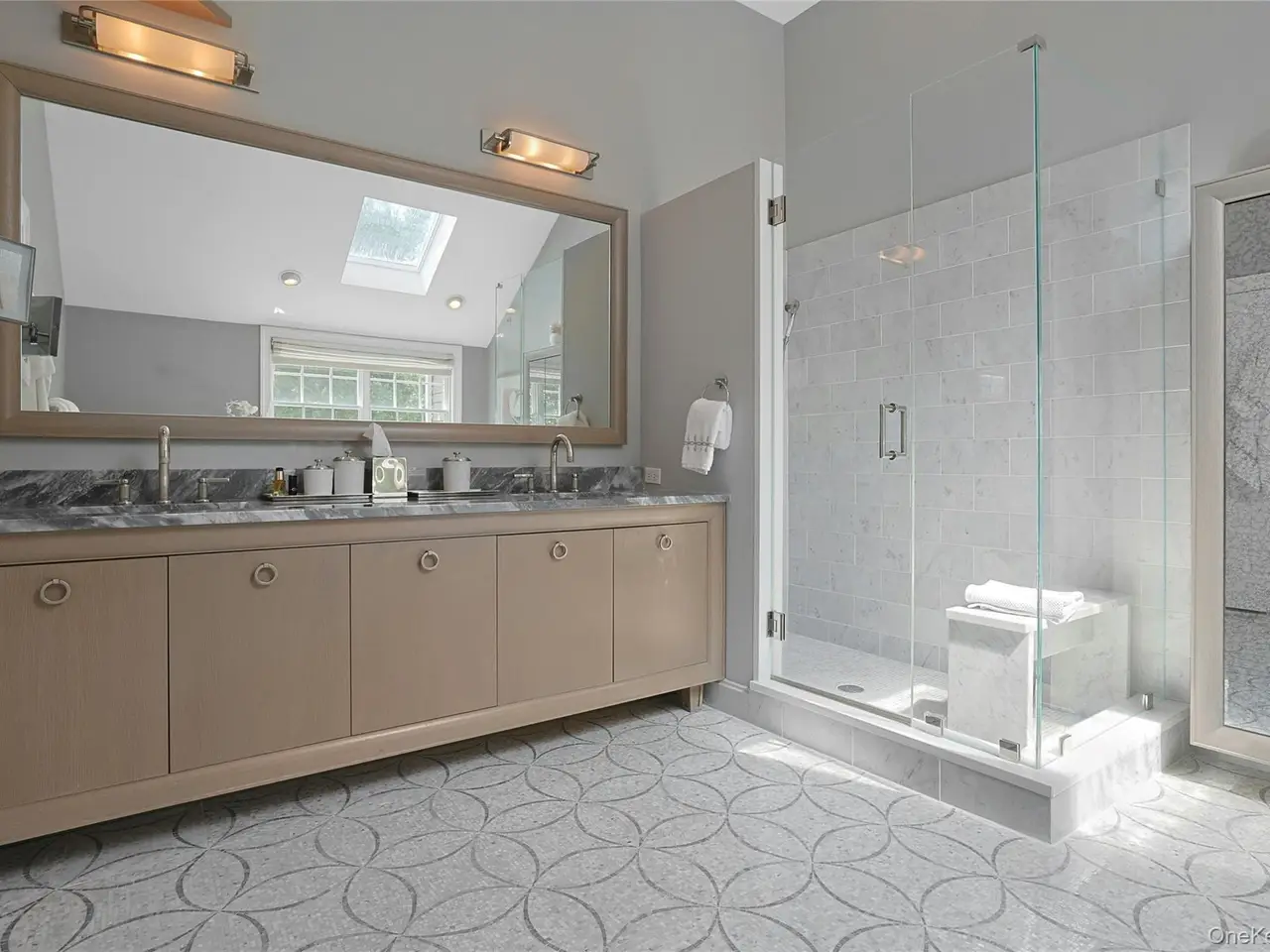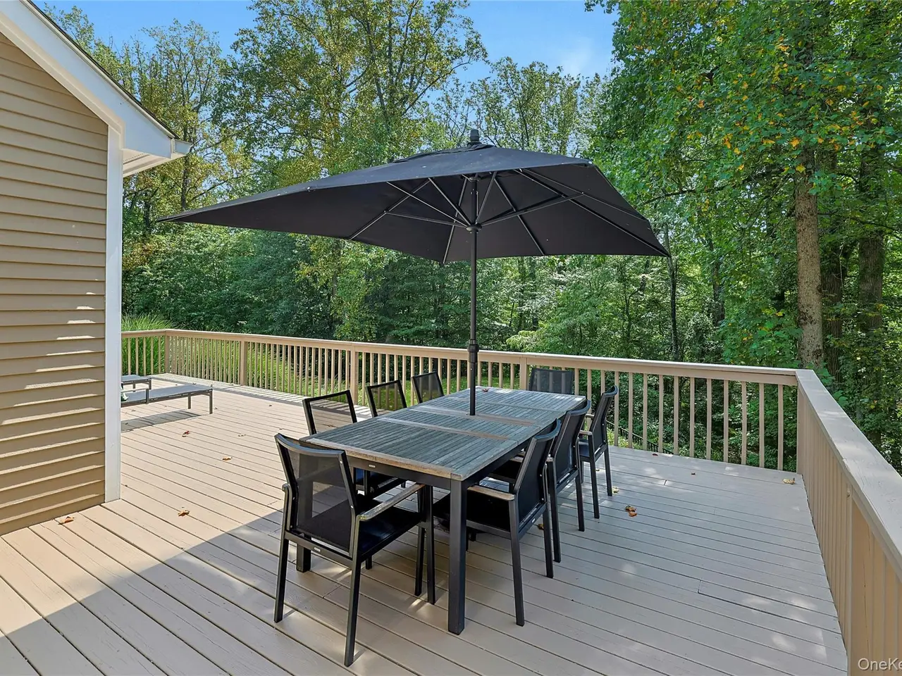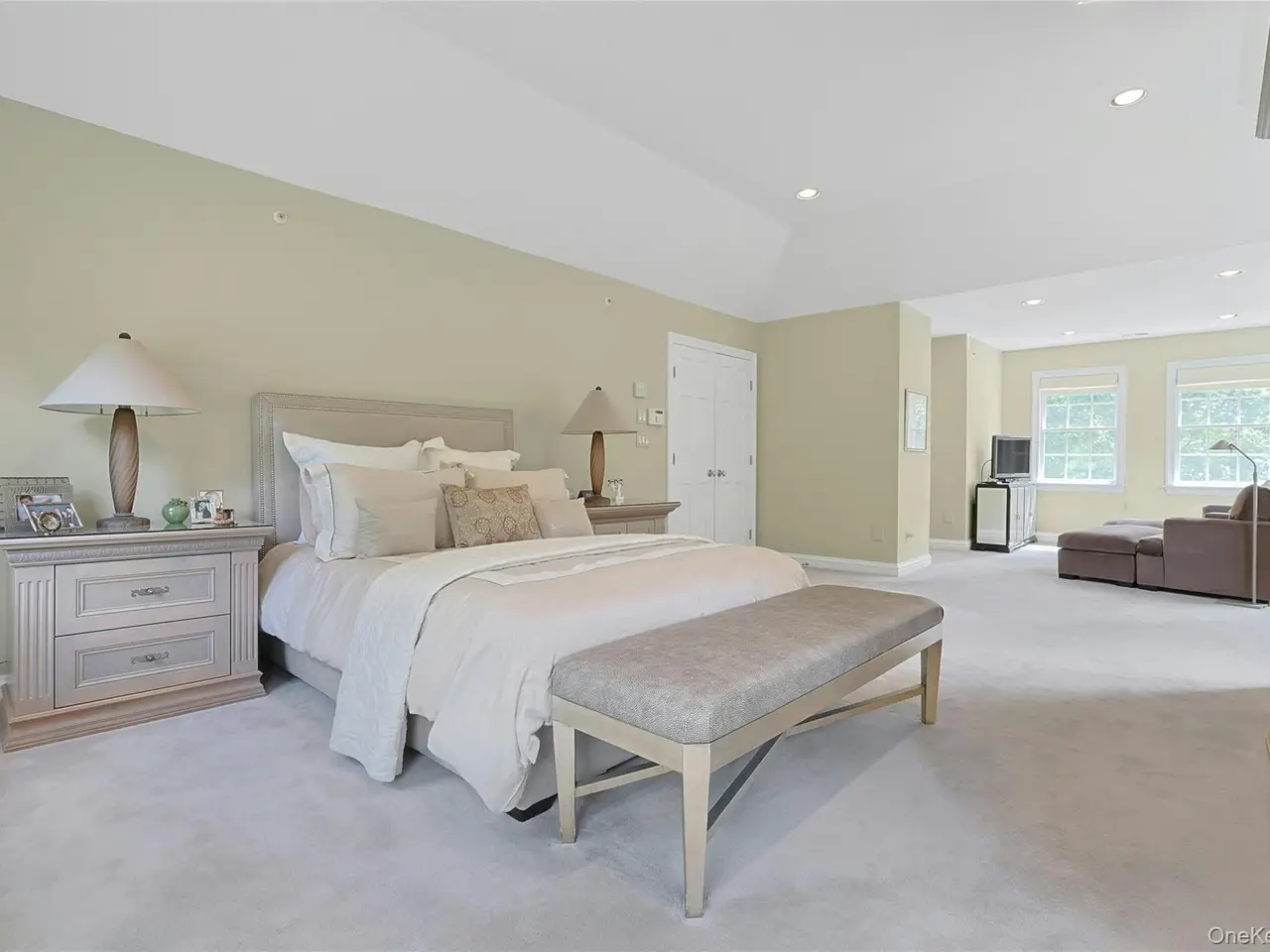 Living like a four-bedroom, this gracious and spacious three-bedroom plus bonus room modern Colonial shines from top to bottom from the meticulous maintenance and updates by the original owners. A welcoming, grand two-story entry introduces a large formal living room brightly illuminated by large front- and side-facing windows, recessed lighting and a wood-burning fireplace. French doors add light from the adjoining sun room, which can easily serve as a home office. Host feasts or fests in the traditional front-facing formal dining room. The kitchen is a cornucopia of delights: custom white wood cabinetry, natural stone countertops, subway tile backsplash, massive center island with plenty of prep space and a breakfast bar for quick dining, and high-end stainless-steel appliances including two Wolf electric convection ovens, a Wolf induction cooktop, large Sub-Zero refrigerator/freezer, built-in Sharp microwave, Miele dishwasher and Sub-Zero wine fridge. Open to the family room is the adjoining breakfast area with built-ins and sliding glass door to the deck for easy BBQ or dining alfresco. Large, rear, south-facing windows and a sliding glass door to the deck beam natural light throughout the spacious family room with its skylit cathedral ceiling, built-in cabinetry and back staircase ascending to the upper level. A powder room and a well-organized laundry/mud room with access to the three-car garage complete the main level. A sweeping staircase ascends to the upper level, home to three bedrooms, three bathrooms and a bonus room, which include the luxurious front-to-back primary suite endowed with a king-sized bedroom, an adjoining sitting or exercise area, walk-in closet, and an elegant, private, skylit, spa-like ensuite bath with wide, two-sink vanity, spa tub, separate shower stall, and radiant heat; two comfortably-sized bedrooms include a front-facing bedroom with two closets and private ensuite bath with shower over bathtub, and a rear-facing bedroom with door to hall bath with two-sink vanity and shower over bathtub; and an extra-large bonus room with closet, which can serve as a den, guest quarters, lounge, office, study, etc. All upper-level rooms have hardwood flooring beneath wall-to-wall carpeting. Designed for entertainment, the finished walk-out lower level showcases two large recreation spaces with a sliding glass door to a large deck, an exercise area (possible in-law or au pair space) and a full bath with shower. Solid, poured concrete foundation, recently updated mechanicals, an automatic backup generator and a newer roof to top it off. Lovely landscaping envelopes the residence. A velvety green lawn rolls out in the back yard, ideal for a catch or lounging about. Sited on a private cul-de-sac just a short drive to schools, shops, town and train. A gem!
