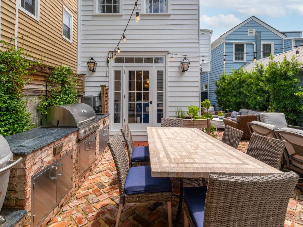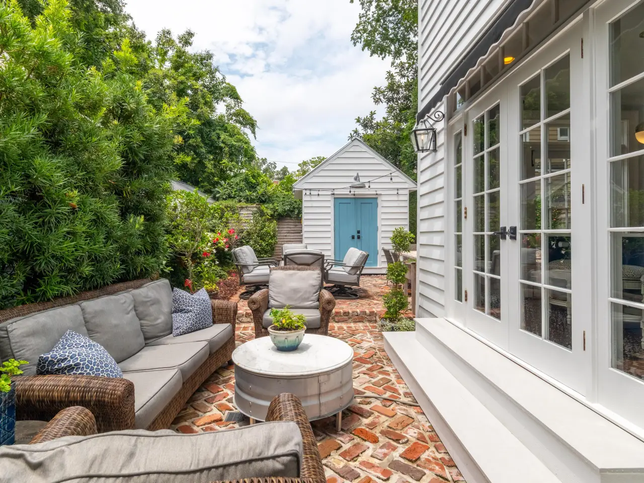 Timeless Elegance Meets Modern Luxury in the Heart of Historic Charleston on the highly desirable Warren Street. Step into the perfect fusion of Charleston's rich heritage and contemporary sophistication with this masterfully renovated 1800s Charleston Single home. Nestled one of the most idyllic and walkable locations on the Peninsula, this residence offers the rare combination of serene city living with immediate access to celebrated shops, restaurants, and cultural landmarks. From the moment you arrive, the home exudes Southern charm. A handcrafted wrought iron gate(a striking piece from the legendary blacksmith Philip Simmons) welcomes you to a spacious lot with coveted off-street parking, framed by lush landscaping and shaded piazzas ideal for enjoying breezes year-round. Inside, historic character and refined finishes abound. Original hardwood floors and antique fireplaces echo the home's storied past, while a fully reimagined open floor plan offers effortless modern living. Custom-built cabinetry, refined lighting fixtures, and curated architectural details create an ambiance that is both elegant and inviting. The main level features a formal living room AND a gracious great room complete with a stylish wet bar and built in mini fridge-perfect for entertainingand seamlessly flows into a show-stopping chef's kitchen outfitted with natural stone countertops, high-end stainless steel appliances, a gas range, built-in water filtration system, and a generous central island with counter seating. Thoughtful upgrades such as new custom built-ins add functional beauty throughout. Hidden pantries and storage are cleverly constructed in the staircase for a surprising surplus of storage. Ascend one of the two staircases to discover a luxurious primary suite that rivals the finest boutique hotels. The spa-like ensuite bath is a tranquil retreat, showcasing a two separate vanities and a stylish spa tile design. Spacious closets and storage with integrated laundry adds convenience and style. Two additional bedrooms offers flexibility for a home office, guest suite, or media room. Designed for both intimate daily living and elegant entertaining, the home is bathed in natural light thanks to custom-crafted French entry doors. Additional highlights include a tankless water heater, updated plumbing and electrical, and multiple staircases enhancing flow and accessibility. Outdoor living is elevated to an art form with a bespoke brick patio and full outdoor kitchen, complete with built-in grilling station, ideal for hosting alfresco dinners or relaxing under the stars. A private fenced yard and charming garden shed complete this outdoor oasis. Located just blocks from Marion Square, the Medical District, and Charleston's finest dining destinations, and only minutes from The Battery, Sullivan's Island, and Charleston International Airport, this extraordinary home offers a lifestyle of unmatched convenience, history, and refinement. This is more than a home - it's a piece of Charleston's soul, beautifully reimagined for modern living. Don't miss this rare opportunity.