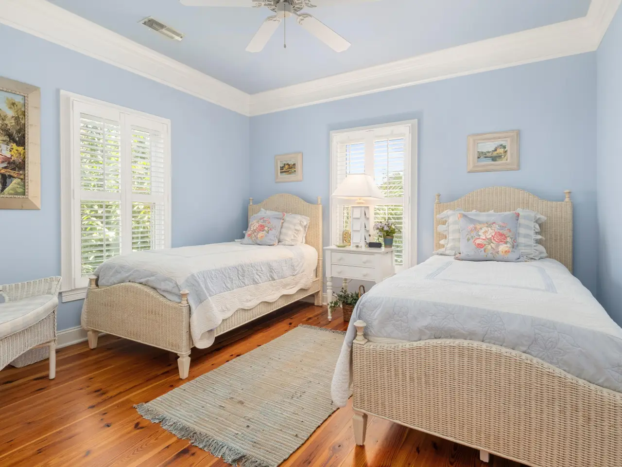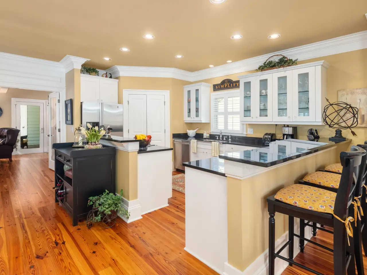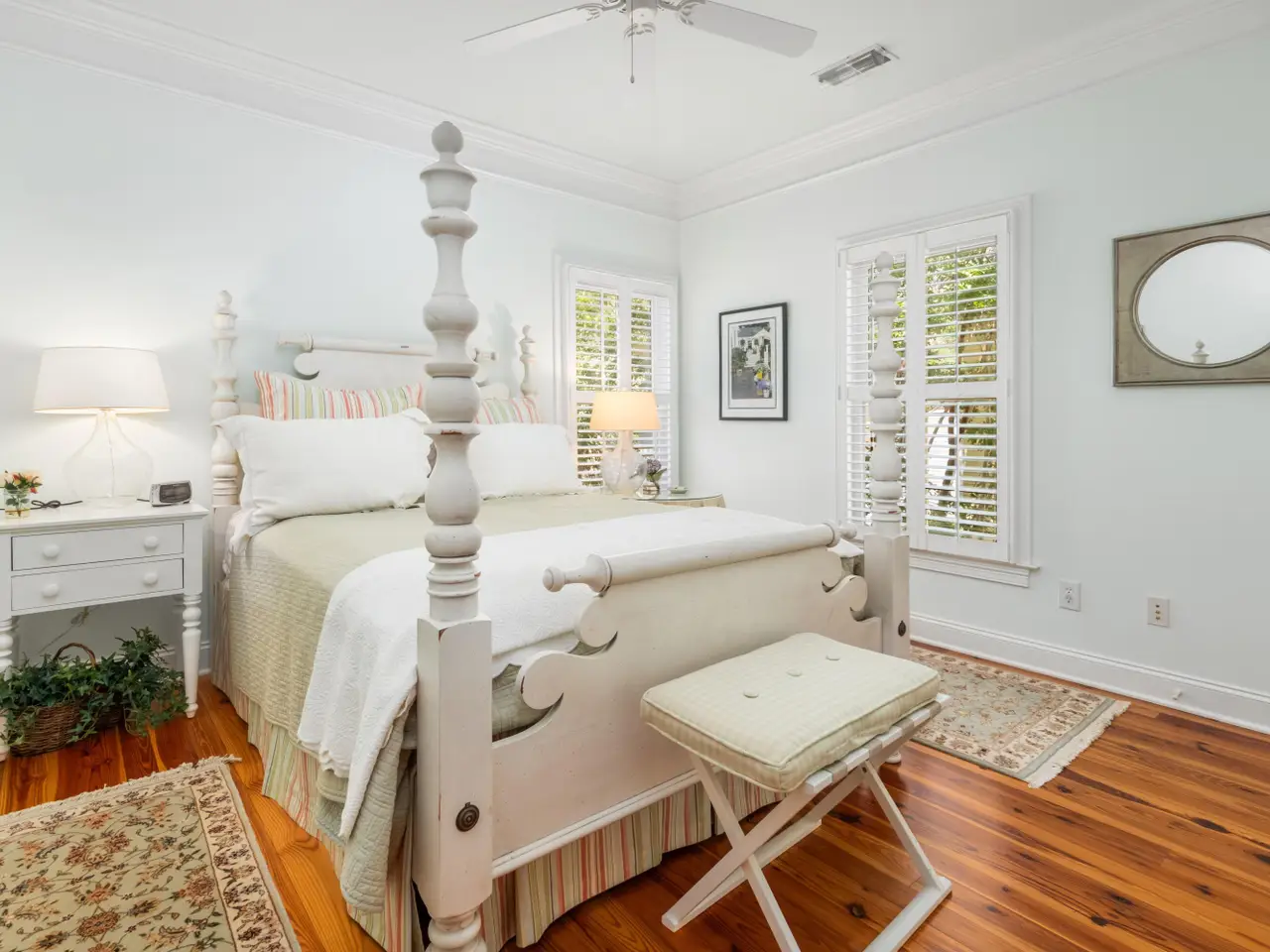Discover one of the few custom-built homes along the coveted marsh-front stretch of Barfield Street in Barfield Park. Built by renowned Simonini Homes, this three bedroom, three bath residence offers 2,292 square feet of exceptional craftsmanship, quality finishes, and timeless Lowcountry charm. Enjoy serene park and marsh views from the spacious double front porches or relax on the rear screened porch and patio overlooking a lush and charming fenced yard. Inside, you'll find beautiful pine wood floors, heavy mouldings, custom light fixtures and other thoughtful details throughout. The primary suite is upstairs, but with a full bath on the main floor, there's flexibility for a first-floor bedroom. Recent updates include new HVAC units (2022), and while the roof is original, the home has been lightly lived in since its 2004 construction. A rear alley provides access to the attached two-car garage. Perfectly located, you're within walking distance to Pierce Park Pool, the library, Daniel Island School, churches, and dining. Stroll along 20+ miles of island trails, including the scenic bridge across the marsh to The Kingstide restaurant overlooking the Wando River. Opportunities like this are rare - schedule your showing today and experience the unmatched quality, views, and lifestyle of Daniel Island living.