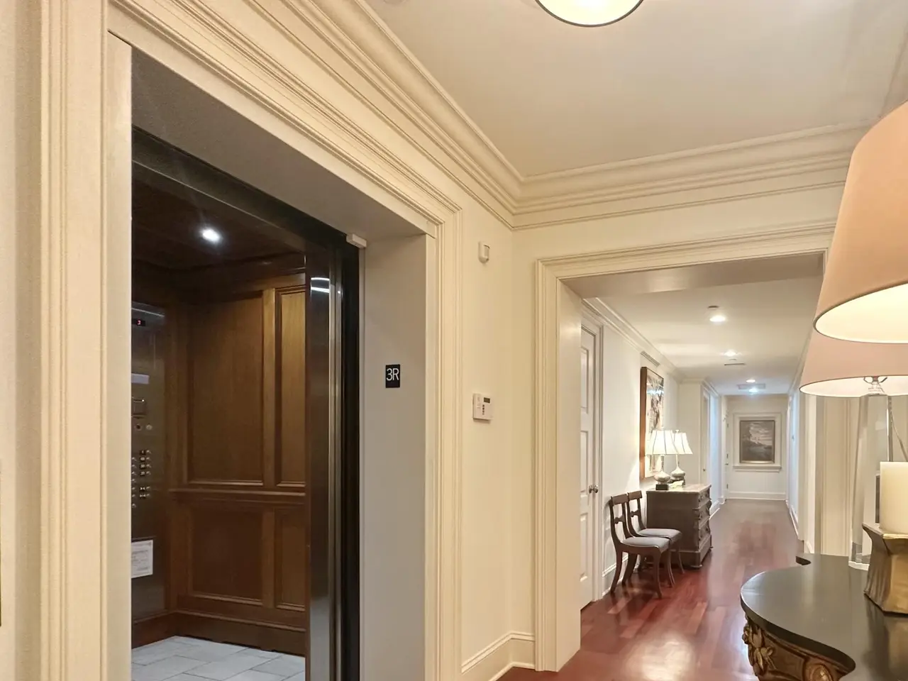 Mahogany paneled elevator