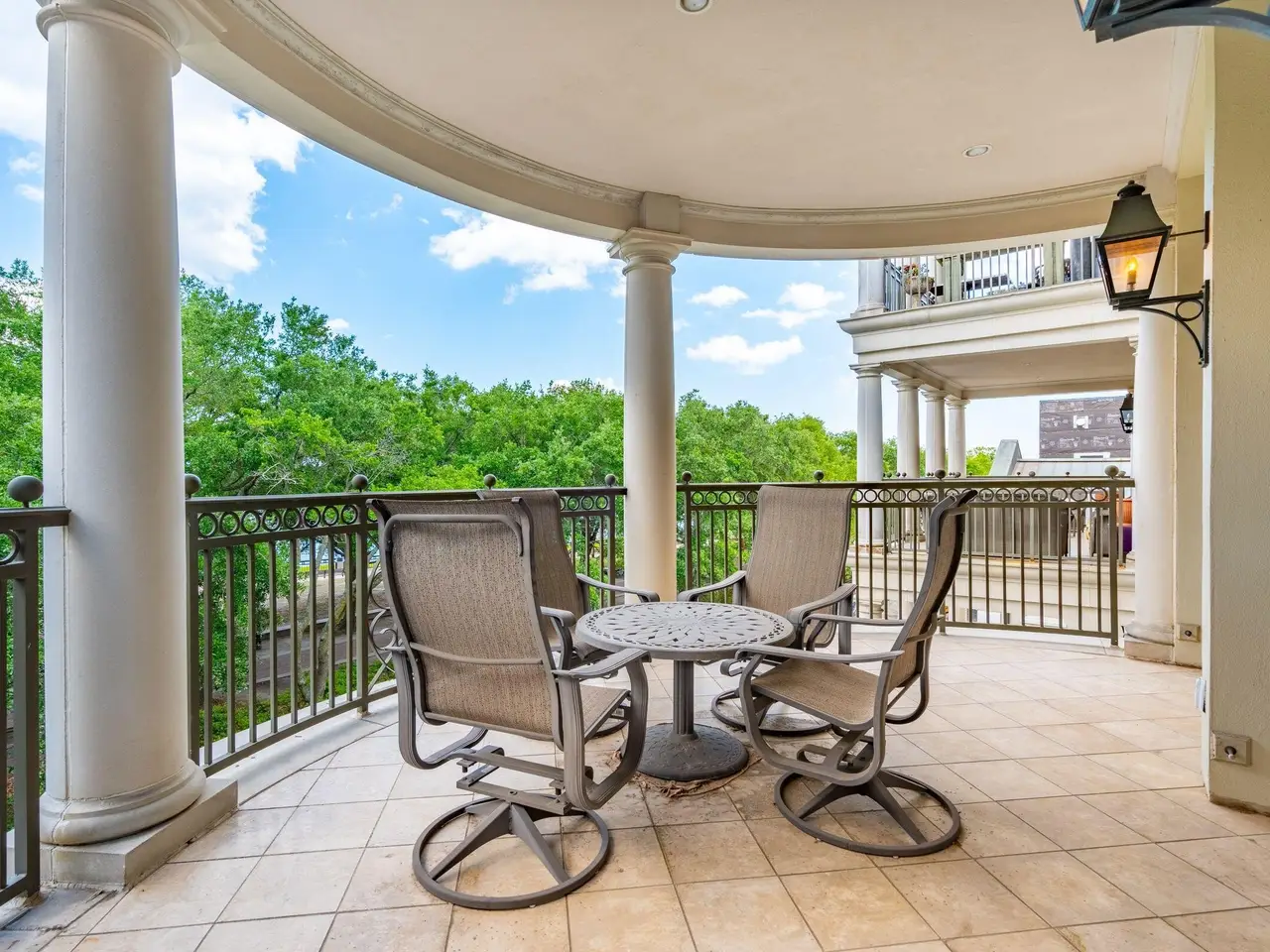Stone steps with gas lanterns