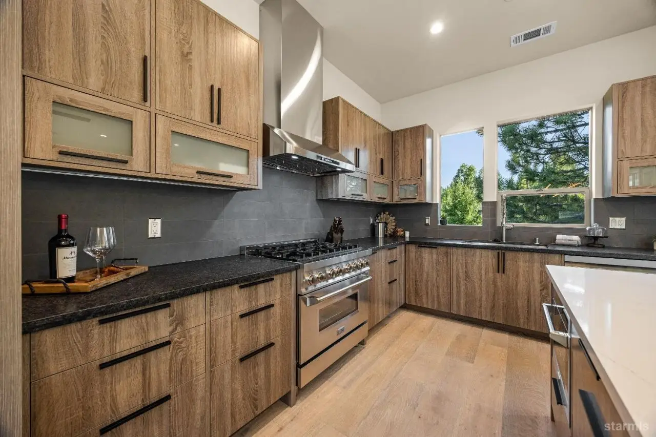Experience luxury mountain living in this brand-new custom Tahoe home! This property backs directly to protected forest land and offers stunning views of Conservancy-owned wilderness. Situated on an expansive 9,922 square foot lot, this four-bedroom, three-and-a-half-bathroom residence provides an exceptional retreat surrounded by natural beauty.The main living area features an open great room with vaulted ceilings and a striking floor-to-ceiling custom tile gas fireplace. Step outside onto the spacious back deck to enjoy filtered mountain views and the serene forest setting. The gourmet kitchen showcases custom cabinetry, elegant quartz and granite slab countertops, commercial-style stainless steel appliances, and a well-organized pantry. You will stay warm in the winter with a high effiency forced air heating system, and cool in the summer with rare central A/C.The upper-level primary bedroom offers a private sanctuary with its own balcony overlooking the pristine Conservancy land. The spa-like en-suite bathroom features extensive custom tilework, a relaxing soaking tub, and beautifully crafted custom cabinets. This level also includes a well-appointed guest bathroom and a laundry room with built-in cabinets.The lower level houses a junior primary bedroom with custom en-suite bathroom, two additional guest rooms, and a full guest bathroom. All of which provide comfortable accommodations for family and visitors.From your back door, enjoy direct access to the Upper Truckee River and miles of hiking and biking trails. This exceptional location offers the perfect base for outdoor adventures, spectacular sunsets, and easy access to world-class skiing and pristine lake activities.