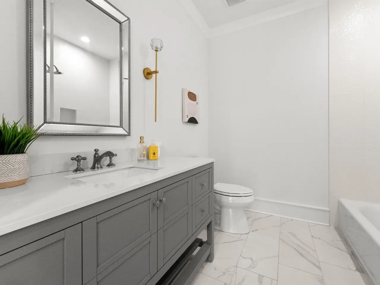 This duplex perfectly blends classic elegance with modern living, making it a truly exceptional property in a prime location. Five beds/six baths! Enter through a metal door into an inviting foyer highlights meticulous attention to detail. The chef's dream kitchen-with custom cabinets, professional-grade appliances - a 60-inch built-in ref. and 48-inch gas stove with grill, and a massive island is a perfect space for culinary creations. Family room, with fireplace and wet bar, flowing seamlessly to the covered patio with fireplace and grilling area, for fun and relaxation. A flex rm on main floor study/bed and full bath. The master bedroom with tiled gas fireplace and luxurious bath is a private oasis. All other bedrooms are en suite with built-in closets ensuring comfort and convenience. 3rd-floor with wet bar and full bath is an ultimate entertainment space, perfect for hosting gatherings and to enjoy! A fenced yard with irrigation, landscaping lights, and pillar lights elevate outdoor space and curb appeal. Up to $15,000 closing cost if builder's preferred lender.