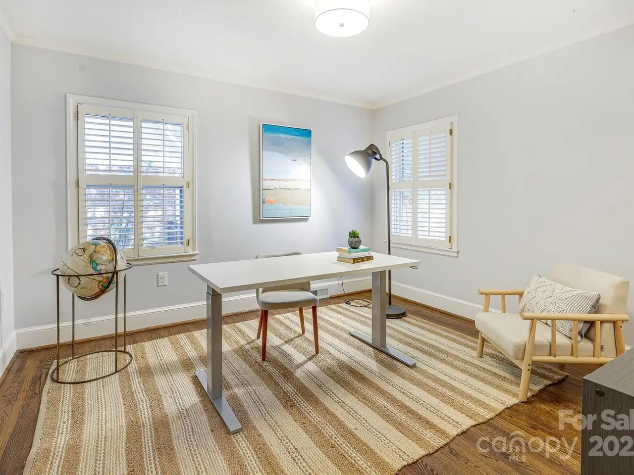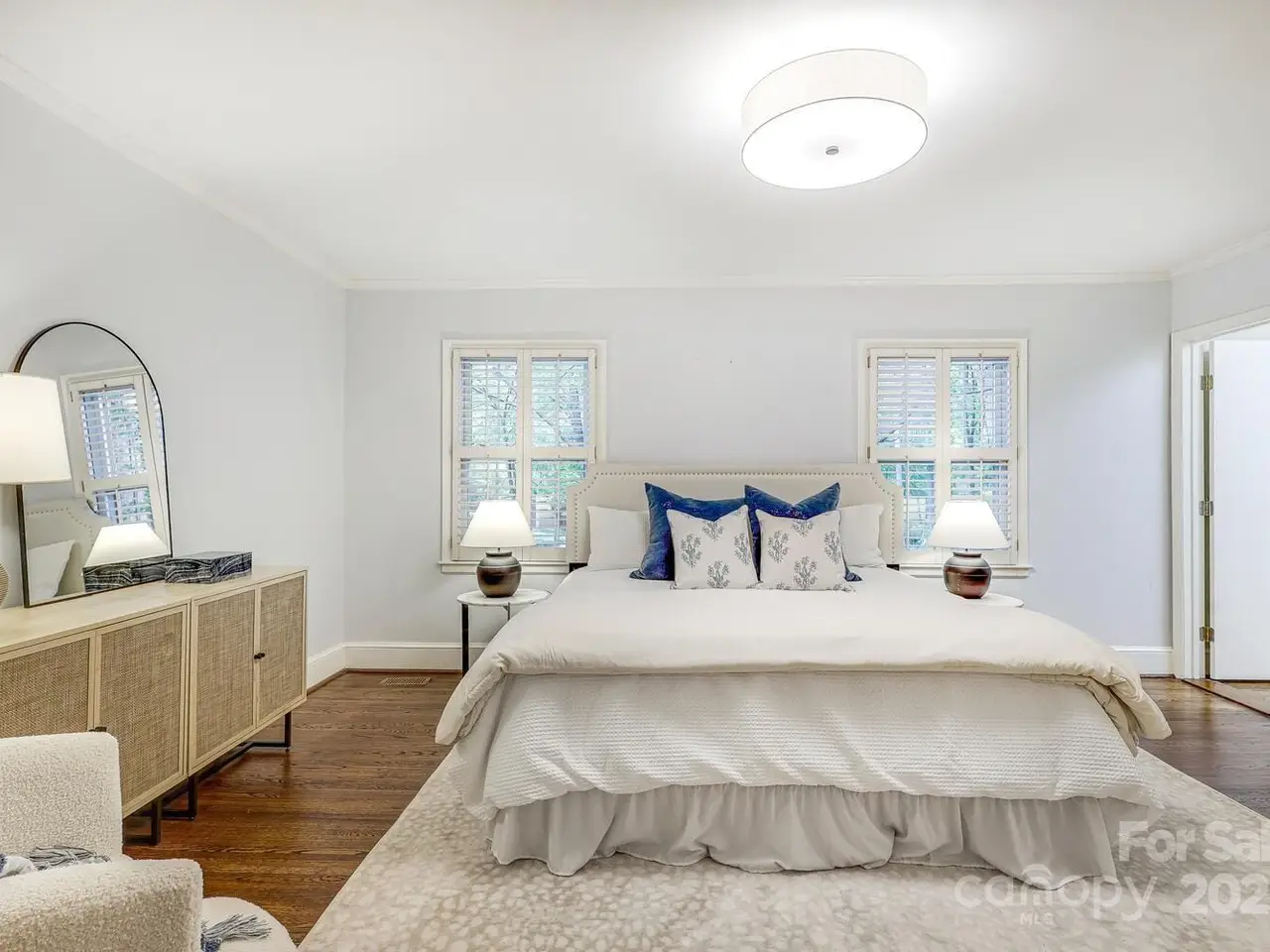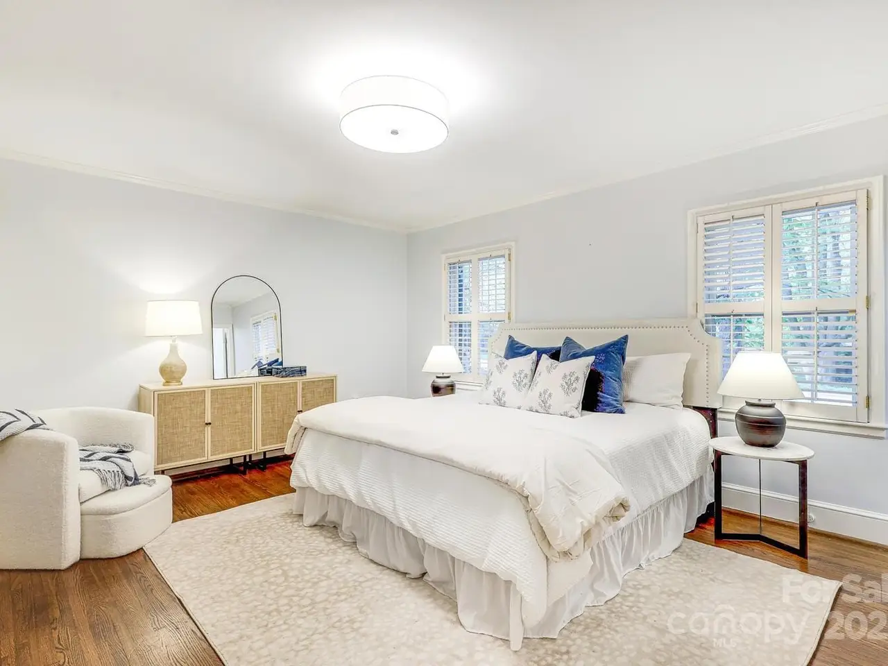 Charming one and a half story, 4BR/3BA home on a private corner lot, on a quiet tree-lined street in Cotswold. Two spacious gathering areas with fireplaces connect to the sunny kitchen with breakfast room, bar, and separate dining room. Main-level primary suite offers three great closets and en suite bath with dual vanities, garden tub & shower. Second main-level BR with full bath is ideal for office, nursery or exercise. Upstairs includes 2 nice sized bedrooms & full bath. Enjoy the outdoor living areas which include deck and patio and features mature shade trees, fenced yard and storage shed. (New tree swing conveys!) Large utility/laundry room with side entrance adds flexibility (not in heated SF). Cotswold is thriving with new breweries, restaurants, retail & grocery options, all minutes from Uptown, SouthPark & Plaza Midwood. Perfect blend of community and convenience.
