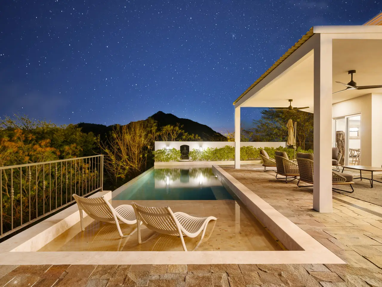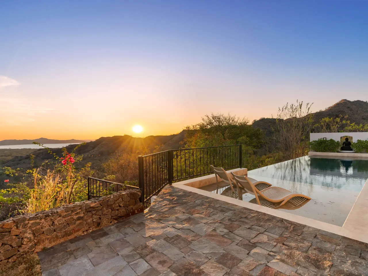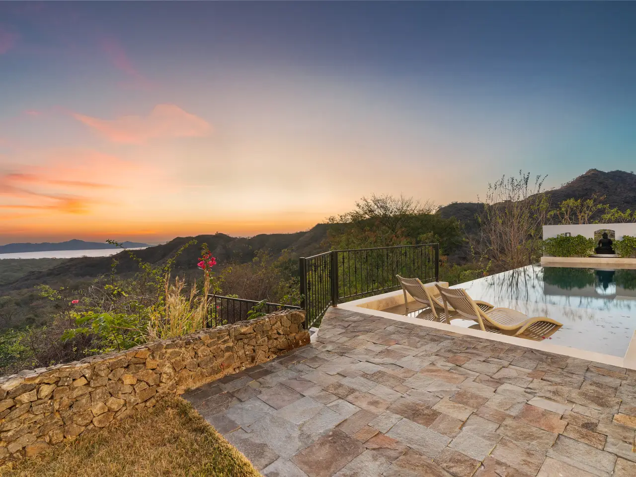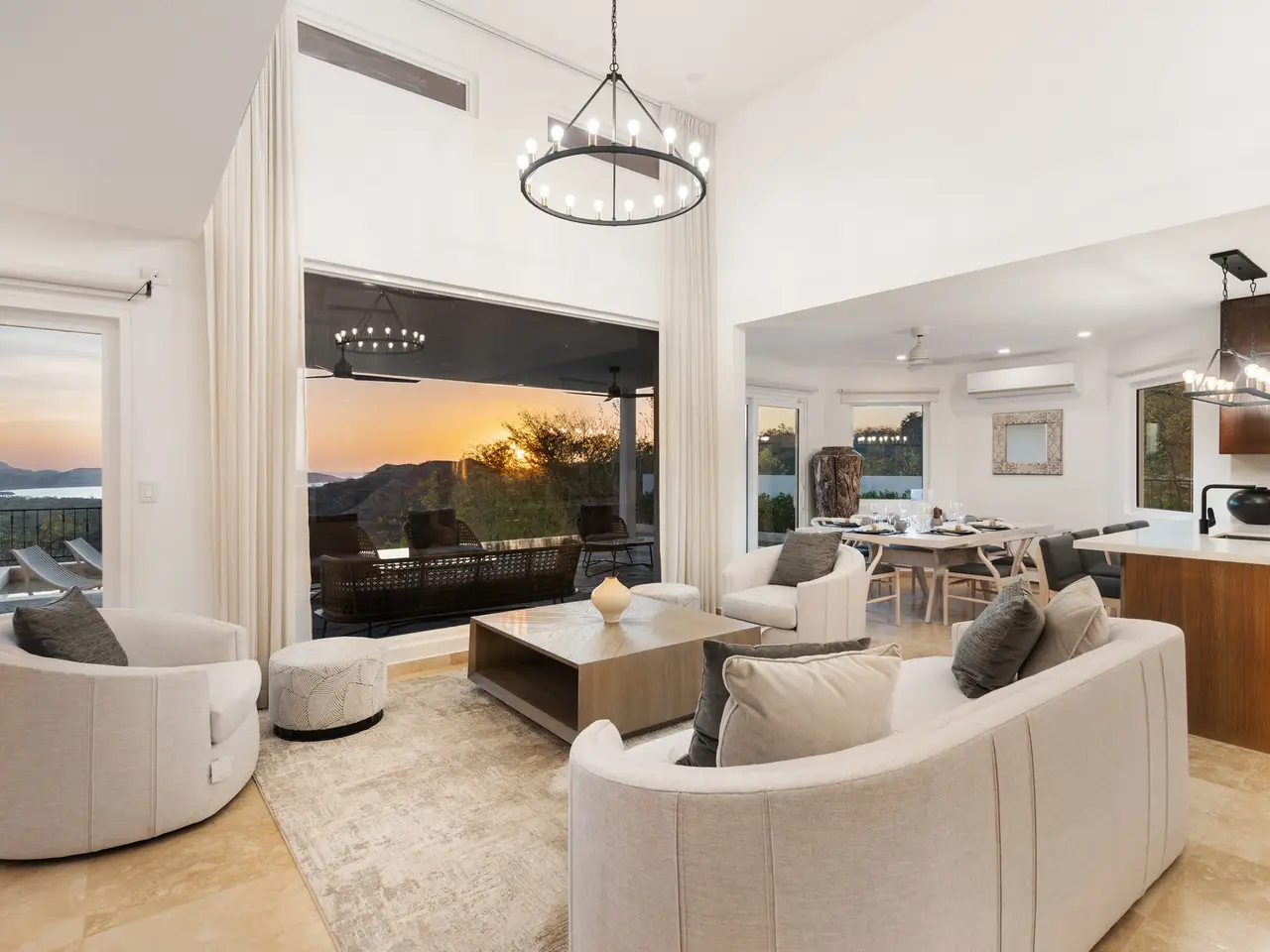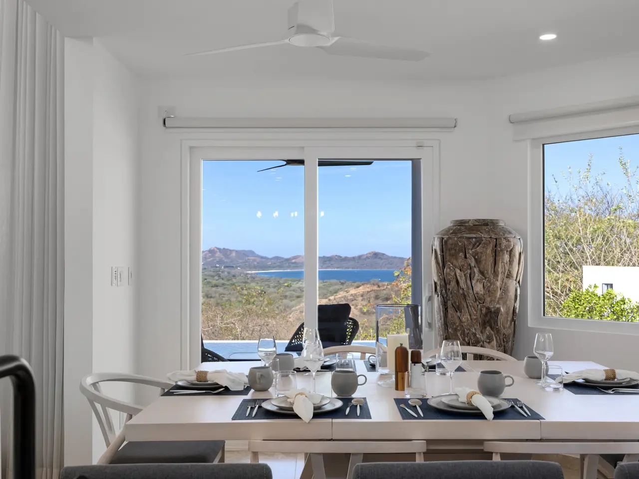Casa Sunset – Ocean View Retreat in Mar Vista Discover Casa Sunset, a beautifully renovated coastal retreat located at the top of the prestigious Miramar section within the exclusive Mar Vista community. This luxurious property features a two-story main home with 3 bedrooms and 3.5 bathrooms, plus a separate 1-bedroom, 1-bathroom apartment which is perfect for guests or rental income. Spanning 3,200 sq ft of elegant living space on a sprawling 5,163 m² lot, Casa Sunset offers breathtaking panoramic ocean and mountain views in a peaceful, private setting, with plenty of room to expand. Completely remodeled in a refined tropical modern style, the home features floor-to-ceiling windows and high-end Pella sliding doors that seamlessly connect indoor and outdoor living. Natural travertine marble graces the floors and bathroom walls, while all cabinetry is custom-made from rich local hardwoods. The home is sold fully furnished with imported designer pieces from Casa Nova, making it completely turnkey - just bring your suitcase and start enjoying paradise! Step through the front door and be instantly captivated by the panoramic view of the Pacific Ocean. To your left, a spacious guest suite awaits with a queen bed, private bath, cozy sitting area, and large windows that perfectly frame the sea. To your right, the open-concept living space flows effortlessly between the living room, dining area, and gourmet kitchen. The kitchen is a chef’s dream, featuring custom hardwood cabinetry, sleek white quartz countertops, and brand-new stainless steel appliances. The principal suite occupies the second floor and offers even more dramatic, sweeping views of the ocean. This stunning retreat features a luxurious king bed, a serene sitting area, and a spa-inspired bathroom straight out of a magazine. The bathroom boasts two ocean-facing showers and a soaking tub, all framed by a striking wall of sea green tile that brings the coastal beauty indoors. The living room showcases a dramatic two-story vaulted ceiling with an entire wall of glass, capturing the endless ocean horizon in all its glory. Just behind the kitchen, you’ll find a large laundry room, ample built-in storage, garage access, and a generous second guest bedroom. This space is thoughtfully designed with four custom bunk beds, a sitting area, and a dining/game table—perfect for entertaining children or hosting extra guests. Sliding doors lead directly to the lush outdoor space. Step outside to a spacious covered terrace ideal for alfresco dining or simply relaxing in the shade. The L-shaped infinity-edge pool, complete with a built-in lounging shelf, overlooks the majestic mountains and the iconic white sands of Playa Conchal. With unforgettable sunsets and views that stir the soul, Casa Sunset is more than a home—it’s a serene coastal sanctuary where luxury meets nature. Owning property in Mar Vista means enjoying a secure, upscale community just minutes from the new Flamingo Marina, top international schools, and some of Costa Rica’s most beautiful beaches. With resort-style amenities, breathtaking views, and a strong sense of community, it's the perfect location for a full-time family home or a high-performing vacation rental. Make Casa Sunset yours! Please reach out today for a private viewing.