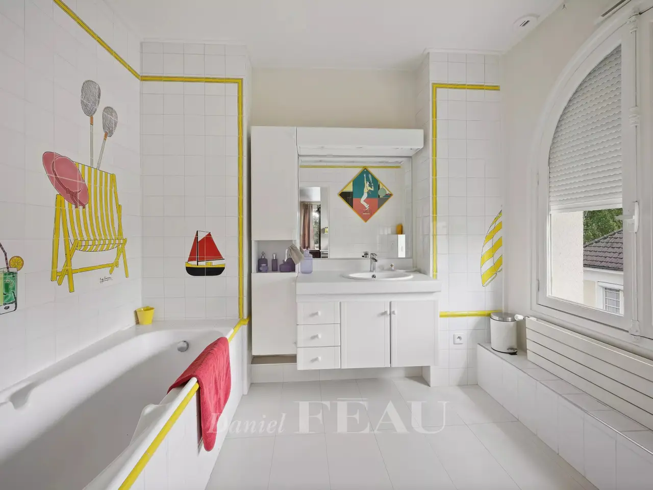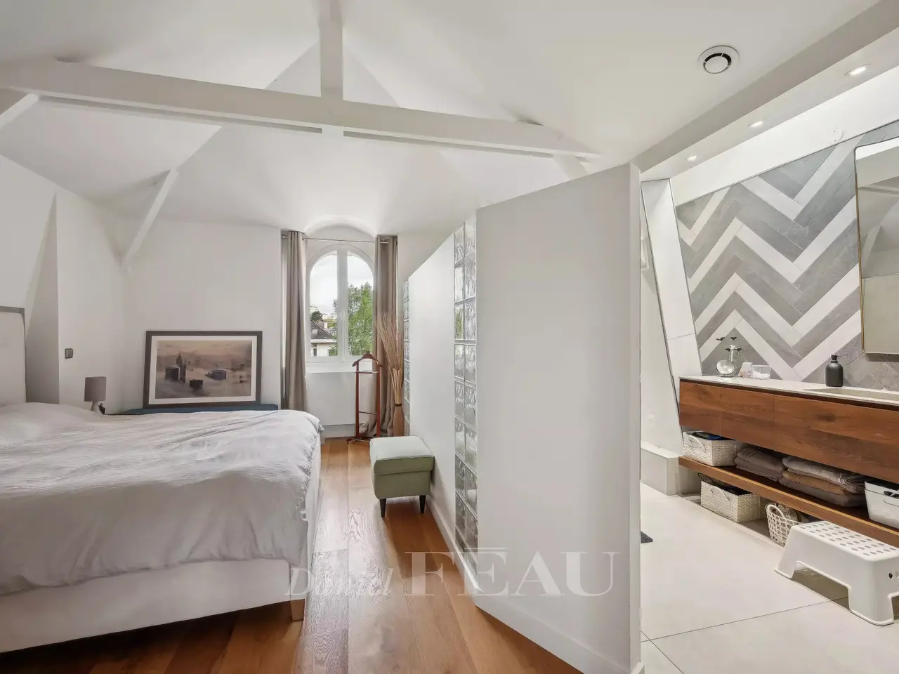 This exceptional 614 sqm mid 20th century property nestled in a cocoon of leafy greenery and benefiting from a landscaped garden is located in the sought-after Domaine de la Prairie d'Aulnay residence on the edge of the Parc de Sceaux and a few minutes from the station. 437 sqm of living space includes a spacious living/reception room with a dining room in a veranda bathed in sunshine, a kitchen with dining facilities, a spacious study and a bathroom. The 1st floor comprises two spacious suites with bath/shower rooms and a south-facing terrace. An entirely renovated split-level and self-contained loft-style apartment includes a spacious living/reception room, a dining room and open-plan kitchen opening onto a terrace, three bedrooms including a master suite with a bathroom and dressing room, and a second bathroom. Ample fitted storage space. The garden-level comprises a self-contained studio apartment. With an indoor swimming pool partially opening onto the exterior, a terrace, a caretaker’s lodge, a sauna with a shower, a utility room, a boiler room and four parking spaces. With easy access to the trunk roads and Orly Airport.