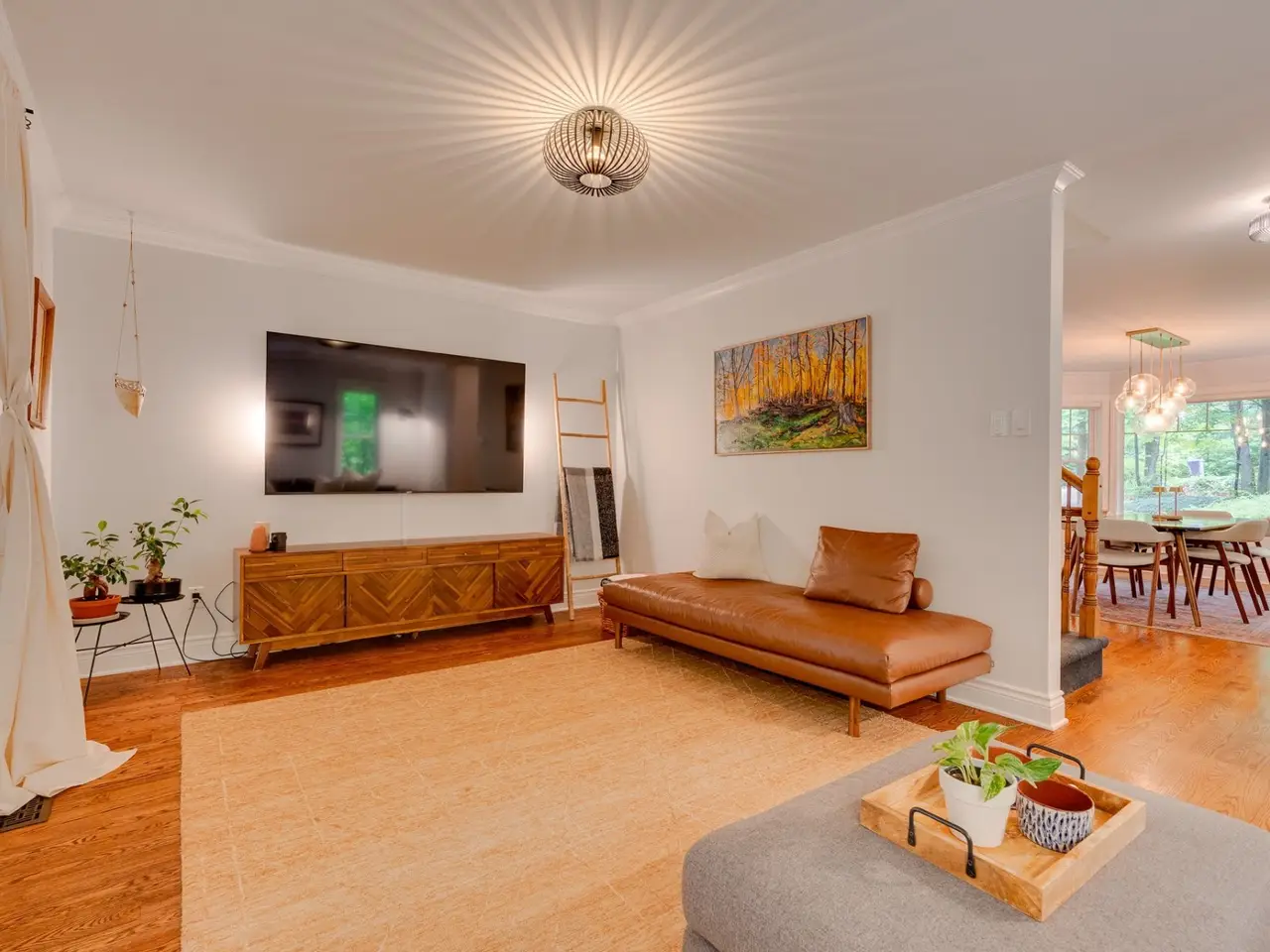 In the heart of Old Chelsea, this timeless craftsman-style home sits on a private two-acre wooded estate, just a 3-minute stroll from cafes, boutiques and galleries--and literally steps from Gatineau Park. Offering 3+1 bedrooms, deep porches and a screened-in veranda with pine ceilings, it blends comfort and character. Inside, a dining room with spectacular fenestration frames the landscape, complemented by open living spaces, oak floors and refined details. Outdoors, a pond with waterfall, firepit and a spa pavilion inspired by Nordic tradition create a retreat-like atmosphere. A rare opportunity in one of Chelsea's most coveted addresses.