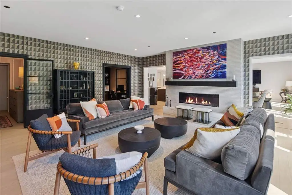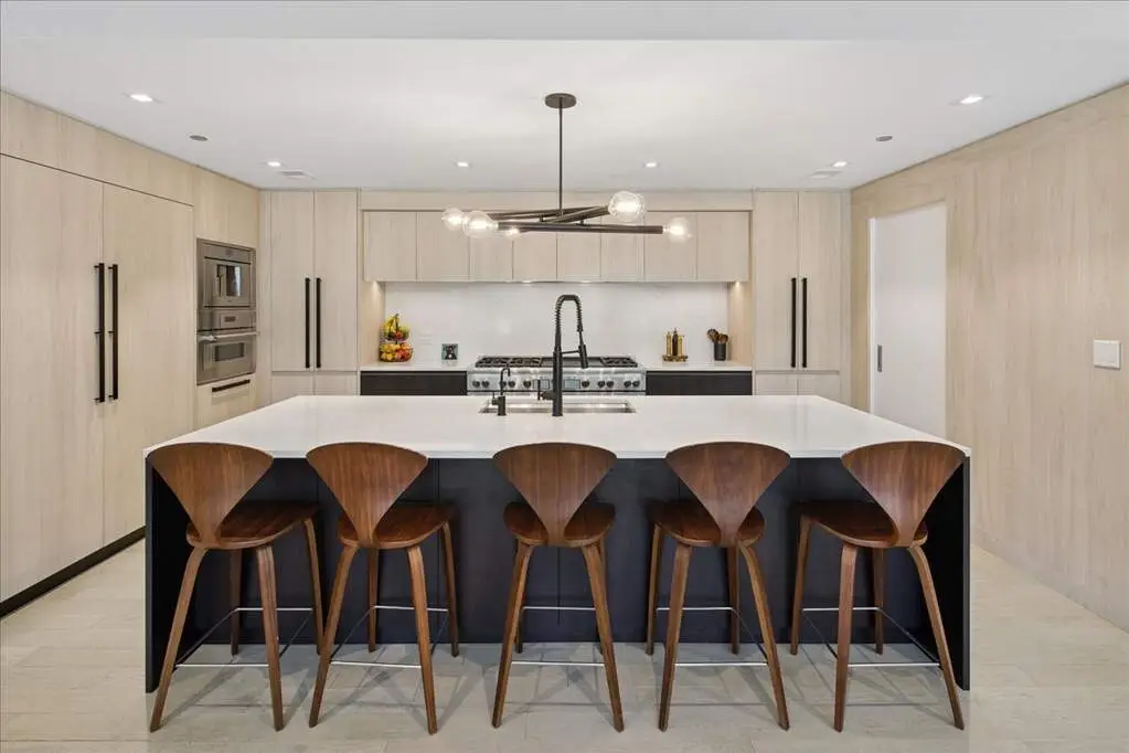 In the heart of Chicago's sought-after West Loop, this extraordinary 5-bed/5 and 1/2 bath residence embodies sophisticated modern living. Designed by acclaimed New York firm MoJo Stumer and elevated with curated finishes throughout, the home combines architectural precision with a warm, livable elegance. A private elevator opens into a gracious foyer, setting the tone for an expansive, light-filled interior where 9' plus ceilings and floor-to-ceiling windows frame private views of the city and nearby parks. Handsome lighting fixtures, premium designer wallpaper and custom closets add refinement and functionality, while the white oak floors and Lutron motorized blinds provide understated luxury. The chef's kitchen is a striking centerpiece, outfitted generously with Italian cabinetry, a dramatic quartz island and fully integrated/built-in Thermador and Bosch appliances, including a six-burner range, built-in espresso maker, and more. It's difficult to capture how much this thoughtfully designed kitchen enhances the home's elevated lifestyle. The primary suite is a serene retreat with spa-like bath featuring a sculptural soaking tub, walk-in shower, dual vanities, and oversized walk-in closets, while 3 additional bedrooms and a media lounge with balcony access offer comfort and dynamism. The 5th bedroom suite with kitchenette and separate entrance is located on the opposite end of the unit; ideal for guests or live-in quarters. Beyond the interiors, a spectacular 600 sq ft terrace with porcelain pavers, Mont Alpi grill, wine fridge, and built-in water and gas lines creates an outdoor living experience rarely found in the city. Additionally, dual-zone climate control, 2 separate built out laundry rooms, 3 extra storage lockers and 3 indoor parking spaces (2 EV chargers)-underscore the home's seamless blend of design and function. Steps from Skinner Park, esteemed Whitney Young Magnat School and the city's best dining and shopping, this is a rare opportunity to own a residence where elevated design meets everyday ease in one of Chicago's most dynamic neighborhoods.