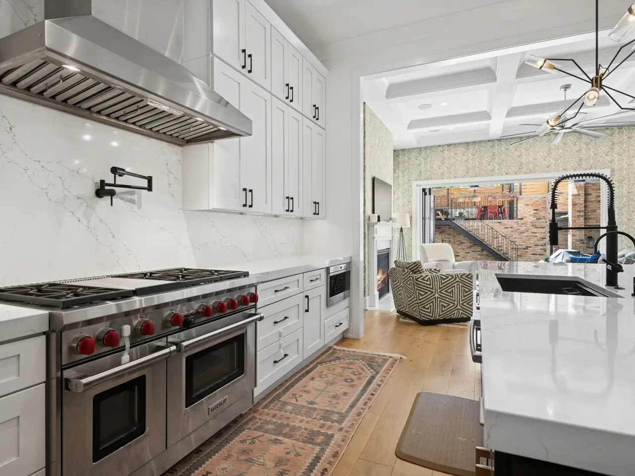 One of a kind, masterfully crafted, stand out 5 bedroom residence on one of the most coveted streets in the main heart of Andersonville. A half block east of Clark Street and steps to the pulse of the neighborhood. Another exquisite Tylo Development Partners LLC single family features 3 bedrooms on one floor plus a guest or in-law suite on lower level, 4.1 decadent bathrooms. This combination of classic contemporary style, 11' ceilings, incredible natural light sources, 2500 square feet of private outdoor space lends itself both to an entertainer's dream home and a very family friendly experience to raise children with bedrooms on one floor and conducive layout with an open kitchen concept and adjacent "play spaces", easy access to first level backyard with some grass set on a 30' wide lot. Impressive, distinct and all masonry and limestone front, double stacked, oversized bay windows with motorized shades, all restored Chicago brick sides walls. Crisp color palette for fine art display and beautiful and fun wallpaper sprinkled throughout the rooms of this home. Ring System security with locked front gate, Smart Home System. Foyer greets, gracious formal living room with fireplace outfit with heavy limestone mantle and hearth. First floor powder room. Classic contemporary wall wainscoting, coffered ceilings, all 7"" wide plank, real ""tongue and groove"" hardwood floors throughout, sumptuous 5,400 square feet of interior living space. Open kitchen concept with separate and designated dining room. Gourmet kitchen featuring massive 14' island, built in sink, comfortable seating for five, mitered quartz counters in white with grey veining, slab backsplash, Subzero, high end and custom all wood cabinetry dressed in white and walnut, separate pantry, black gold hardware. Six burner, high output Wolf range with double oven, vented culinary hood, stainless steel appliance package. Family room continues the kitchen space with fireplace and extra cabinetry including dry bar, wine and beverage coolers, windows on on three sides and collapsable panel of glass ""accordion style"" with a screen leading out to first floor outdoor space with pavers and grass, 2.5 car all brick garage with EV charger, epoxy floor, roof top deck above. Cohesive custom light fixtures, chandeliers, ceiling fans, romantic iron patterned staircase, wood treads, laundry room with sink, folding space, side by side washer and dyer, cabinetry in the middle of the second floor. Ensuite bathrooms. The sumptuous primary bedroom includes two walk-in closets, a shoe closet, crown moldings and tall, detailed baseboards throughout, fireplace. Primary bathroom features exquisite marble patterned floor, separate, oversized vanities with quartz counters, free standing soaking tub, separate shower with rain, toilet room, and window for a natural light source. Four additional, great sized bedrooms and three additional bathrooms dressed in finest quartz and marbler stone. Full floor plate lower level offers home theatre room and play space for children, a second laundry room, additional storage, and wet bar. Every closet in this home has custom built ins. The roof top deck is decadent IPE, total privacy above the neighbors, fireplace, view of the Chicago Skyline, two remote controlled retractable pergolas. The Brilliant SMART Home Control Home System features 27 speakers, Wi-Fi 6, nine camera and lighting system security system and remote access. Newly added water filtration system in addition to water softener, reverse osmosis, window treatments, landscaping renovation, sump pump backup battery, water alarm sensors, Reme Halo air purification. Bring your most discriminating buyer. This is the crown of Andersonville and the season.