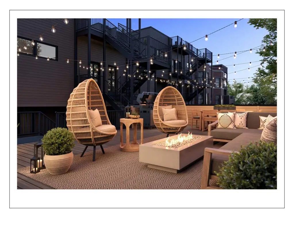 Extra Wide, New Construction Duplex Down designed by Studio Group and Built by V&M Development Delivering in October 2025. This home features a one-of-a-kind floor plan with 4 bedrooms, 3.5 Bathrooms, 2 family rooms and separate levels, 2 outdoor spaces and 2 parking spaces. The amazing kitchen has a massive 12' center island with seating on three sides, hand-built custom cabinetry, a 48" Wolf Range with double ovens, a built in Sub-Zero refrigerator, designer lighting, quartz countertops and a separate pantry with a custom door. The living room features a fireplace and the designer's custom pocket bar with 2 rolling panel doors, oak shelving with brass hardware, antique tile backsplash, quartz countertop, bar sink and a Sub-Zero beverage refrigerator. The wet bar is flanked on each side with a built in mud room & work station/desk. The entertainment space continues from the family room & wet bar to a private, massive covered patio, built out with stone pavers, water and natural gas. The second outdoor space is the private roof deck of the 3 car garage. On the lower level, the large primary suite is features a large walk in closet and a spa like bathroom with a Steam shower with a bench & multiple shower heads, a separate soaking tub, heated floors, gold fixtures and a huge double vanity with lots of storage. The lower level has a second family room, in additional to the primary suite and 3 additional bedrooms. The two middle bedrooms are large are served by a full bath with a tub and large vanity with lots of storage. The third bedroom has an on suite bathroom perfect for overnight guests. Hot water radiant heat on the lower level, on demand hot water, high efficiency HVAC system with smart thermostat, hardwired security system included and fully pre-wired for audio & technology upgrades. Professionally designed, with thoughtfully curated, top of the line finishes throughout and meticulous attention to detail, this is truly a one of kind home. All of this in the heart of Logan Square, around the corner from beautiful Palmer Square Park, within walking distance to your favorite restaurants bars & shops, and the California or Logan Blue Line stops.