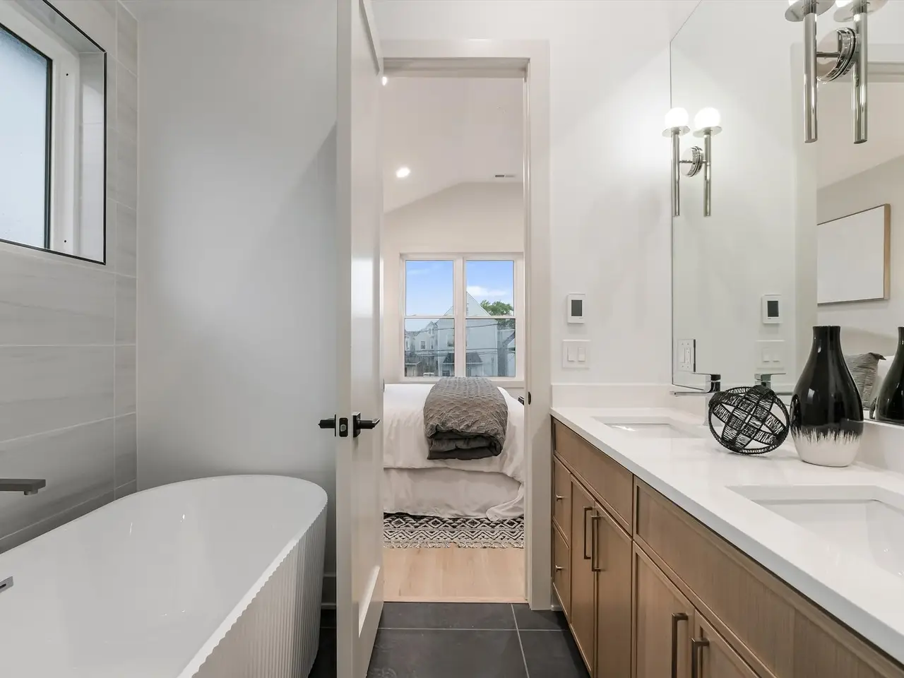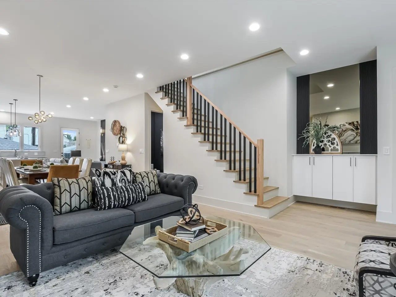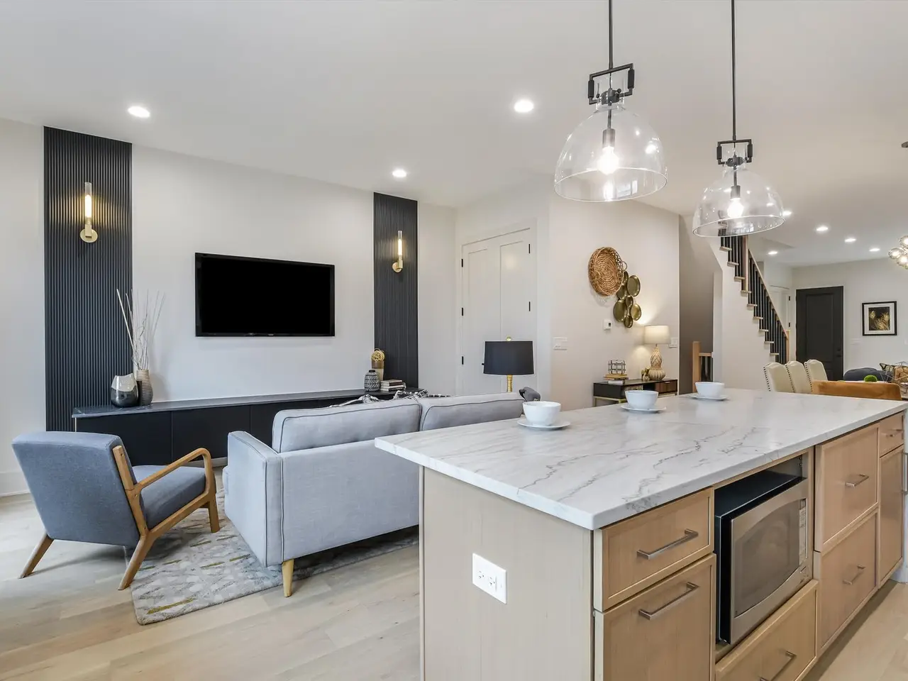 This beautifully reimagined home offers the perfect blend of high-end design, modern functionality, and timeless elegance. The residence boasts an expansive open-concept main level featuring multiple living areas, white oak hardwood flooring throughout, eight-foot solid core doors, and designer-grade finishes that elevate every corner. Some of the upgrades in this home include finished custom closets throughout, heated floors in the primary bathroom, natural quartzite countertops and full height backsplash, and multiple areas with custom built in features. Incredible natural light pours through oversized windows and a thoughtfully placed skylight, highlighting the home's exceptional craftsmanship and airy feel. The kitchen, thoughtfully appointed with Bosch appliances, custom cabinetry, and a large island perfect for entertaining. Upstairs, you'll find three spacious bedrooms and two luxurious bathrooms, including a stunning primary suite with vaulted ceilings, a spa-inspired bathroom featuring a freestanding soaking tub, double vanity, and a walk-in shower. The fully finished basement expands your living space with a large family room + Bar, additional bedroom, and full bathroom-ideal for guests or a home office setup. Dual-zone HVAC ensures year-round comfort throughout all three levels. Enjoy outdoor living with an oversized rear deck, green yard space, and a two-car garage for added convenience. Located just five blocks from the Logan Square Farmers Market, you're steps away from some of the best dining, shopping, and community vibes the neighborhood has to offer. Crafted by an experienced local developer, this is not your typical new construction-every detail has been carefully curated to create a truly special home.