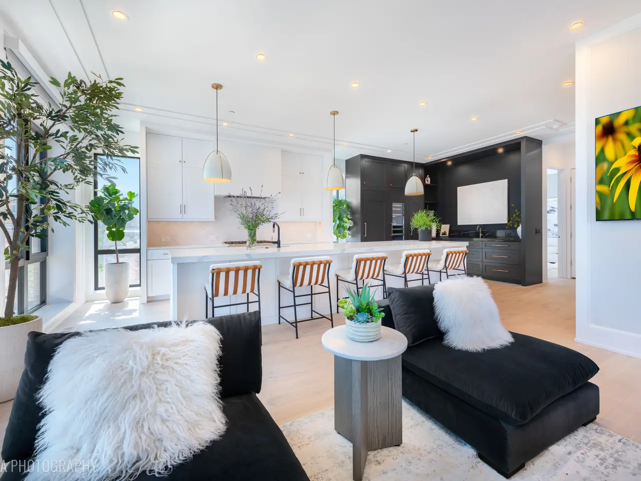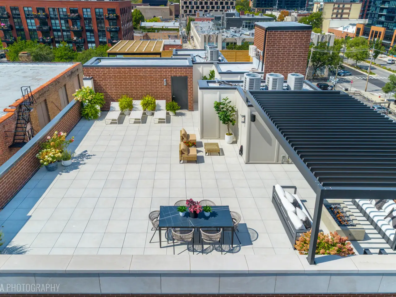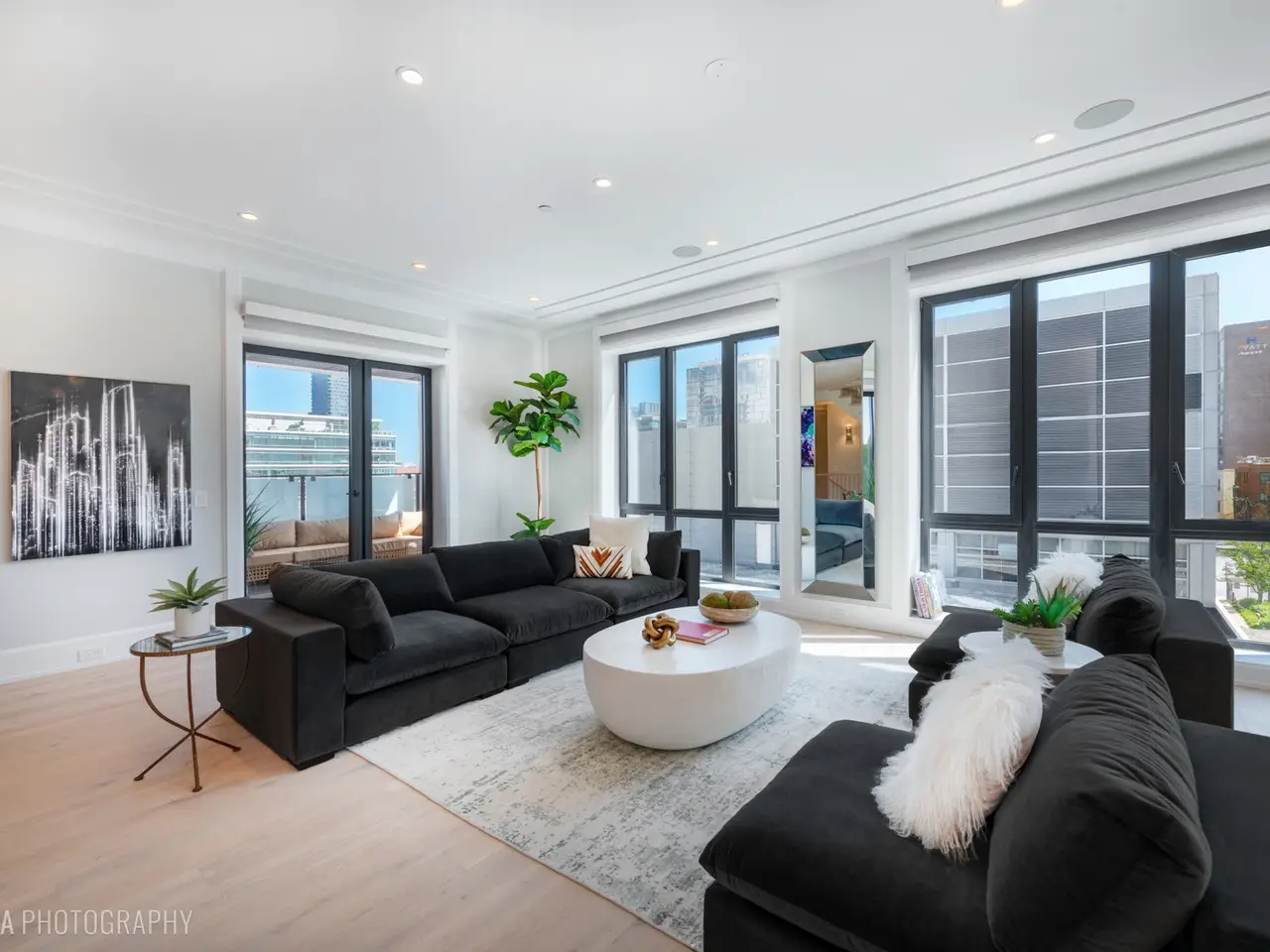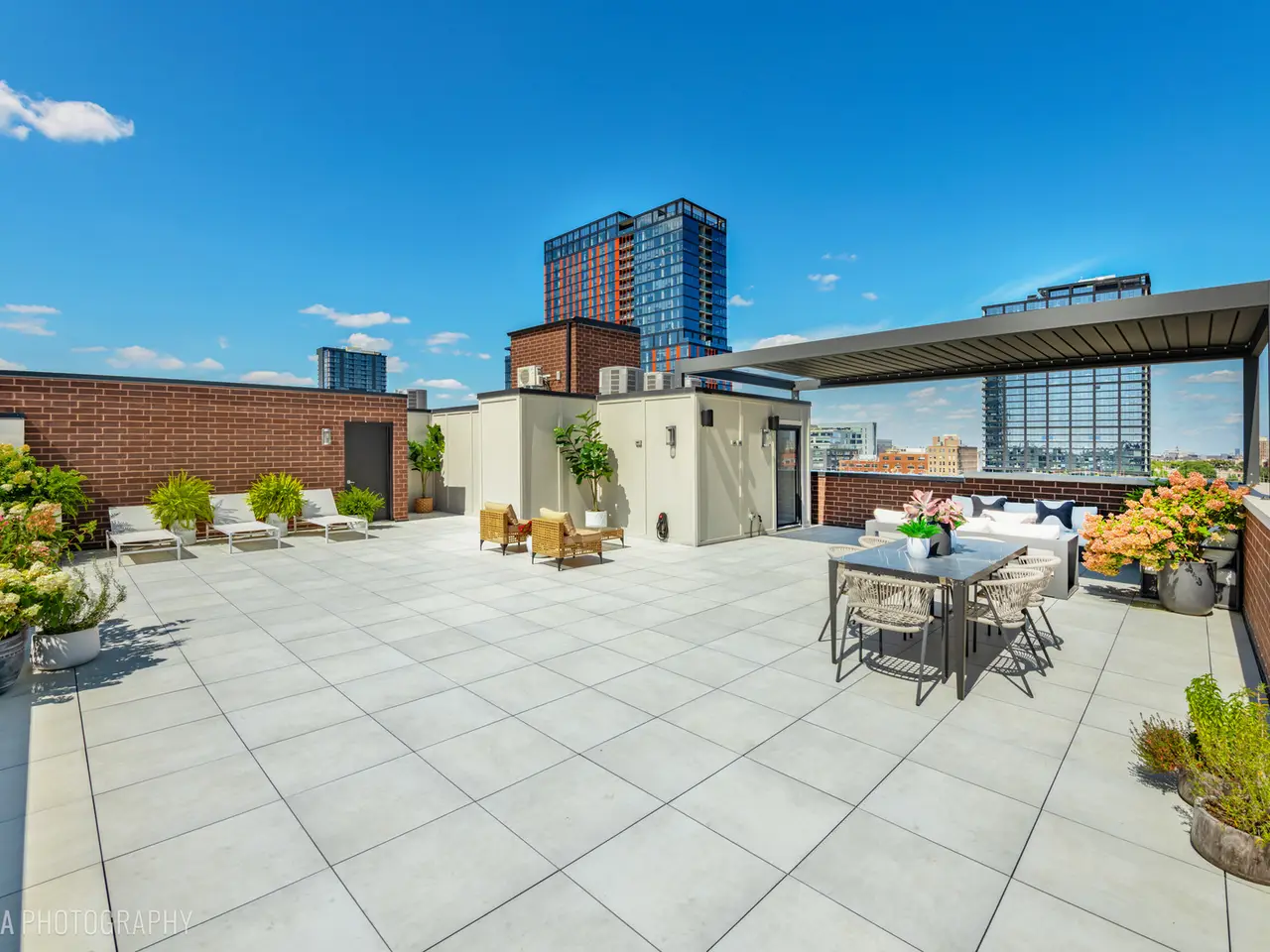 BEST VALUE PENTHOUSE WITH PRIVATE ROOFTOP IN THE WEST LOOP! LAST 2 UNITS REMAIN IN THIS DEVELOPMENT. Tucked away on a quiet side street in the heart of Chicago's vibrant West Loop, this stunning new-construction duplex penthouse offers an unparalleled blend of luxury, space, and privacy. Spanning two expansive levels with over 1700 sq ft of private rooftop deck, this 5-bedroom + den/office, 4-bathroom residence includes direct elevator access and an attached heated 2-car garage-a rare find in the city. Developed by the highly regarded PLD Homes, every inch of this home exudes quality craftsmanship and sophisticated design. The 35-foot-wide interior is flooded with natural light, showcasing a wide-open floor plan ideal for both everyday living and elevated entertaining. Main Living Level: Open-concept layout with floor-to-ceiling east-facing windows Expansive living room, separate dining area, and custom wet bar Designer chef's kitchen with panel-ready Thermador appliances, quartz countertops, and custom cabinetry Fifth bedroom or a family room + office/den a full bathroom and covered private terrace - all on the main floor. Second Level: Luxurious primary suite with walk-in closet, private terrace, and spa-caliber bathroom featuring a soaker tub, steam shower, and heated floors. Three additional bedrooms with custom closets and two full bathrooms. Enter this level directly through a private mudroom. Spacious laundry room and separate storage area. Rooftop Oasis: A private interior stairway leads to the top-floor flex space, ideal for a second office or lounge with wet bar-opening to your exclusive rooftop retreat. Enjoy panoramic 360 skyline views, unforgettable sunsets, and endless entertaining potential. Hot tub and shower will be installed on the roof. This boutique building offers the privacy and feel of a single-family home with the luxury conveniences of a high-rise. Located just steps from award-winning restaurants, premier shopping, trendy nightlife, parks, and top-rated schools-this is truly a rare gem in the West Loop.