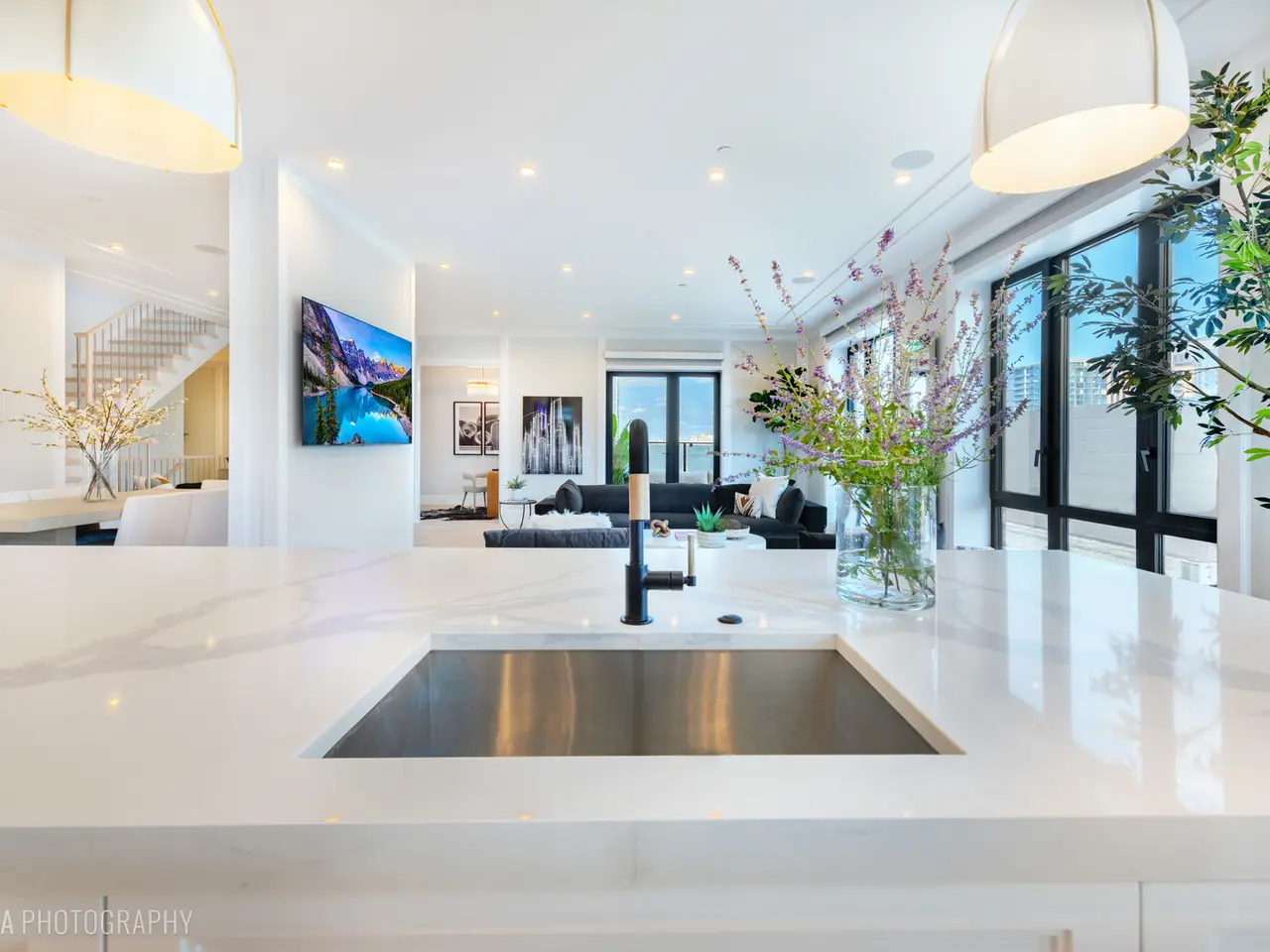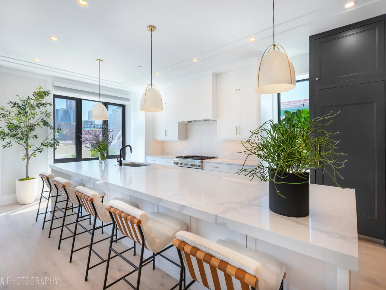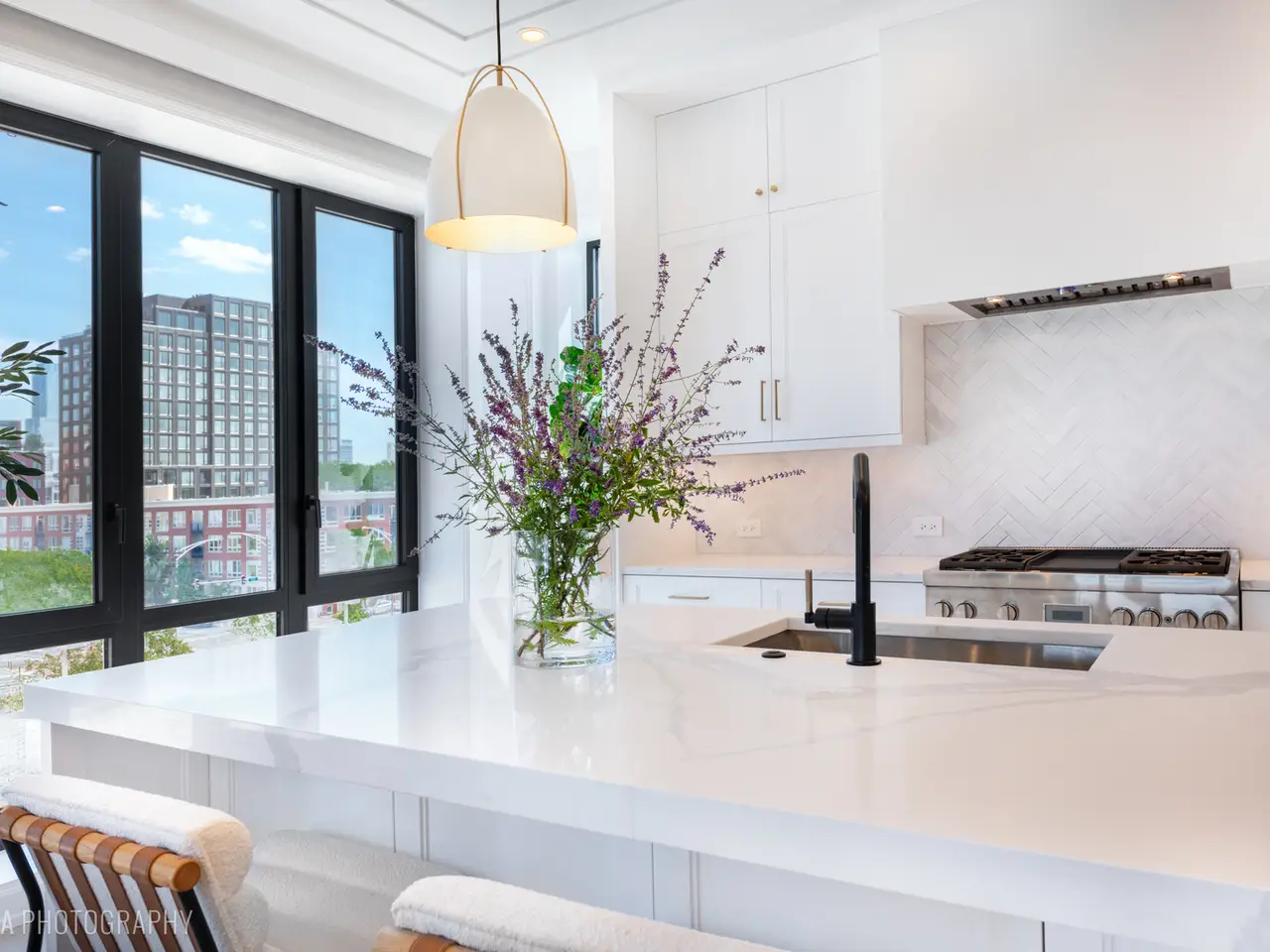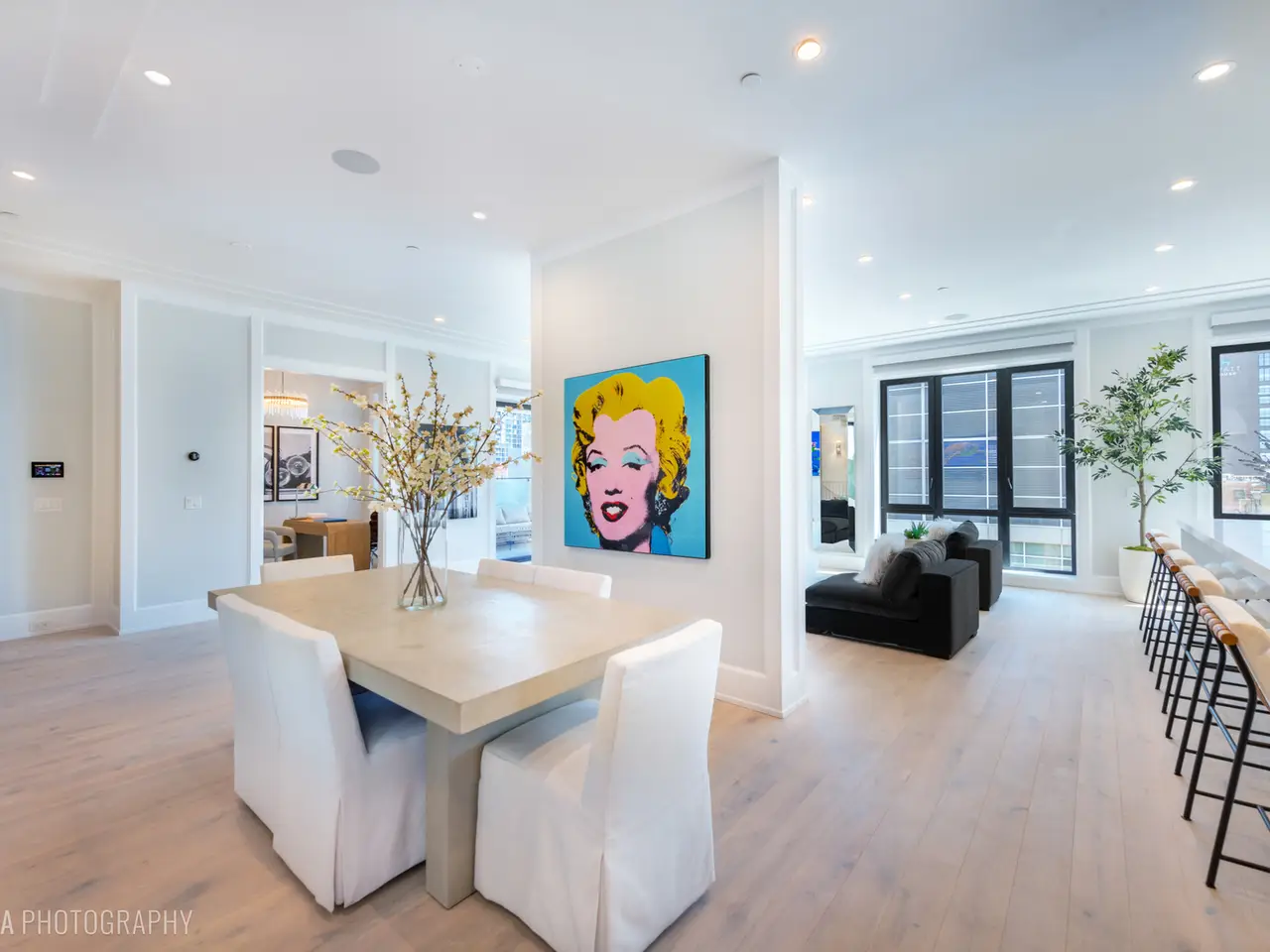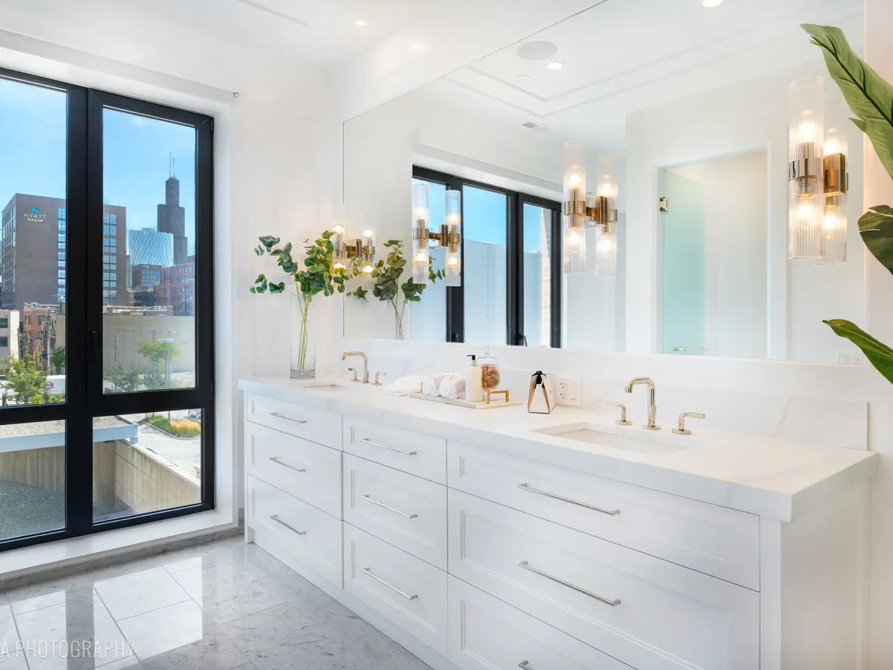 BEST VALUE PENTHOUSE WITH PRIVATE ROOFTOP IN THE WEST LOOP! LAST 2 UNITS REMAIN IN THIS DEVELOPMENT. Tucked away on a quiet side street in the heart of Chicago's vibrant West Loop, this stunning new-construction duplex penthouse offers an unparalleled blend of luxury, space, and privacy. Spanning two expansive levels with over 1700 sq ft of private rooftop deck, this 5-bedroom + den/office, 4-bathroom residence includes direct elevator access and an attached heated 2-car garage-a rare find in the city. Developed by the highly regarded PLD Homes, every inch of this home exudes quality craftsmanship and sophisticated design. The 35-foot-wide interior is flooded with natural light, showcasing a wide-open floor plan ideal for both everyday living and elevated entertaining. Main Living Level: Open-concept layout with floor-to-ceiling east-facing windows Expansive living room, separate dining area, and custom wet bar Designer chef's kitchen with panel-ready Thermador appliances, quartz countertops, and custom cabinetry Fifth bedroom or a family room + office/den a full bathroom and covered private terrace - all on the main floor. Second Level: Luxurious primary suite with walk-in closet, private terrace, and spa-caliber bathroom featuring a soaker tub, steam shower, and heated floors. Three additional bedrooms with custom closets and two full bathrooms. Enter this level directly through a private mudroom. Spacious laundry room and separate storage area. Rooftop Oasis: A private interior stairway leads to the top-floor flex space, ideal for a second office or lounge with wet bar-opening to your exclusive rooftop retreat. Enjoy panoramic 360 skyline views, unforgettable sunsets, and endless entertaining potential. Hot tub and shower will be installed on the roof. This boutique building offers the privacy and feel of a single-family home with the luxury conveniences of a high-rise. Located just steps from award-winning restaurants, premier shopping, trendy nightlife, parks, and top-rated schools-this is truly a rare gem in the West Loop.