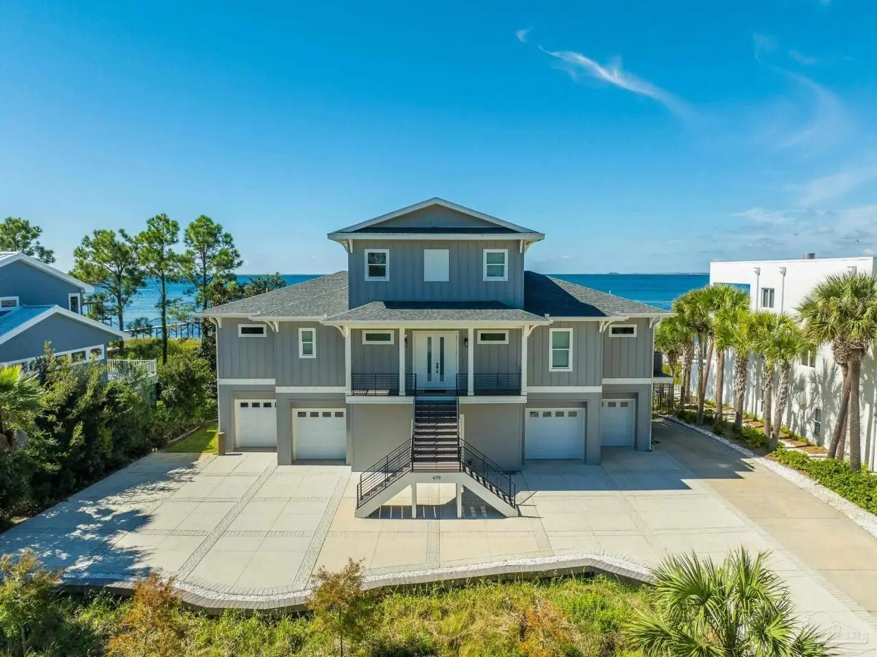 Welcome to this stunning waterfront pool home in the Deer Point subdivision of Gulf Breeze. Offering 90 feet of pristine waterfront with your own private beach, this property is a true coastal retreat.Watch the Blue Angels from your own backyard! Perfect for boating and water enthusiasts, the flow-through pier features a brand-new(2023) 12,000 lb boat lift and a jet ski lift, making it easy to enjoy life on the water. The 4 car garage offers plenty of room for storage.The home itself is designed for both comfort and style, with 4 bedrooms, 2 full bathrooms, and 2 half baths. Every room in the home offers breathtaking water views, creating a serene backdrop for daily living. An elevator provides convenient access to all levels, while the oversized 4-car garage and additional RV/boat parking with reinforced concrete ensure ample space for all your vehicles and toys.Step outside and take in the resort-style amenities. The saltwater pool, newly added in 2022, is perfect for cooling off on warm Florida days. Expansive outdoor living spaces include a spacious upper deck with panoramic views, and outdoor but in grill, as well as a beautifully designed downstairs living area complete with hot tub and outdoor televisions-ideal for entertaining or simply relaxing in your own private oasis.Inside, an open and airy floor plan maximizes natural light and water views. Whether you're gathering in the kitchen with its gas cooktop and double oven, and granite counters or relaxing in the living room with it's gas fireplace, or enjoying your morning coffee on the deck, this home was built to take full advantage of its spectacular location.With its combination of luxury, functionality, and endless outdoor recreation, this Gulf Breeze waterfront property offers the ultimate lifestyle on the water. All Gulf Breeze Schools! Bring your boat, your jet ski, and your sense of adventure-paradise awaits!