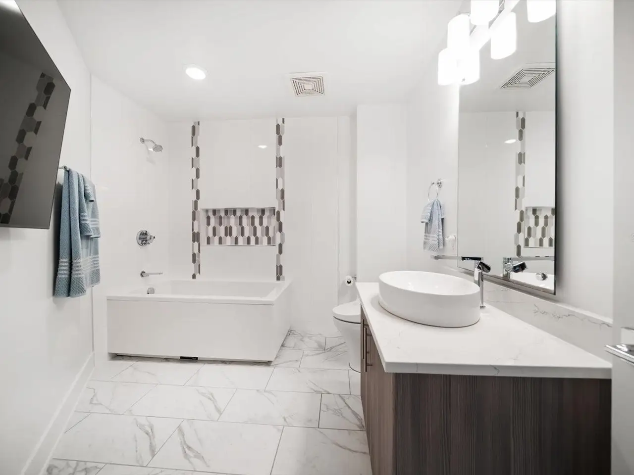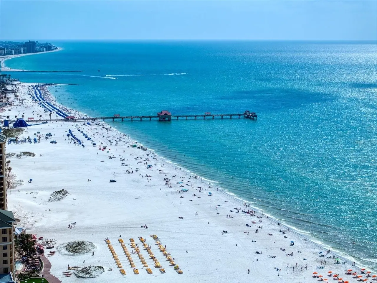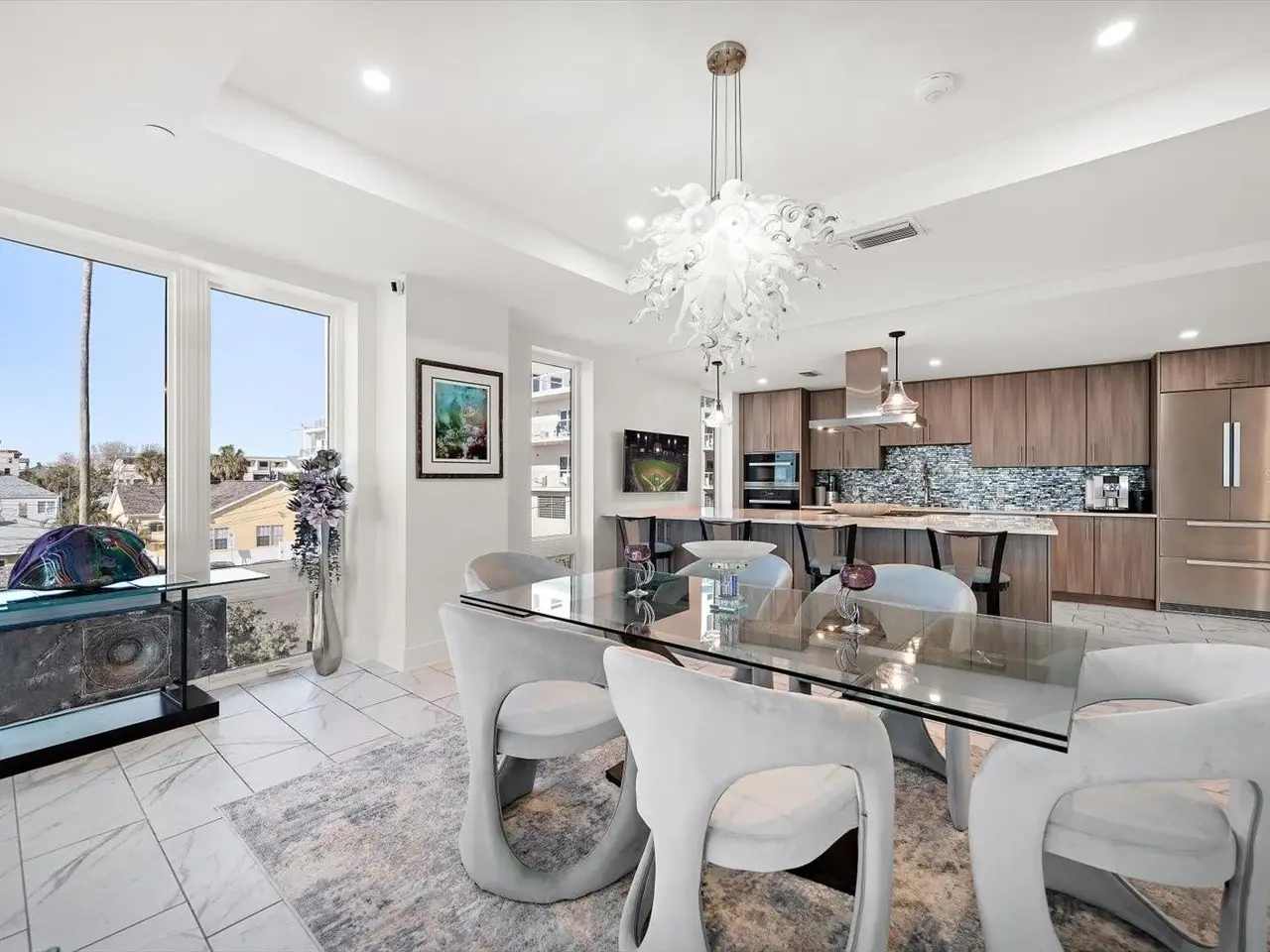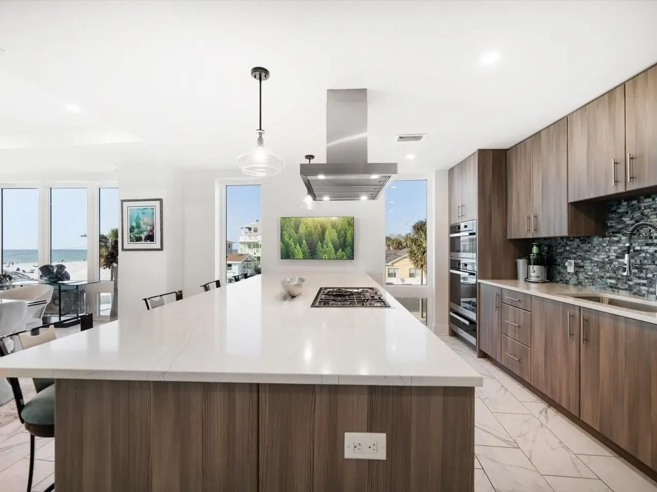 Experience the perfect fusion of luxury, coastal serenity and area vibrancy at Pura Vida Residences. Built in 2020, this exclusive community of just 22 private residences stands as one of the most recent additions to the tranquil, North end of award-winning Clearwater Beach yet is conveniently close to boutique shops, marine adventures, and a diverse array of dining options, from fine dining for special occasions to laid-back beachfront eateries…this is coastal living at its finest. Offering the largest floor plan in the building with 3,111sf, 4 bedrooms, 3.5 bathrooms, 10’ ceilings plus open concept living space, unit 303 is an exquisite and spacious NW corner residence offering comfort, style and refined living. Direct West facing floor-to-ceiling impact windows, sliders, and glass paneled balconies allow an abundance of natural light and seamlessly blend beach and Gulf views from the entire kitchen, living and dining areas, offering a front row seat to possibly some of the most spectacular sunsets you will ever see. Secure, direct elevator access opens to a dedicated foyer, where double doors lead you into this elegant coastal retreat. Art enthusiasts will appreciate the expansive hallways, ideal for showcasing personal collections. Premium features include Miele appliances, a 5-burner gas stove, sleek European-style cabinetry, oversized kitchen island with quartz countertops, tile flooring throughout, designer finishes, custom closets, motorized cellular shades (primary suite) and whole-unit water filtration. Select furniture pieces available, and all 7 wall-mounted flat-screen TVs convey. Conveniently located, private, climate controlled, 8x8 (approx) storage unit. Secure, gated entry to the building, 2 assigned under-building parking spaces (pre-wired for an electric vehicle charging station) located close to the lobby access. Personal beach locker for easy access to fun in the sun at your doorstep. Building amenities include heated pool with flow resistance, spa, club room, fitness center, indoor bike storage, key fob and digital security for doors and elevators, building back-up generator and 24-7 video security. Pro-active and professionally managed Association. Pet friendly building (1 pet under 30lbs). One month minimum rental. Don’t miss this rare opportunity to claim your elegant slice of paradise on Clearwater Beach.