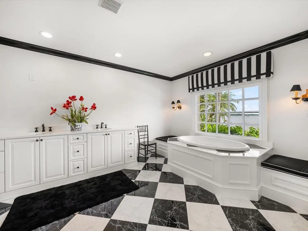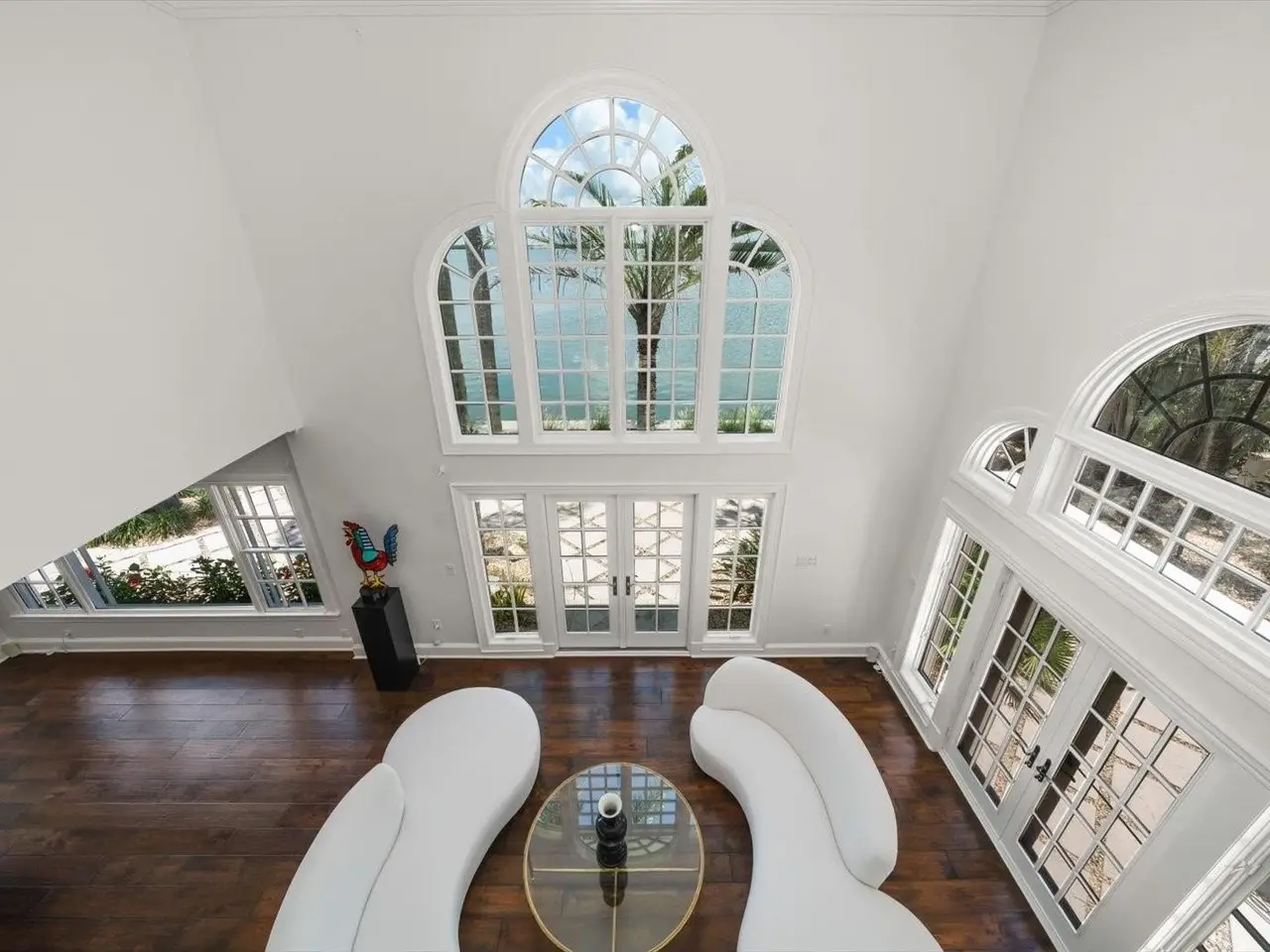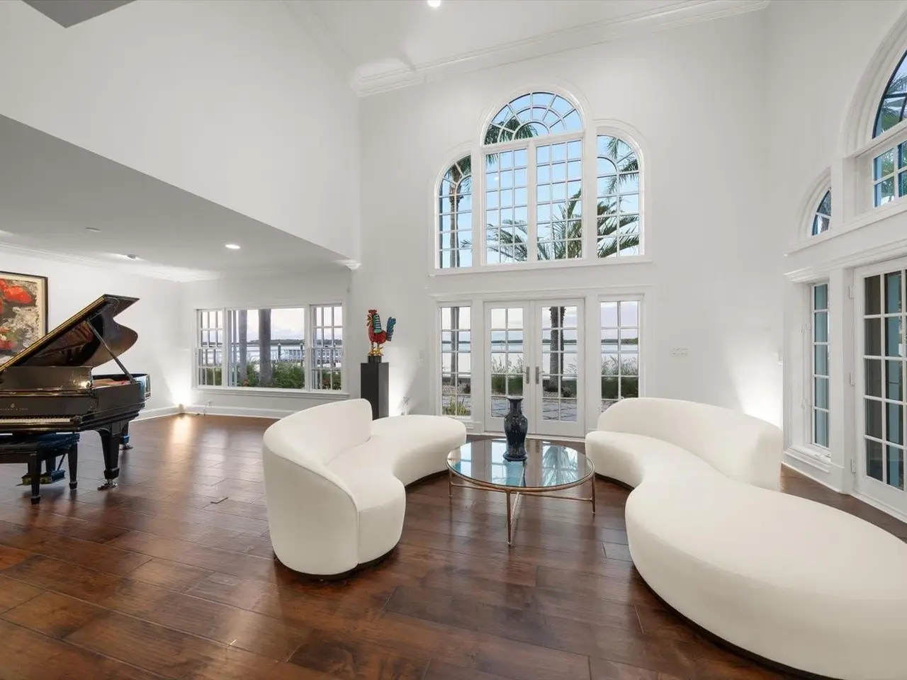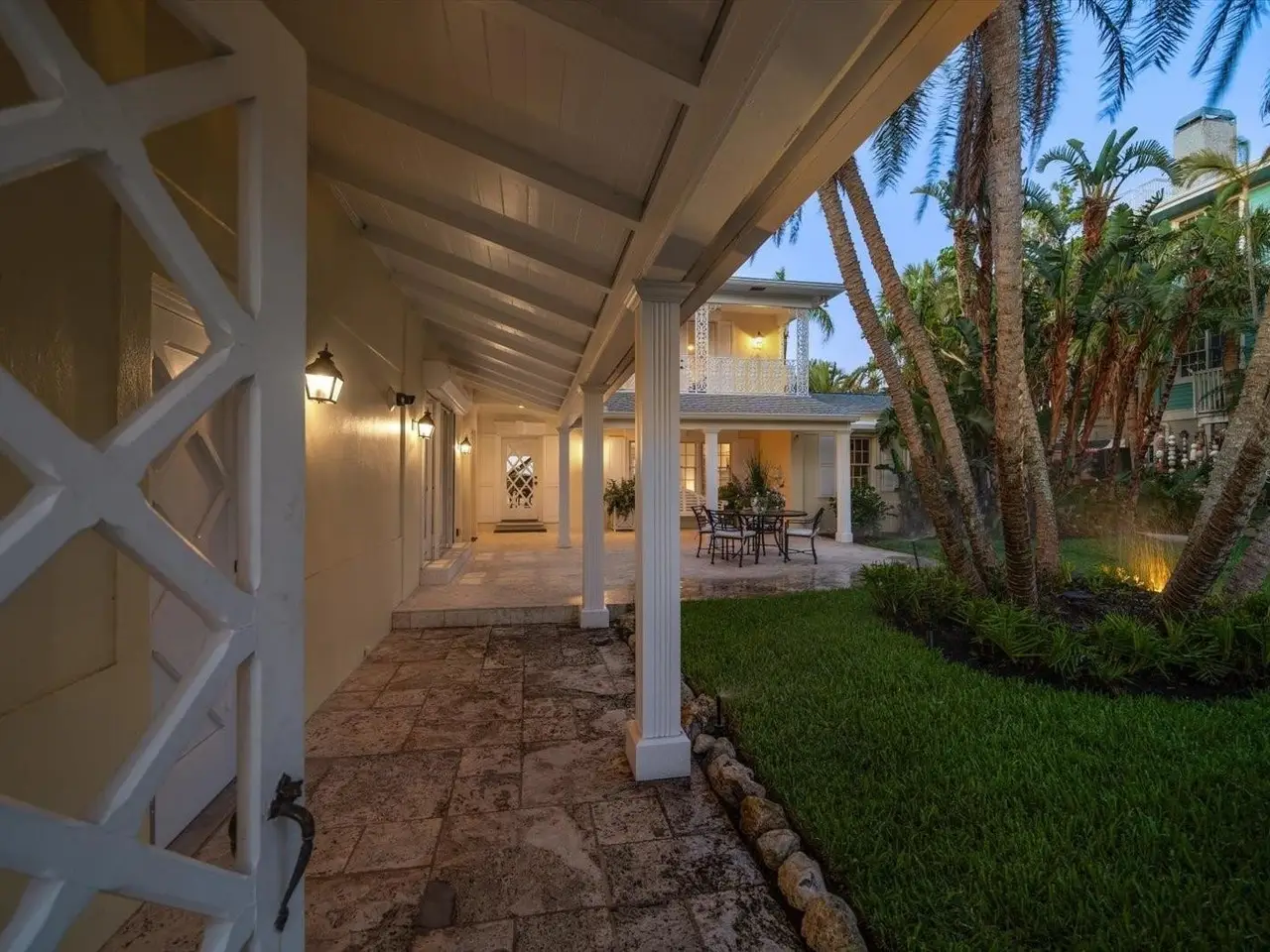 Near the tip of an island, among an enclave of luxury homes, this bayfront estate offers the rare combination of enduring architectural beauty and the easy rhythm of coastal living. Just a short walk brings you to deeded access to the white sands and gentle surf of the Gulf, while at home, the dock extends into calm waters where dolphins play and sunsets shimmer across the bay. Mornings begin with coffee on the dock, the sound of water lapping below and the flash of silver as fish break the surface. In the afternoon, a walk along the beach gives way to golden skies and the sun’s slow descent beyond the Gulf. Evenings invite a stroll to dinner at the nearby Carlouel beach and yacht club, where island living feels both intimate and elevated. Built in an era when grace, character, and quality were expected, this home has been thoughtfully restored to preserve its timeless soul while embracing the comfort of modern life. The result is a beautiful blend of casual sophistication and classic refinement—a home that feels equally suited for quiet reflection or grand entertaining. Gracious square footage offers space and privacy for family and guests alike. Entry is through a courtyard framed in limestone, leading into a grand living room with gleaming wood floors and expansive palladian windows that showcase breathtaking water views. It’s a room designed not just for living, but for gathering—an invitation to celebrate every moment with style and ease. The dining room shares the same gracious proportions, filled with light and views that make even everyday meals feel like an occasion. Every great home has a kitchen that serves as its heart, and this one does not disappoint. A chef’s showplace, it looks as if it were designed for a magazine spread, yet it’s warm and welcoming. The adjoining spaces encourage laughter and conversation, with a large bar for watching the chef at work, a comfortable breakfast nook, and a cozy gathering room anchored by a fireplace. The primary suite is located on the ground floor, where mornings begin with serene bayfront views and soft light filtering through palms. The ground floor also includes a private office and small library, creating quiet nooks for work or reflection—each with a connection to the water and the rhythm of island life. Upstairs, flexibility meets charm. Whether for family or guests, the space offers three generous bedrooms and a second family room with stunning water views—a perfect place for games, movies, or simply watching the bay change colors with the sky. Thoughtful details abound, from abundant storage to inviting alcoves that make every corner feel special. From its iconic Palm Beach inspired architecture to its graceful restoration, this bayfront home captures the art of living beautifully by the water. Elegant yet relaxed, private yet connected, it is a home where every day feels like a chapter in a timeless coastal story.