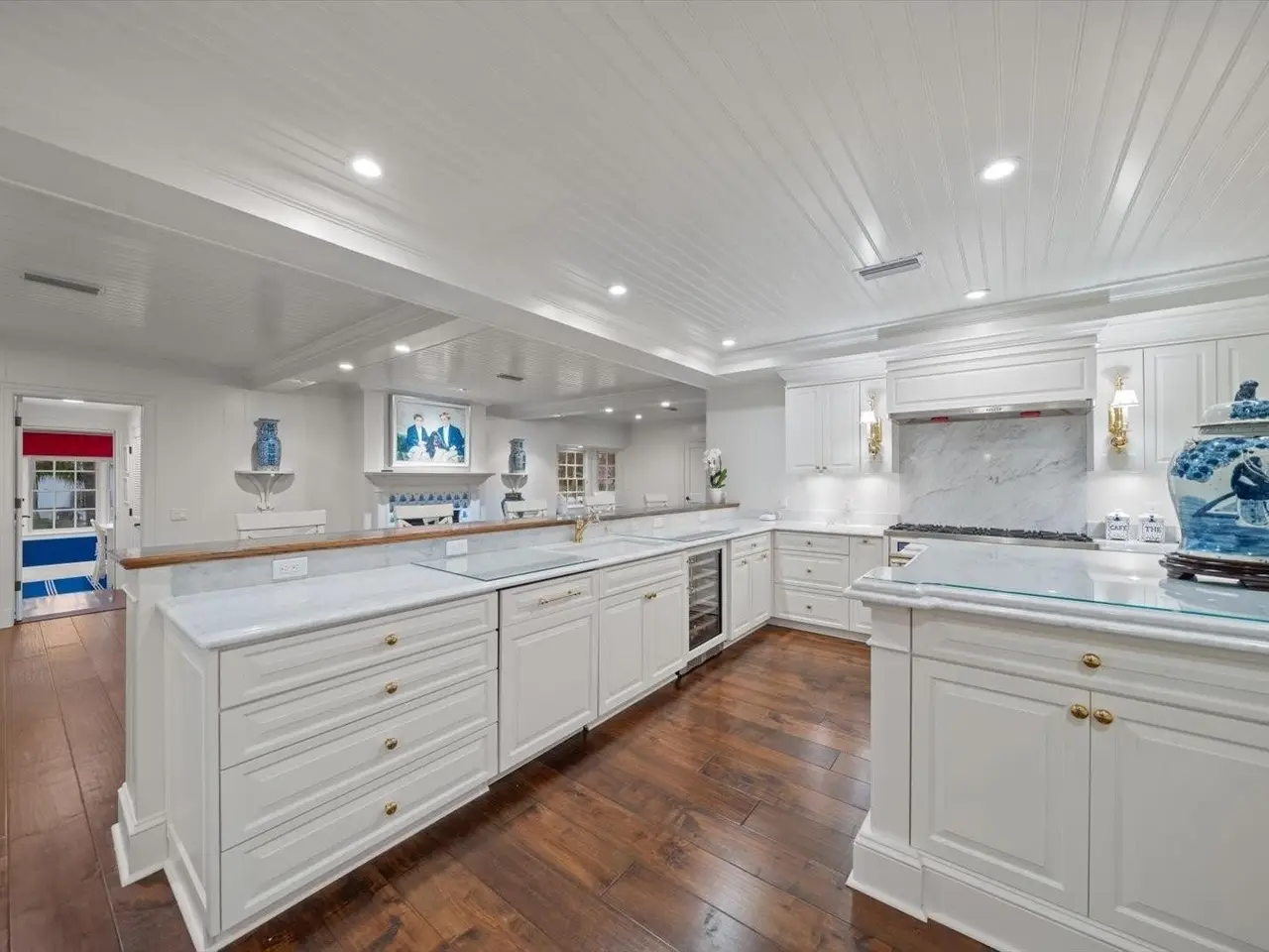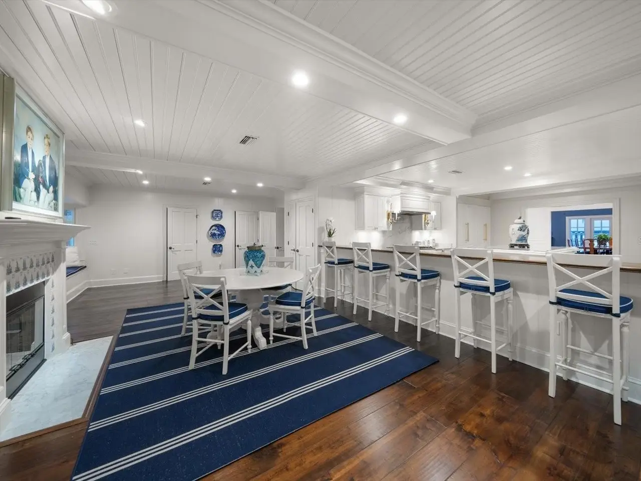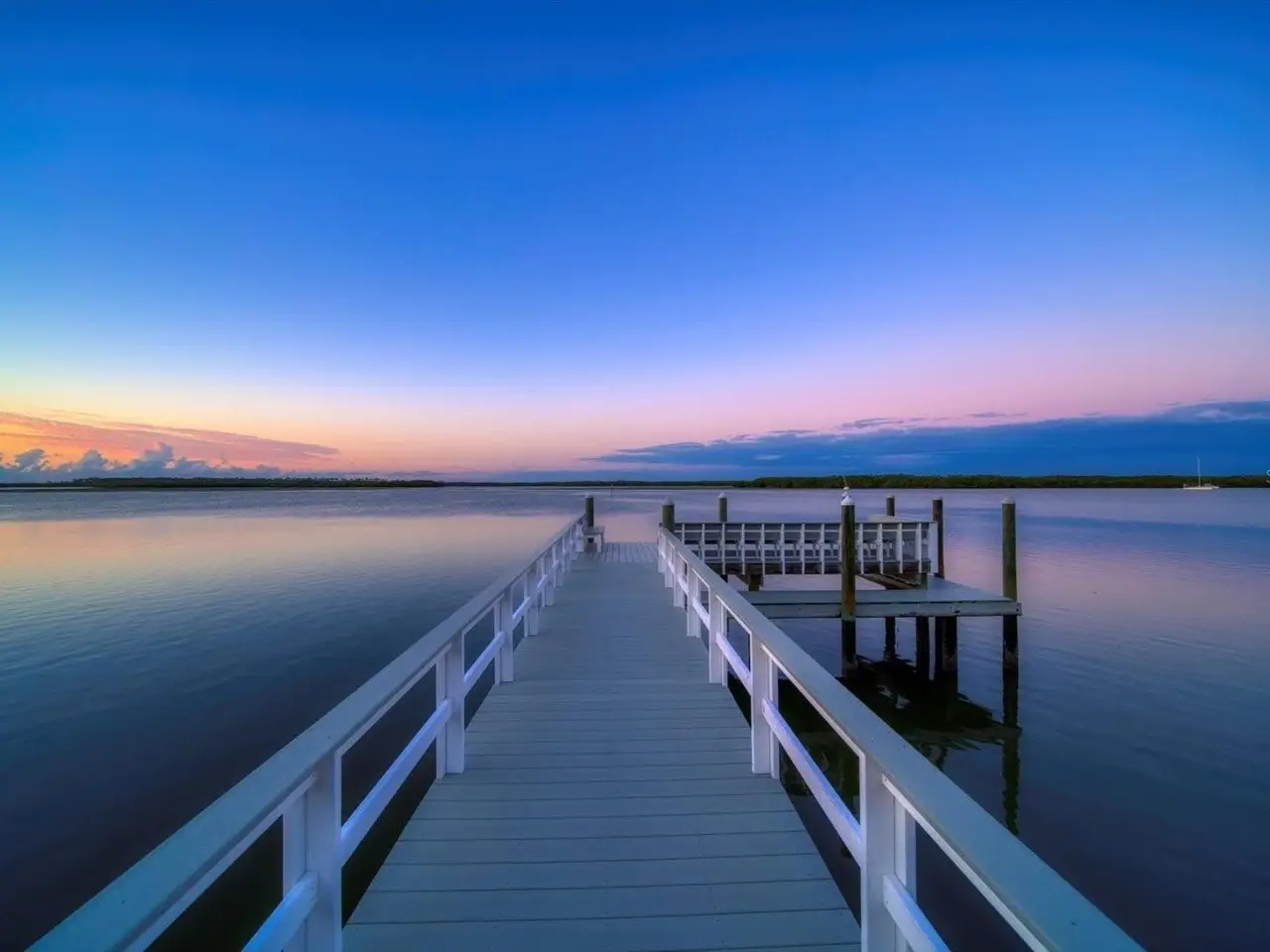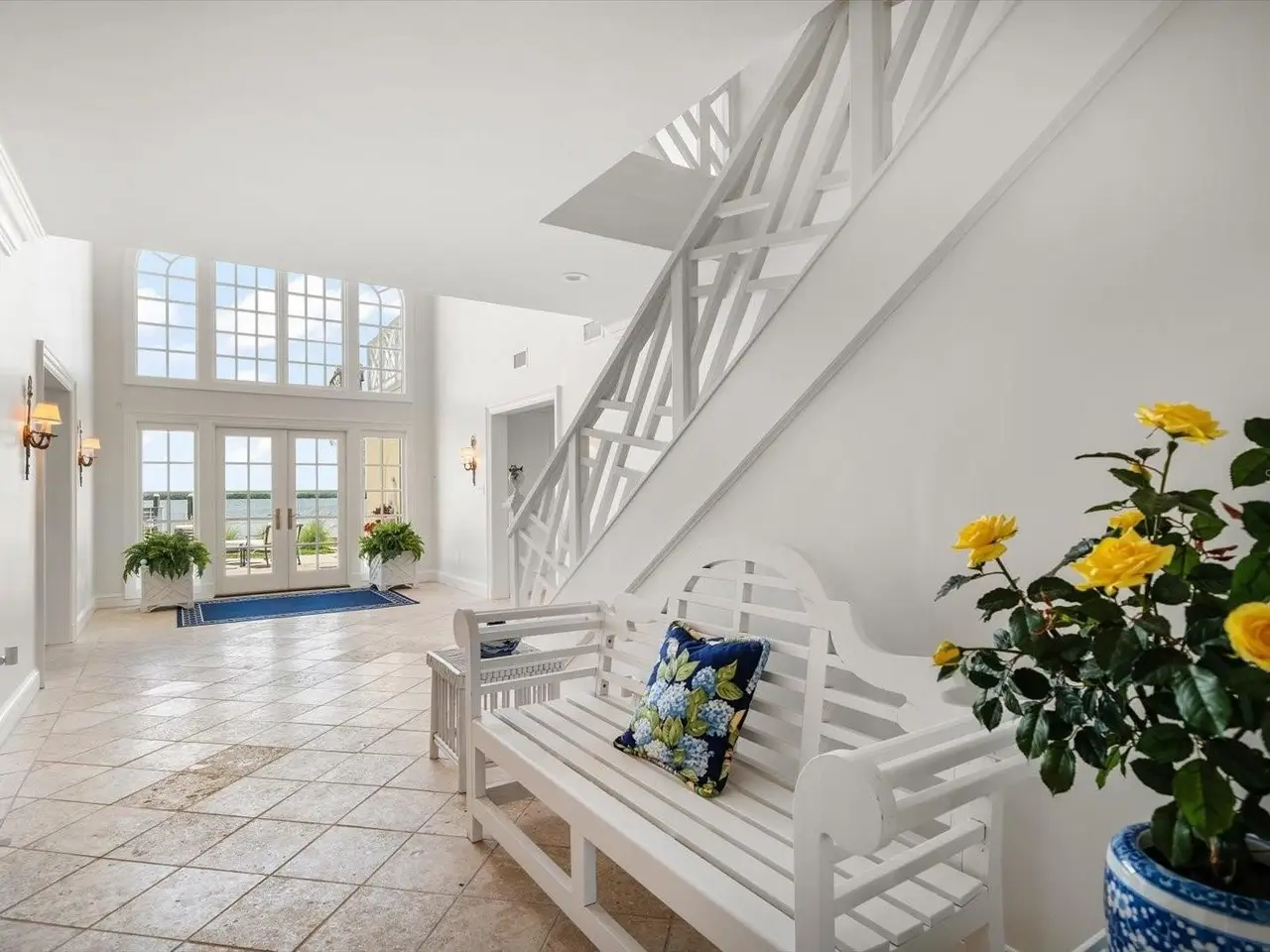 Near the tip of an island, among an enclave of luxury homes, this bayfront estate offers the rare combination of enduring architectural beauty and the easy rhythm of coastal living. Just a short walk brings you to deeded access to the white sands and gentle surf of the Gulf, while at home, the dock extends into calm waters where dolphins play and sunsets shimmer across the bay. Mornings begin with coffee on the dock, the sound of water lapping below and the flash of silver as fish break the surface. In the afternoon, a walk along the beach gives way to golden skies and the sun’s slow descent beyond the Gulf. Evenings invite a stroll to dinner at the nearby Carlouel beach and yacht club, where island living feels both intimate and elevated. Built in an era when grace, character, and quality were expected, this home has been thoughtfully restored to preserve its timeless soul while embracing the comfort of modern life. The result is a beautiful blend of casual sophistication and classic refinement—a home that feels equally suited for quiet reflection or grand entertaining. Gracious square footage offers space and privacy for family and guests alike. Entry is through a courtyard framed in limestone, leading into a grand living room with gleaming wood floors and expansive palladian windows that showcase breathtaking water views. It’s a room designed not just for living, but for gathering—an invitation to celebrate every moment with style and ease. The dining room shares the same gracious proportions, filled with light and views that make even everyday meals feel like an occasion. Every great home has a kitchen that serves as its heart, and this one does not disappoint. A chef’s showplace, it looks as if it were designed for a magazine spread, yet it’s warm and welcoming. The adjoining spaces encourage laughter and conversation, with a large bar for watching the chef at work, a comfortable breakfast nook, and a cozy gathering room anchored by a fireplace. The primary suite is located on the ground floor, where mornings begin with serene bayfront views and soft light filtering through palms. The ground floor also includes a private office and small library, creating quiet nooks for work or reflection—each with a connection to the water and the rhythm of island life. Upstairs, flexibility meets charm. Whether for family or guests, the space offers three generous bedrooms and a second family room with stunning water views—a perfect place for games, movies, or simply watching the bay change colors with the sky. Thoughtful details abound, from abundant storage to inviting alcoves that make every corner feel special. From its iconic Palm Beach inspired architecture to its graceful restoration, this bayfront home captures the art of living beautifully by the water. Elegant yet relaxed, private yet connected, it is a home where every day feels like a chapter in a timeless coastal story.
