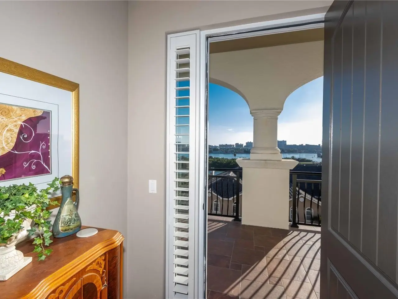 Welcome to an exceptional opportunity to own a penthouse-level, 12-foot ceiling luxury condominium at the prestigious Residences at Windward Passage. This stunning condo features beautiful hardwood floors, breathtaking water views from every window, and hurricane-rated sliders and windows complemented by plantation shutters and electric shades for effortless comfort and style. Full laundry room within unit as well. Offering three spacious bedrooms, each with its own en suite bathroom, plus a bonus media room and convenient half bath, this residence combines thoughtful design with elevated living. Enjoy secure entry, gated under-building parking with two assigned spaces, and a variety of resort-style amenities, including: Heated pool and community grills for outdoor entertaining. Private fishing dock. Expansive Club Room with a full kitchen, bar area, billiards table, and TVs. Immaculately maintained grounds with lush, updated landscaping. Located just minutes from world-famous Clearwater Beach, you’ll also have every island convenience right at your fingertips—walk just one block to Publix, the Clearwater Marine Aquarium, local marinas, UPS, sushi spots, and popular dining at Island Way Grill and Windward Grill. Experience the perfect blend of luxury, location, and lifestyle—own your slice of paradise today at 202 Windward Passage.