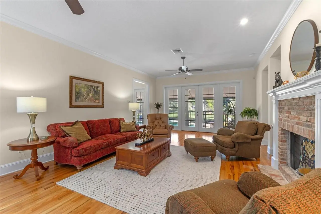 One or more photo(s) has been virtually staged. Nestled on over 10 acres, this extraordinary 4,404 sqft custom-built home combines luxury, comfort, and exceptional craftsmanship. Offering an unparalleled living experience, the residence boasts four very large bedrooms, three of which have full baths and walk-in closets. The fourth bedroom is very large and has a half bath and closet. An expansive 45' x 45' garage awaits with space for 6-8 vehicles, featuring 14' roller doors for easy access for boats or RVs, with an electrical RV hookup. The property's impressive layout extends to a stocked pond, perfect for outdoor recreation and tranquil views. Inside, the gourmet kitchen will delight culinary enthusiasts with its sleek Corian countertops and Alderwood cabinets with an attached breakfast nook which leads to the covered lanai. Throughout the home, the beautiful wood flooring and 10' ceilings create a sense of spaciousness and elegance. A cozy wood-burning fireplace offers the perfect ambiance for relaxing evenings in the living room. Designed for ultimate enjoyment, the backyard features a 16,000-gallon saltwater heated pool, an ideal oasis for entertaining or unwinding. This estate has been meticulously maintained, with a new roof, fresh paint, and newer AC and water heater units, ensuring peace of mind for years to come. This exceptional home blends modern sophistication with a tranquil, expansive setting, offering the perfect balance of luxury, comfort, and privacy. Welcome to your dream home!