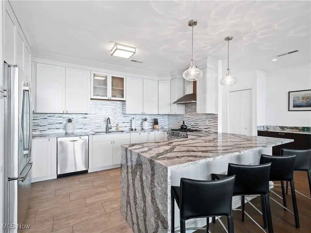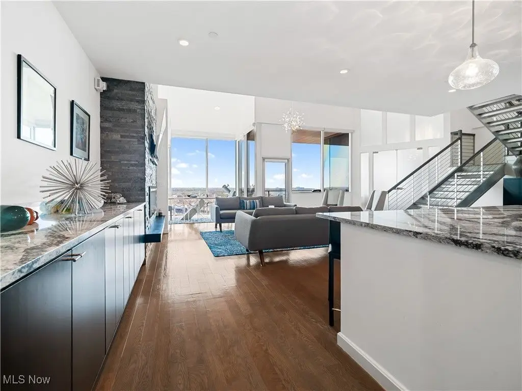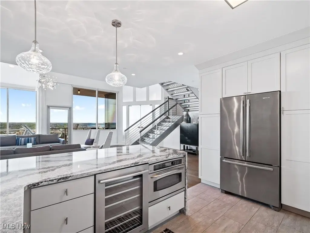 A remarkable penthouse in the coveted Pinnacle Condominiums, this is a masterpiece crafted for the most discerning buyer. Taken down to the studs, the entire home was impeccably renovated throughout and professionally designed (the only item that remained were the hardwood floors which were refinished). Boasting exquisite finishes across two levels, this light-filled residence features breathtaking views, soaring ceilings, floor-to-ceiling windows, fireplace (which didn't exist pre-renovation), two bedrooms, two and a half baths, and a balcony showcasing the loveliest sights in the City. The luxurious kitchen is a dream with its beautiful quartz countertops, white cabinetry, brilliant backsplash, gas range, and stainless Bosch, GE Profile, and JennAir appliances. Through its frosted glass doors, you'll enter the primary suite which was designed for ultimate rest and relaxation and offers premium views, plenty of closet space, and a sophisticated bath with double sinks and tiled walk-in shower. An elegant living room, spacious laundry room, glamorous half bath, and peaceful dining room - just perfect for entertaining - complete the first floor. Your private balcony provides THE VIEW of the lake, river, bridges, city, and sunset. Upstairs, via the impressive staircase, you'll find a guest bedroom and the perfect loft space to unwind. Attractive en suite bath has double sinks, tub, and walk-in shower. Two PRIME garage parking spaces come with this home. The sought-after Pinnacle building offers secure access, on-site concierge & security, state-of-the-art gym, dog run, and outdoor space with chairs, grills and a firepit. Dream homes are rare, and this iconic condominium represents the premium tier of renowned luxury.