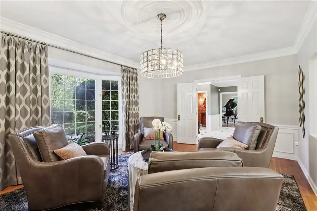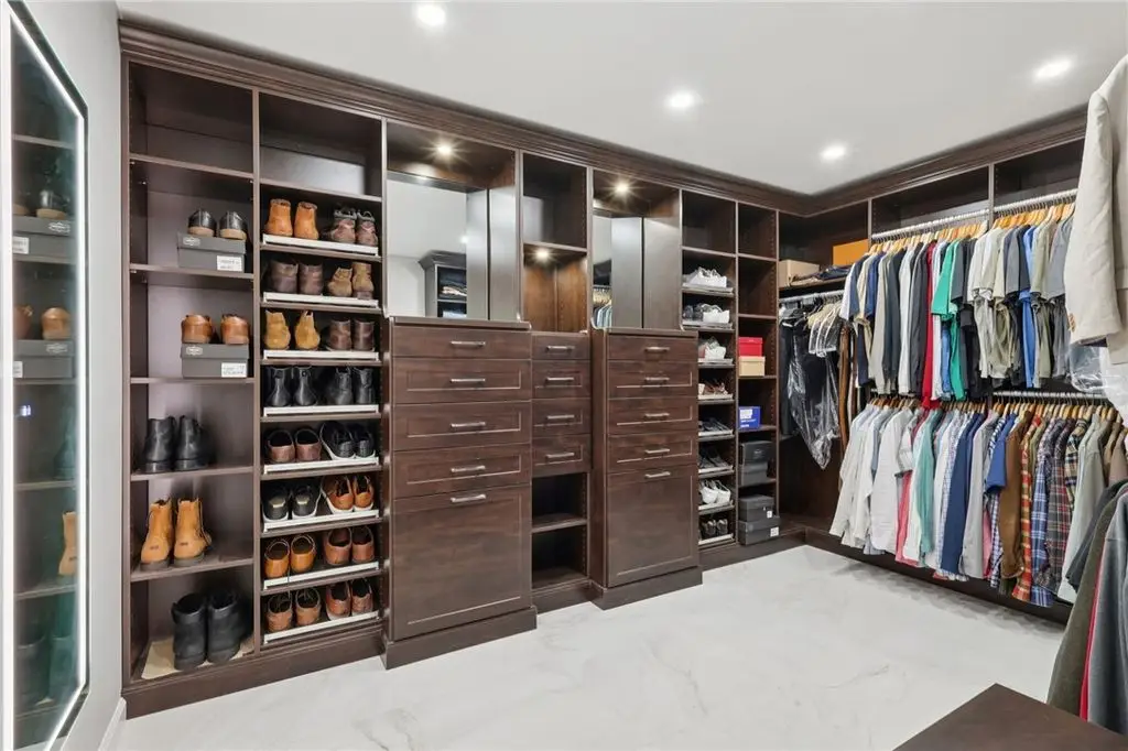 Luxury Living! Spectacular Estate on private road w/1.5acre professionally landscaped grounds. Grand foyer w/leaded glass door, grand staircase,& chandelier. Formal living & dining rooms w/exquisite details fireplace, bay window, hardwood flooring,& built-ins. Executive office w/wood-paneled walls, fireplace, custom cabinetry,& wet bar. Chef's dream kitchen w/Wolfe & Viking appliances, large island w/seating, Miele coffee bar, sliding glass doors to stunning outdoor retreat. Entertain in style w/rear patio w/full outdoor kitchen, woodfired pizza oven, inground pool, multiple seating areas,& tranquil pond w/waterfall. Luxurious owner's suite w/French doors, spa-bath w/soaking tub overlooking pool, oversized shower w/jets, double vanities,& walk-in closet. Updated bath, laundry, & balcony w/lounging area & spiral staircase to pool. Lower level is entertainer's dream w/wine room, full 2nd kitchen, wet bar, built-in seating, game area, media lounge, gym/5th bedroom, & full bath. WOW!