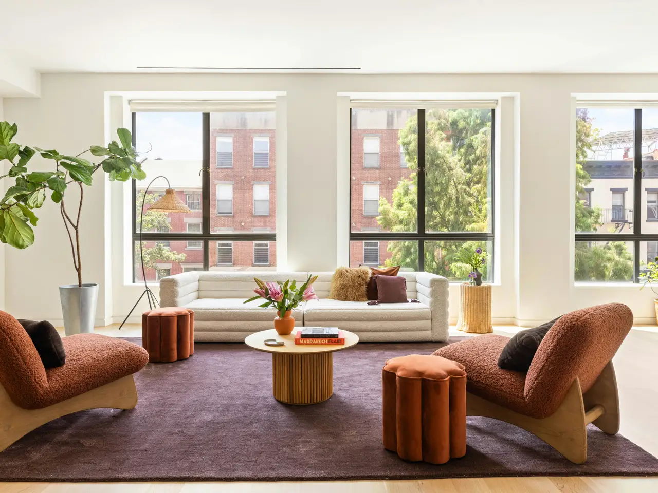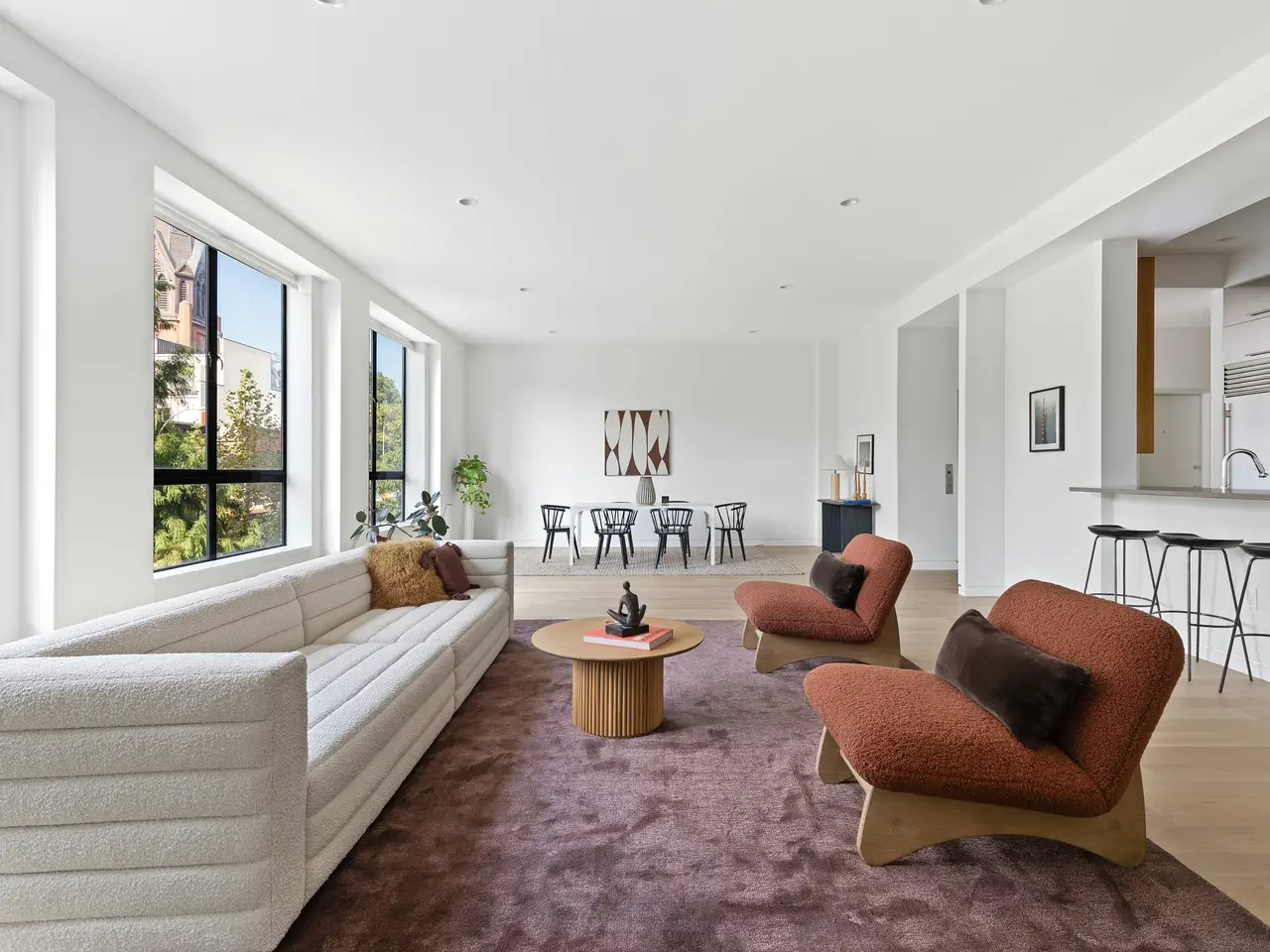 This rare, full-floor condo is an expansive three-bedroom, two-and-a-half-bathroom with modern design features that offers a unique combination of scale, light and private outdoor space in a boutique four-unit condominium. Located at the crossroads of Boerum Hill and Cobble Hill, this home is approximately 2,253 square feet and incorporates superb functionality with its thoughtful layout. Access is via a keyed elevator that opens directly onto a stunning 35-foot wide by 20-foot deep great room with 10-foot ceilings and a wall of three expansive south-facing windows that flood the space with natural light. The open-concept layout is ideal for both living and entertaining, anchored by a spacious living and dining area and a beautifully appointed kitchen outfitted with a Sub-Zero refrigerator, a Viking range, a Miele dishwasher, a GE Profile microwave, and a breakfast bar. Just off the kitchen, a versatile nearly 10-foot by 10-foot bonus space can serve as a home office area or play area. There is a separate large laundry room with a new Miele washer/dryer and room for storage. The unit has its own two-zone central heating and AC systems for comfort. Newly installed 6" white oak flooring runs throughout this beautiful home. The oversized primary bedroom suite features a custom walk-in closet and a serene ensuite bathroom constructed of natural stone, and includes a double-sink vanity, soaking tub, and separate shower. In addition to this primary bedroom suite, there are two more bedrooms that rival the primary in size, natural light and accessibility. These extra-large bedrooms can easily accommodate a king-sized bed along with other bedroom furniture with room to spare. The two bedrooms share a well-appointed full bathroom, and there is a stylish powder room just off the great room that services guests. All three bedrooms open onto an approximately 181 square-foot, north-facing private terrace with views of the garden below - perfect for relaxing, dining, or enjoying a quiet moment outside. Originally built in 2009, 17 Bergen Street is a boutique, elevator condominium with just four residences. Perfectly positioned in one of Brooklyn's most coveted neighborhoods, the building is surrounded by historic brownstones, acclaimed restaurants, artisan shops, and charming cafés. Trader Joe's is around the corner; Brooklyn Bridge Park is just a short distance away, and there is excellent subway access-the 2, 3, 4 and 5 lines are at nearby Borough Hall, and the F and G trains are just 1.5 blocks down Bergen Street-that puts all areas of Manhattan within easy reach. This is a co-exclusive with Compass. This is not an offering. The complete offering terms are in an offering plan available from the sponsor. File No. CD070629. The sponsor reserves the right to make changes in accordance with the terms of the plan.
