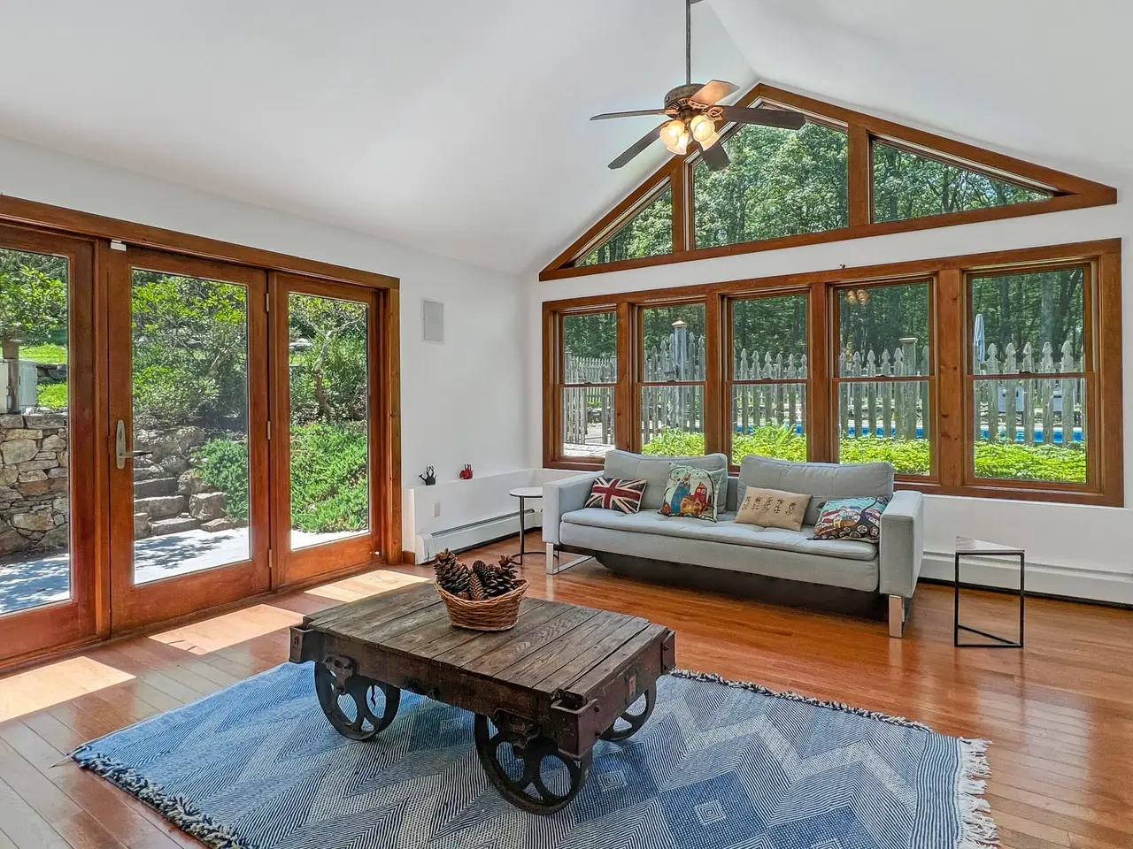 One-of-a-kind hilltop estate in the Haldane School District. Spacious, private, and picturesque getaway just minutes to Cold Spring Village. Proudly perched on almost 10-acres of Hudson Highlands woodlands, this well-appointed home is the idyllic setting for entertaining and country living. A magnificent chef's kitchen is surrounded by a formal dining room, billiard room/library, family room, sunken living room with huge gable windows, are all light-filled and elevating. There is also a bonus playroom and private office for the perfect work-from-home situation. Two separate powder rooms and laundry also on the first floor. A private second floor has a primary suite, three additional bedrooms, and hall bath. The basement is great for storage, a wine cellar, and was once a small gym. Relax overlooking the mountains of Fahnestock Park, Glynwood Farms, Stonecrop Gardens and the Equestrian Center from the magical screened front porch. Spend lazy afternoons beside the lovely inground pool just off the large back Trex deck. For sports enthusiasts, there is also a batting cage and golf green. The property has plenty of flex space, with several outbuildings for cars or perhaps studio space. Nature is all around, strolling the landscaped perennial gardens, listening to the daily visiting songbirds, taking in the fresh air and admiring the magical mountain laurels, or sitting quietly and hearing the many nighttime owl calls. Get active with plenty of nearby hiking and biking trails, swimming and paddleboarding - all just minutes from Cold Spring's restaurants, shops, entertainment, and schools. Easy access to Taconic, Route 84 and NYC trains. Equipped with a whole-house generator for backup electric, two adjoined water wells, high-capacity stainless steel fuel storage, and alarm system. Home has been freshly painted and waiting for you to move right in!