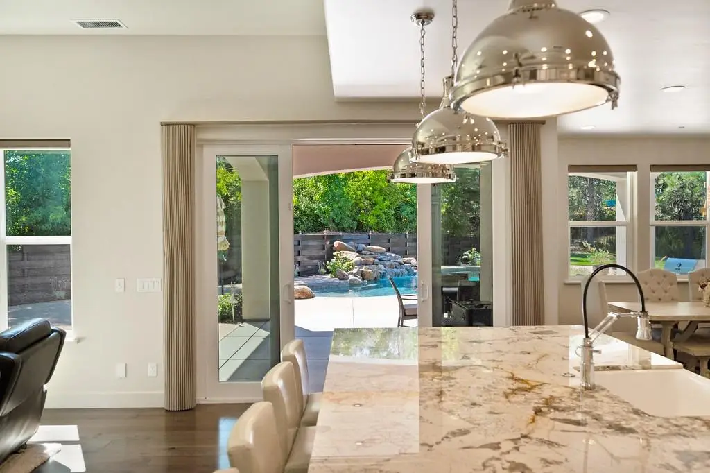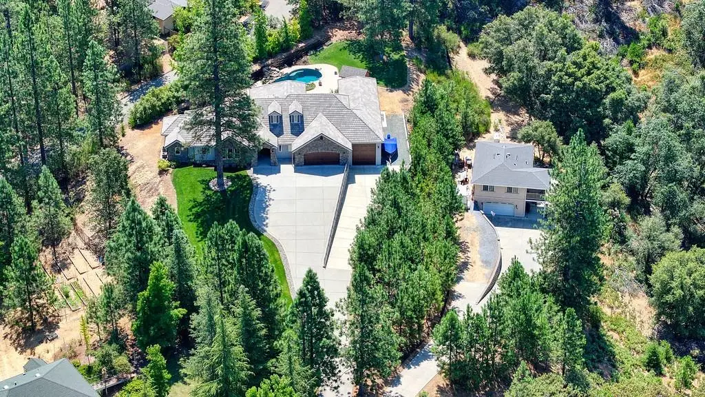 2 Homes with separate driveways! This exceptional property features a custom-built 2016 main home (approx. 2,784 sq. ft.) with 3 bedrooms + den + game room and 2.5 baths. Thoughtfully designed, it lives like a single-level with two bedrooms and a bath upstairs. The attached oversized garage and massive 16'x70' RV garage provides ample storage. Inside, hickory floors, a chef's kitchen with Thermador appliances, granite counters, and custom cabinetry set the stage for elegant living. The primary suite offers outdoor access, a large walk-in closet, dual sinks, and a luxurious shower. Outdoor amenities include a sparkling pool with a waterfall, a spa, a covered patio plumbed for an outdoor kitchen, and a gas fire pit. A whole-house generator ensures peace of mind. The second home (approx. 1,000 sq. ft., built in 2004) offers 2 beds, 2 baths, a 1,000 sq. ft. garage, and a separate driveway, PG&E meter, and septic-ideal for multi-generational living or rental income. Conveniently located 5 minutes from I-80, this private foothill retreat is a must-see! Schedule your private tour today!