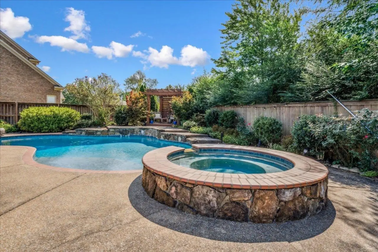 Experience the perfect blend of luxury & comfort in this stunning residential retreat! Featuring 5 spacious BR & 4 full BA, this home offers space for family & guests. The primary suite is a true sanctuary, complete w/a lavish bathroom & boasts a fireplace, soaker tub, walk-in shower, & two walk-in closets. The gourmet kitchen is designed for entertaining, w/double ovens, gas cooking, breakfast bar, & breakfast room ideal for gatherings & daily living. The outdoor oasis is truly exceptional, featuring a sparkling gunite pool w/integrated hot tub, zen garden, outdoor kitchen & a cozy fireplace?perfect for hosting football games, parties, or simply relaxing. Originally built w/5-car parking, the detached garage has been converted into a Speak Easy, providing even more space for entertaining. Located in highly sought after Collierville School district, this home combines location & luxury with so many amenities. Ask for the list of updates & features. Don't miss your chance for a tour.