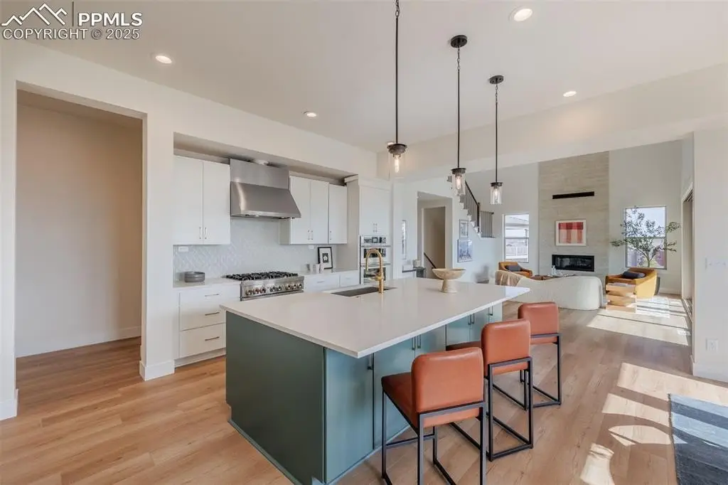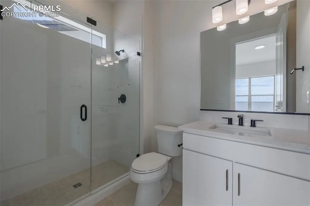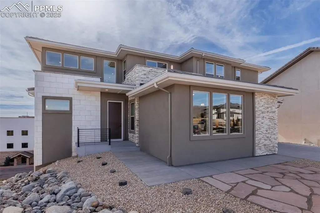 This beautiful, new, two-story home is located in the highly-sought after gated community of Kissing Camels Estates! The floorplan's spacious foyer opens onto the open-concept two-story great room and dining room, with desirable access to the expansive covered patio through the 16'x8' sliding/stacking glass doors. The well-appointed kitchen with JennAir stainless steel appliances offers a sizable, casual dining area, an oversized center island with a breakfast bar, plenty of counter and cabinet space, and a walk-in pantry. Enhance your entertaining with the use of the butler's pantry. Main level also includes a sizable office off the foyer, a first-floor bedroom suite with a walk-in closet and private bath, powder room, and convenient everyday entry from the garage. Highlighting the marvelous upper level is the primary bedroom suite with two king-sized walk-in closets and charming primary bath with dual vanities, large soaking tub, luxe shower with seat, and private water closet. The upper level also offers a generous loft, secondary bedrooms featuring walk-in closets and attached baths with a separate vanity area, and a centrally located laundry room. Amazing additional decks off the loft and primary bedroom! Don't miss the large family room, 1/2 bath, storage room, and bedroom space with attached bath and walk-in closet in the finished basement with 10-foot ceilings and a walk-out to yet another covered deck! HOA dues include manned security, snow removal on private streets & trash removal. Walking distance to the Garden of the Gods Resort and Kissing Camels Golf Club, which offers numerous amenities including spa, gym, swimming pools, hot tubs, pickleball & tennis courts, and fine dining, with club membership. Plentiful hiking & biking trails close by. Excellent location only minutes from downtown, Manitou Springs, & Kissing Camels Golf Club. Don't miss the last new home available and the lifestyle offered in the exclusive gated community of Kissing Camels!