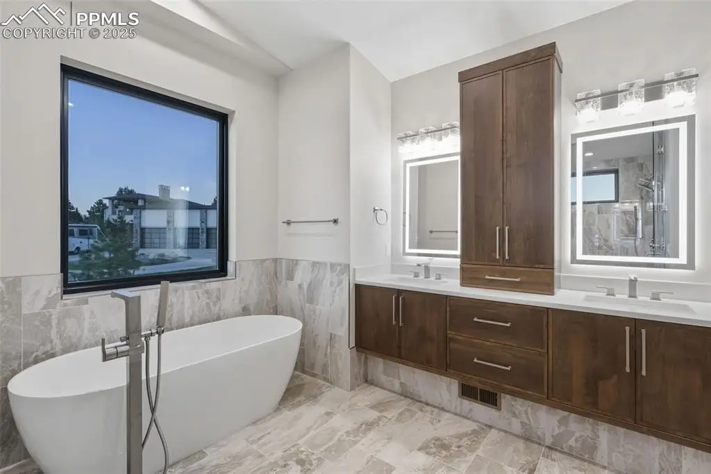 You cannot get a better view, MASSIVE Pikes Peak, Air Force Academy & Front Range Vistas await * Introducing an architectural masterpiece that blends striking Mountain Modern design & state of the art interior finishes * From the moment you drive up, this spectacular residence will not disappoint, curb appeal is a "10" * This luxury residence will captivate your senses & check all boxes * Featuring 4 spacious bedrooms, 4 luxurious baths & sleek oversized 3-car garage with custom, modern doors, perfectly positioned on a gently sloping lot to maximize privacy & sought after Rocky Mountain Views * With bold rooflines, soaring ceilings, expansive walls of glass, every space is flooded with natural light, designed to frame the massive views * The heart of the home is a chef’s dream kitchen featuring high-end "Cafe" appliances, custom cabinetry, oversized center island & the solid surface tops are gorgeous, ideal for both daily living & expert entertaining * Open-concept layout flows seamlessly into the great room featuring a modern gas fireplace with full wall tile accenting, custom folding slider doors invite you to a covered, outdoor living area, creating the perfect indoor-outdoor connection for enjoying Colorado’s four seasons, sunsets & majestic mountains * The primary suite is a true retreat, complete with a spa-inspired bath, oversized walk-in closet & private deck access. 2nd main level bedroom & separate office are a bonus * The lower level offers 10' ceiling heights, flexible living with 2 additional bedrooms including ensuite baths, family room, wet bar & billiard / media spaces with walk-out access to a private patio, yes with huge views * Multiple Decks & Patios * From refined materials to meticulous craftsmanship, every detail has been thoughtfully curated for luxury, comfort and stlish impact * One-of-a-kind modern sanctuary with privacy & views in every direction * Home is BRAND NEW and ready for immediate occupancy, act now - this home is a stunner, WOW!