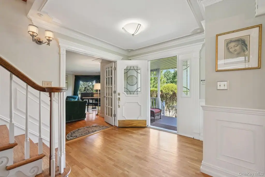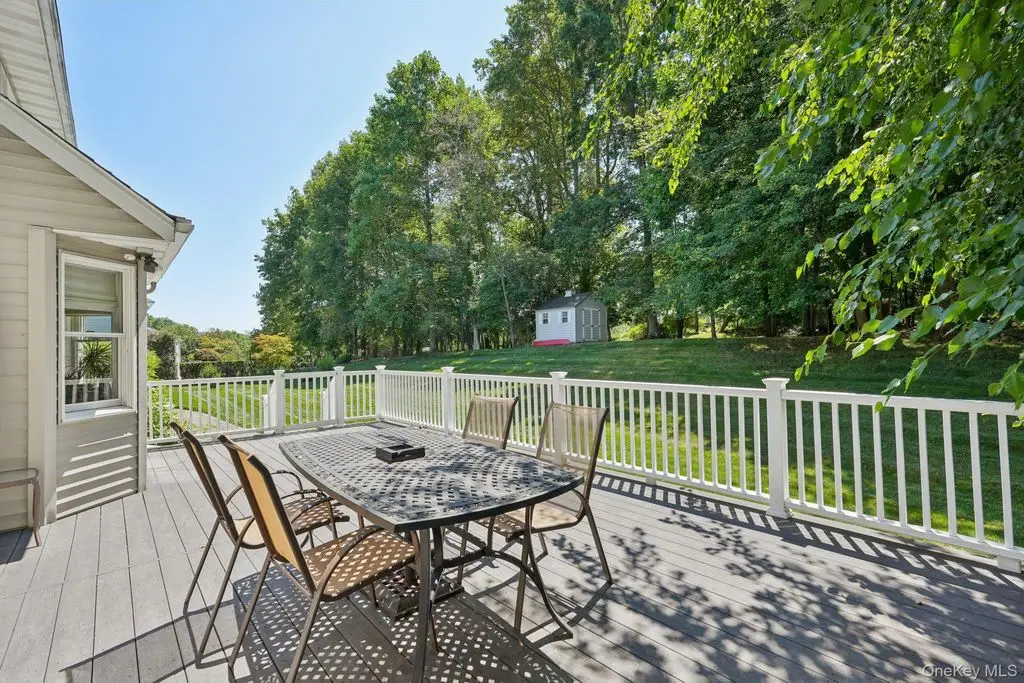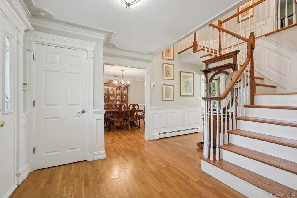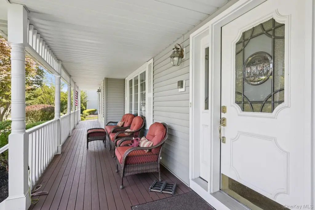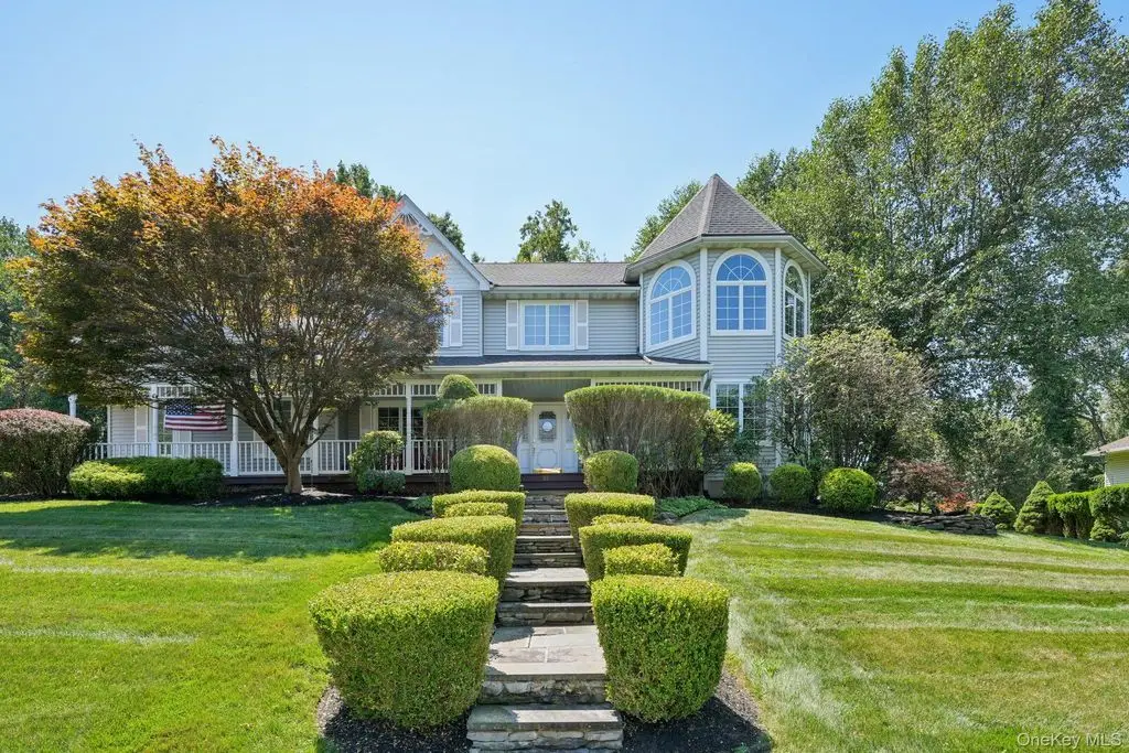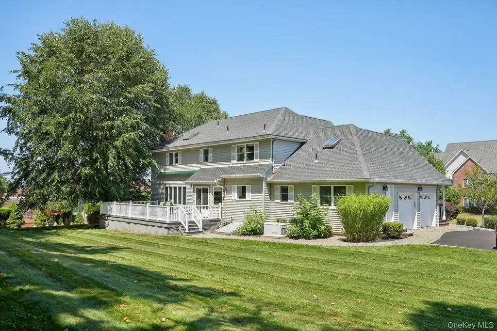 Don't miss the chance to own this exceptional home in one of Clarkstown's most coveted neighborhoods! Step into timeless elegance in the highly sought-after Waters Edge community with this classic center-hall colonial, perfectly set on a beautifully landscaped, picturesque lot. Built in 1990 and lovingly maintained ever since, this residence blends space, style, and comfort in every detail. Offering 2,928 square feet of thoughtfully designed living space, this home is ideal for both relaxed everyday living and joyful entertaining. The inviting lemonade porch is the perfect spot for peaceful afternoons, while the oversized, sun-drenched eat-in kitchen featuring a large center island flows seamlessly to the expansive, serene backyard and large Trex deck, perfect for outdoor dining and gatherings. Just off the kitchen, a step-down den with a cozy fireplace sets the scene for intimate evenings, while the sun-filled living room with its decorative fireplace offers a warm and welcoming place to unwind. The spacious dining room, adorned with crown molding, is ready to host your most memorable celebrations. A full basement with a wet bar provides endless possibilities for entertainment and recreation. Every room reflects pride of ownership and features high-end finishes that enhance the home's inviting character. (Additional photos coming soon!)