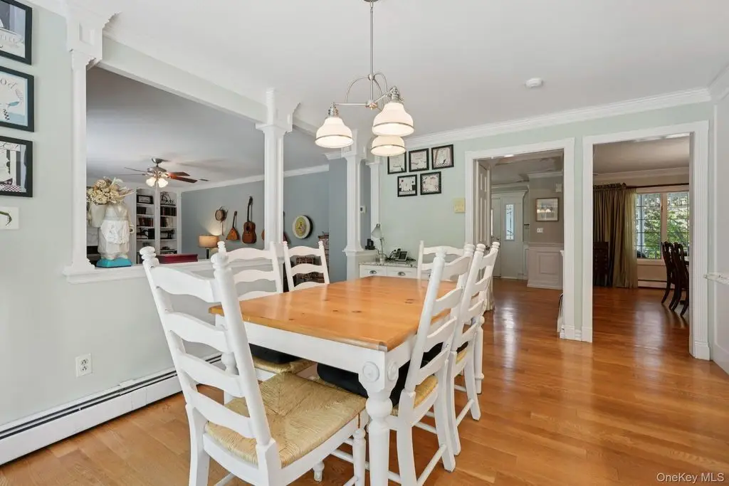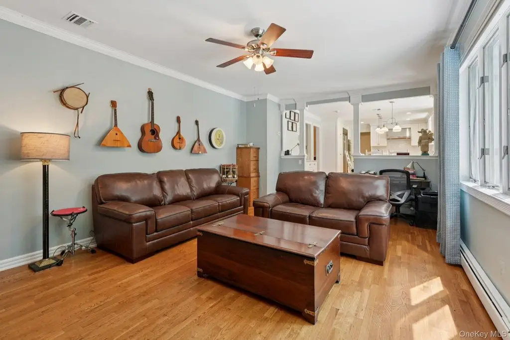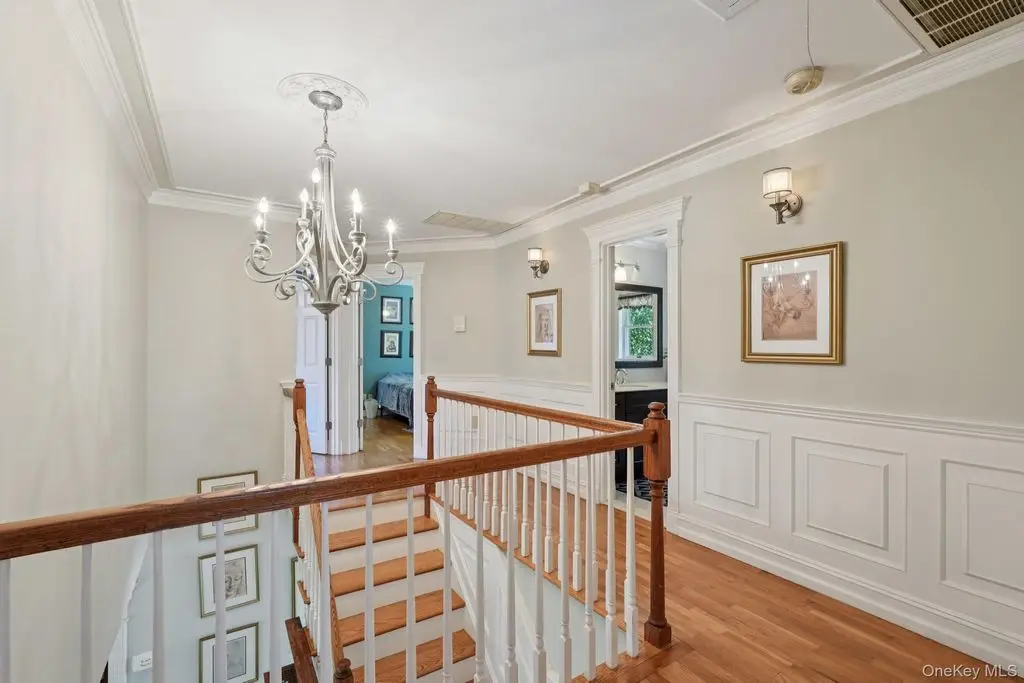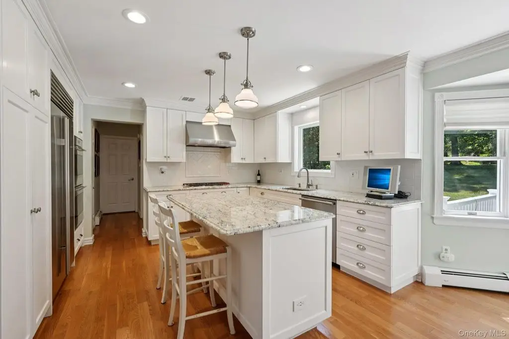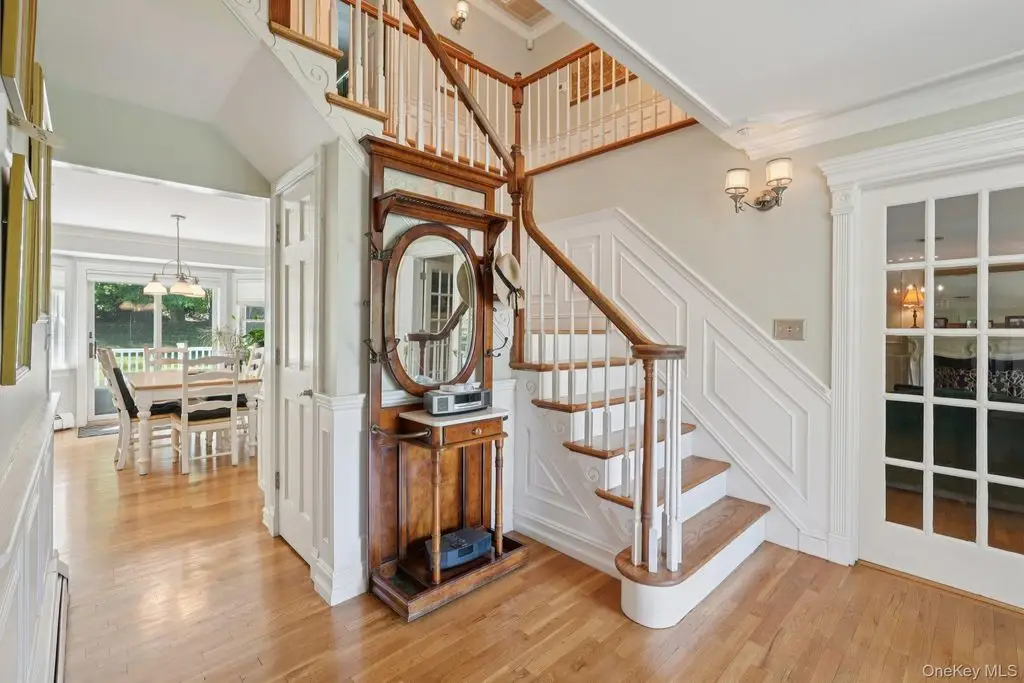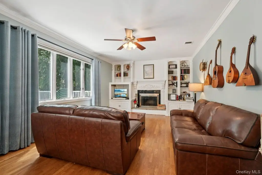 Don't miss the chance to own this exceptional home in one of Clarkstown's most coveted neighborhoods! Step into timeless elegance in the highly sought-after Waters Edge community with this classic center-hall colonial, perfectly set on a beautifully landscaped, picturesque lot. Built in 1990 and lovingly maintained ever since, this residence blends space, style, and comfort in every detail. Offering 2,928 square feet of thoughtfully designed living space, this home is ideal for both relaxed everyday living and joyful entertaining. The inviting lemonade porch is the perfect spot for peaceful afternoons, while the oversized, sun-drenched eat-in kitchen featuring a large center island flows seamlessly to the expansive, serene backyard and large Trex deck, perfect for outdoor dining and gatherings. Just off the kitchen, a step-down den with a cozy fireplace sets the scene for intimate evenings, while the sun-filled living room with its decorative fireplace offers a warm and welcoming place to unwind. The spacious dining room, adorned with crown molding, is ready to host your most memorable celebrations. A full basement with a wet bar provides endless possibilities for entertainment and recreation. Every room reflects pride of ownership and features high-end finishes that enhance the home's inviting character. (Additional photos coming soon!)