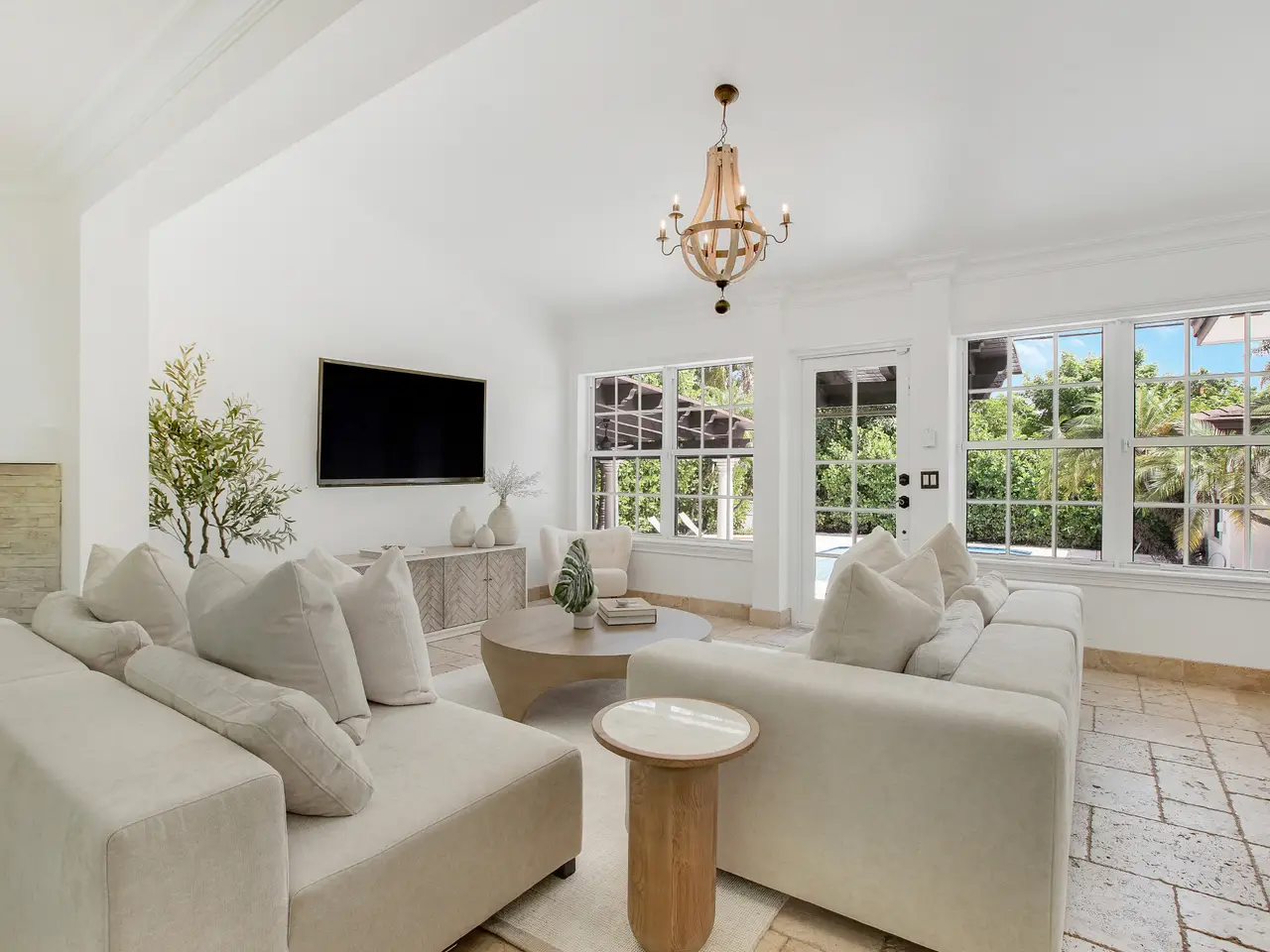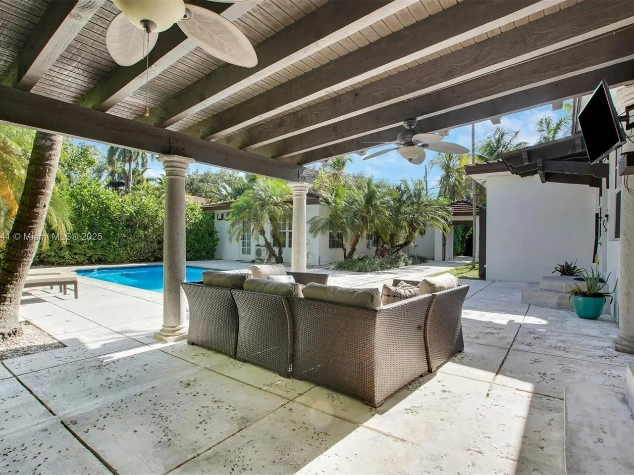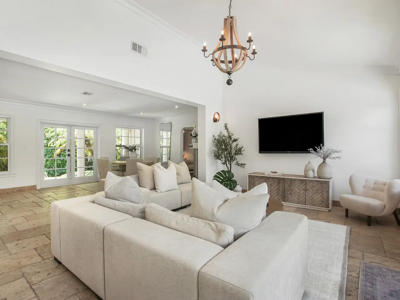 Experience ultimate Coral Gables living with this beautifully designed oasis just blocks from Sunset Place and its restaurants, shops, and entertainment. The main residence offers four bedrooms and three bathrooms, two of the baths thoughtfully updated. Light-filled living and dining areas flow seamlessly into a large updated kitchen featuring high-end appliances and an expansive counter perfect for gatherings. A separate 1-bedroom, 1-bath guest house provides flexible space for visitors, extended family, or a private office. Both homes share a lushly landscaped courtyard centered around a pool, creating a true indoor-outdoor sanctuary. Mature foliage envelops the property offering exceptional privacy. Located near top-rated schools, in one of Miami’s most desirable neighborhoods.
