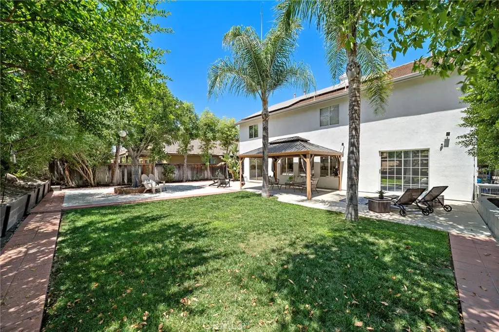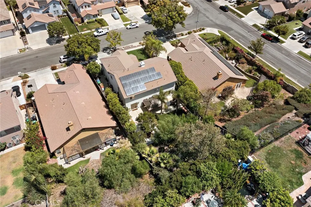 Stunning six bedroom, three bath home with NO HOA, LOW TAXES, and fully paid 8.4 kW SOLAR! Located in a highly desirable neighborhood in the foothills of South Corona, this spacious home offers an ideal floorplan with a downstairs bedroom and full bath--perfect for guests or multi-generational living. Enter through double doors into a light-filled home featuring formal living and dining rooms, a generous sized family room that opens with gas fireplace, which opens into an updated kitchen with brand-new quartz countertops, large island, stainless steel appliances, and breakfast nook with slider to the backyard. Upstairs you'll find five more spacious bedrooms, including a luxurious primary suite with double-door entry, dual walk-in closets, soaking tub, separate shower, dual vanities, and a sit-down vanity area. A large loft offers flexible space for a home office, playroom, or second living area. The private backyard is pool-sized and perfect for entertaining family and friends alike for a barbecue, play dates, or evening drinks with a large patio, mature fruit trees (lemon & pomegranate), raised garden beds, and terraced planting areas. Energy-efficient upgrades include solar (installed 2018), tankless water heater, newer dual zoned HVAC (Dec 2022), whole-house fan, NEST thermostat with sensors, smart home window shades, and smart irrigation for both grass and drought-tolerant landscaping. The three-car garage offers ample storage, with plenty of driveway and street parking. Walk to Santiago High School and local parks, with easy access to the 91/15 freeways, express lanes, shopping, dining, and trails. This one truly has it all--space, upgrades, and location!