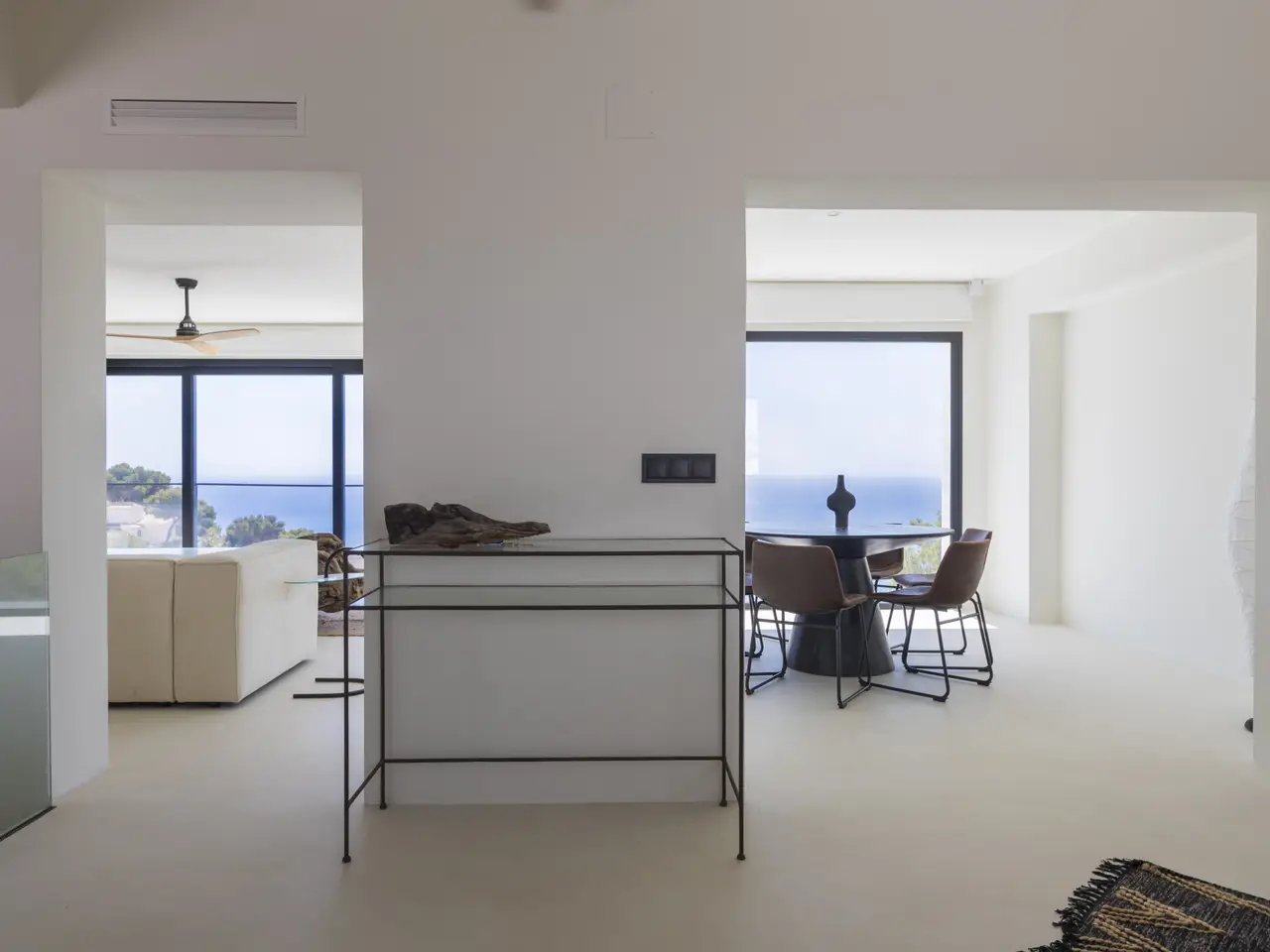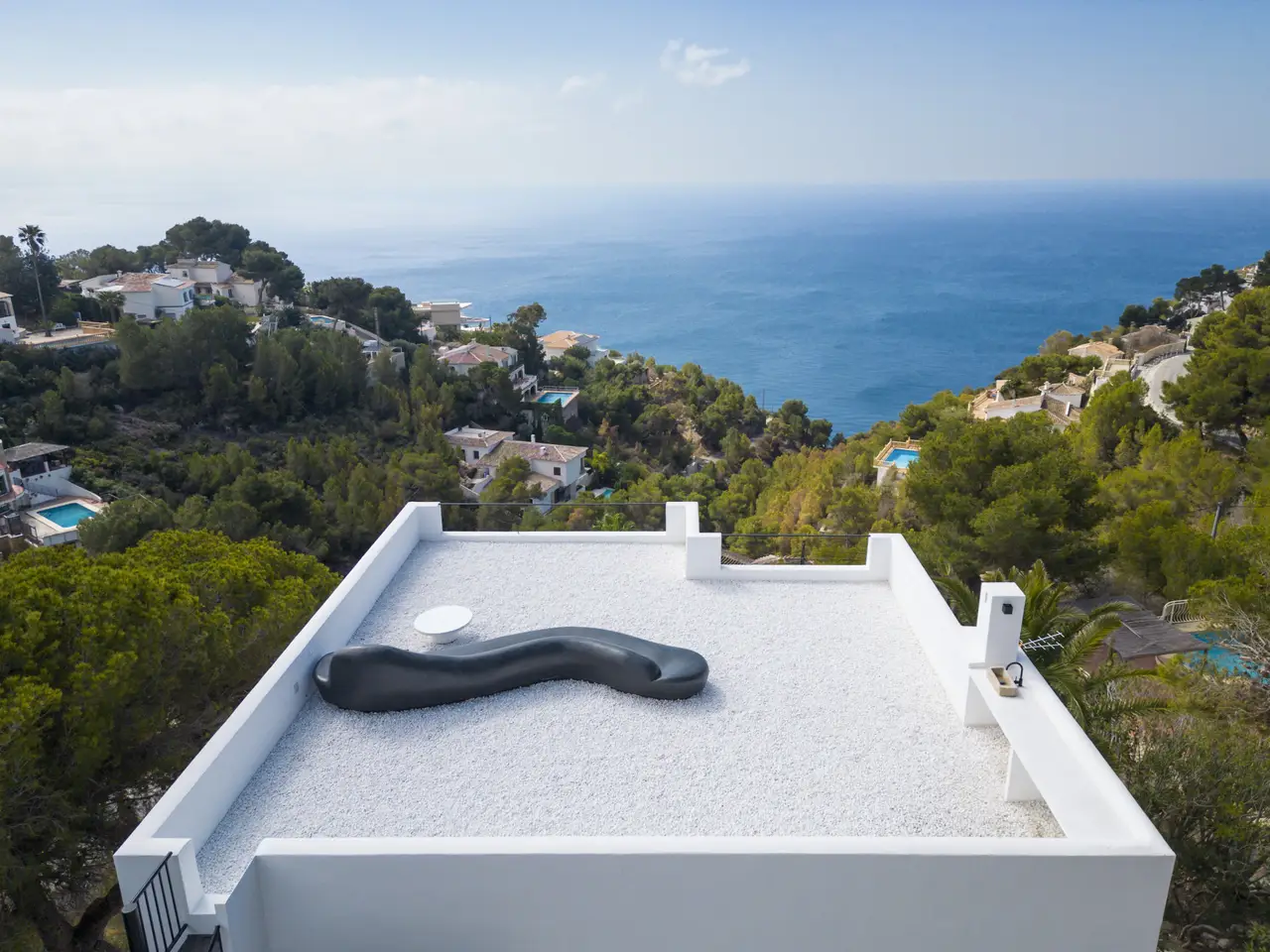 Spectacular villa with stunning sea views, located in the Costa Nova area in Javea, very close to La Granadella beach. It is distributed on 2 levels, communicated both indoor and outdoor, with access to the outdoor areas, terraces, swimming pool and garden. Through a majestic wooden door you access the main level, where you find spacious living room, dining room, courtesy toilet, fully equipped kitchenette and reading area with fireplace, all with huge windows with unbeatable sea views. On the ground floor is located a total of 4 double bedrooms, each with an en-suite bathroom, exits to the terraces and pool area, with its outdoor shower and barbecue area, all with sea views. From the main floor by a spiral staircase, we access the gravel solarium, enabled as a chill out, with space prepared for a barbecue, this area is prepared to enjoy the tranquility and enjoy the views. As extras the property is equipped the aerotermia system, underfloor heating throughout the house, air conditioning by ducts, parking area, the south orientation and it should be noted that it is sold completely furnished.