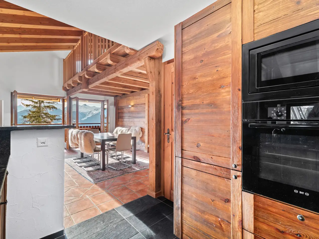 Nestled in the heights of Crans-Montana, in the exclusive Vermala neighborhood, this penthouse triplex of approximately 290 m² embodies the art of mountain living. Boasting breathtaking views of the Rhône Valley, the Val d’Anniviers, the Vallon de Réchy, and the peaks rising above 4,000 meters, it offers an exceptional setting. Upon arrival, with direct access from the elevator, a spacious and welcoming hall leads to bright, elegant living spaces. The living room, enhanced by a stunning fireplace, opens onto a dining area and a modern open kitchen, perfectly blending conviviality and comfort. This property features 3 spacious bedrooms, each with its own en-suite bathroom, as well as a guest WC spread across the three floors. A private laundry room completes the space, combining practicality with everyday comfort. The use of aged wood and premium materials gives this home an authentic and timeless charm. The numerous outdoor spaces, thoughtfully oriented, allow you to enjoy the Alpine panoramas at any time of the day. Two private garage boxes on top of the selling price, ski lockers, and a cellar round off this offer, ensuring optimal convenience and comfort. Ideally located, this triplex offers immediate access to ski slopes and hiking trails, allowing full enjoyment of Alpine activities throughout the year. More than just an apartment, this property is a unique opportunity for those who appreciate mountains, luxury, and serenity. A true haven of peace where comfort, nature, and elegance come together for an unparalleled living experience.