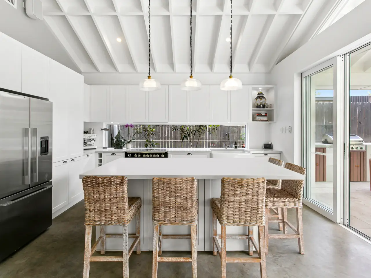 Protected behind secure gates on a generous corner block, this elegant Cromer residence feels wonderfully private from the moment you enter, with lush tropical landscaping creating a retreat-like ambience. Inside the home extends across an effortless single-level layout, anchored by a dramatic open plan living zone with cathedral ceilings, exposed trusses and heated polished concrete floors. A travertine alfresco terrace sheltered beneath its own cathedral pergola flows to level lawns and an enclosed pool, all framed by frangipanis and established greenery. A separate sitting room and a detached garden studio extend the home's versatility, creating options for working privately or giving families space to spread out. Four bedrooms include a private main suite with patio and garden access, while the rest of the home's refined coastal finishes and immaculate presentation ensure everyday comfort. Positioned directly opposite St Matthew's Farm Reserve and moments from Dee Why's cafés, shopping and surf, this is a polished family sanctuary defined by privacy, ease and an enduring sense of style. - Single-level family haven on generous corner block in leafy Cromer - Beautifully finished with quality coastal inspired finishes throughout - Dramatic open plan living with cathedral ceiling and heated concrete floors - Bi-fold doors extend to travertine terrace beneath cathedral pergola - Built-in gas barbecue and lush tropical gardens for easy entertaining - Heated mineral pool and spa, outdoor shower, enclosed family-friendly lawn - Stylish modern gas kitchen with stone benches, integrated dishwasher and induction cooktops - Generous bedrooms, main with walk-in robe, ensuite & patio access - Detached garden studio ideal for office, additional storage at rear - Ducted air con, plantation shutters, attic storage and rainwater tanks included - 19x 6.75kW Solar panels and 10kW battery - Secure gated driveway parking; opposite St Matthew's Farm Reserve - Footsteps to public transport, 650m to Cromer Park, 2.3km to Cromer Golf Club - 950m to Cromer Public School,1.4km to Wheeler Heights Public School - 1.6km to St Rose Catholic Primary School - 600m to NBSC Cromer Campus, 1.4km to Pittwater House