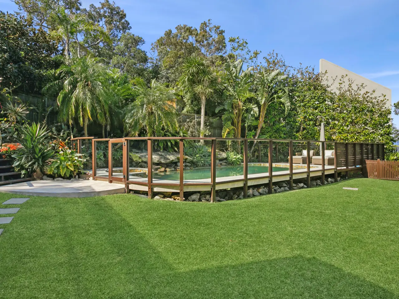 Sparkling pool and tropical landscaping