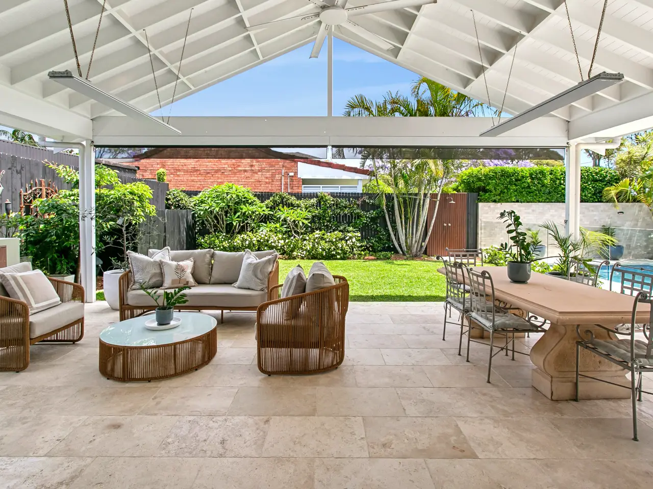 Protected behind secure gates on a generous corner block, this elegant Cromer residence feels wonderfully private from the moment you enter, with lush tropical landscaping creating a retreat-like ambience. Inside the home extends across an effortless single-level layout, anchored by a dramatic open plan living zone with cathedral ceilings, exposed trusses and heated polished concrete floors. A travertine alfresco terrace sheltered beneath its own cathedral pergola flows to level lawns and an enclosed pool, all framed by frangipanis and established greenery. A separate sitting room and a detached garden studio extend the home's versatility, creating options for working privately or giving families space to spread out. Four bedrooms include a private main suite with patio and garden access, while the rest of the home's refined coastal finishes and immaculate presentation ensure everyday comfort. Positioned directly opposite St Matthew's Farm Reserve and moments from Dee Why's cafés, shopping and surf, this is a polished family sanctuary defined by privacy, ease and an enduring sense of style. - Single-level family haven on generous corner block in leafy Cromer - Beautifully finished with quality coastal inspired finishes throughout - Dramatic open plan living with cathedral ceiling and heated concrete floors - Bi-fold doors extend to travertine terrace beneath cathedral pergola - Built-in gas barbecue and lush tropical gardens for easy entertaining - Heated mineral pool and spa, outdoor shower, enclosed family-friendly lawn - Stylish modern gas kitchen with stone benches, integrated dishwasher and induction cooktops - Generous bedrooms, main with walk-in robe, ensuite & patio access - Detached garden studio ideal for office, additional storage at rear - Ducted air con, plantation shutters, attic storage and rainwater tanks included - 19x 6.75kW Solar panels and 10kW battery - Secure gated driveway parking; opposite St Matthew's Farm Reserve - Footsteps to public transport, 650m to Cromer Park, 2.3km to Cromer Golf Club - 950m to Cromer Public School,1.4km to Wheeler Heights Public School - 1.6km to St Rose Catholic Primary School - 600m to NBSC Cromer Campus, 1.4km to Pittwater House